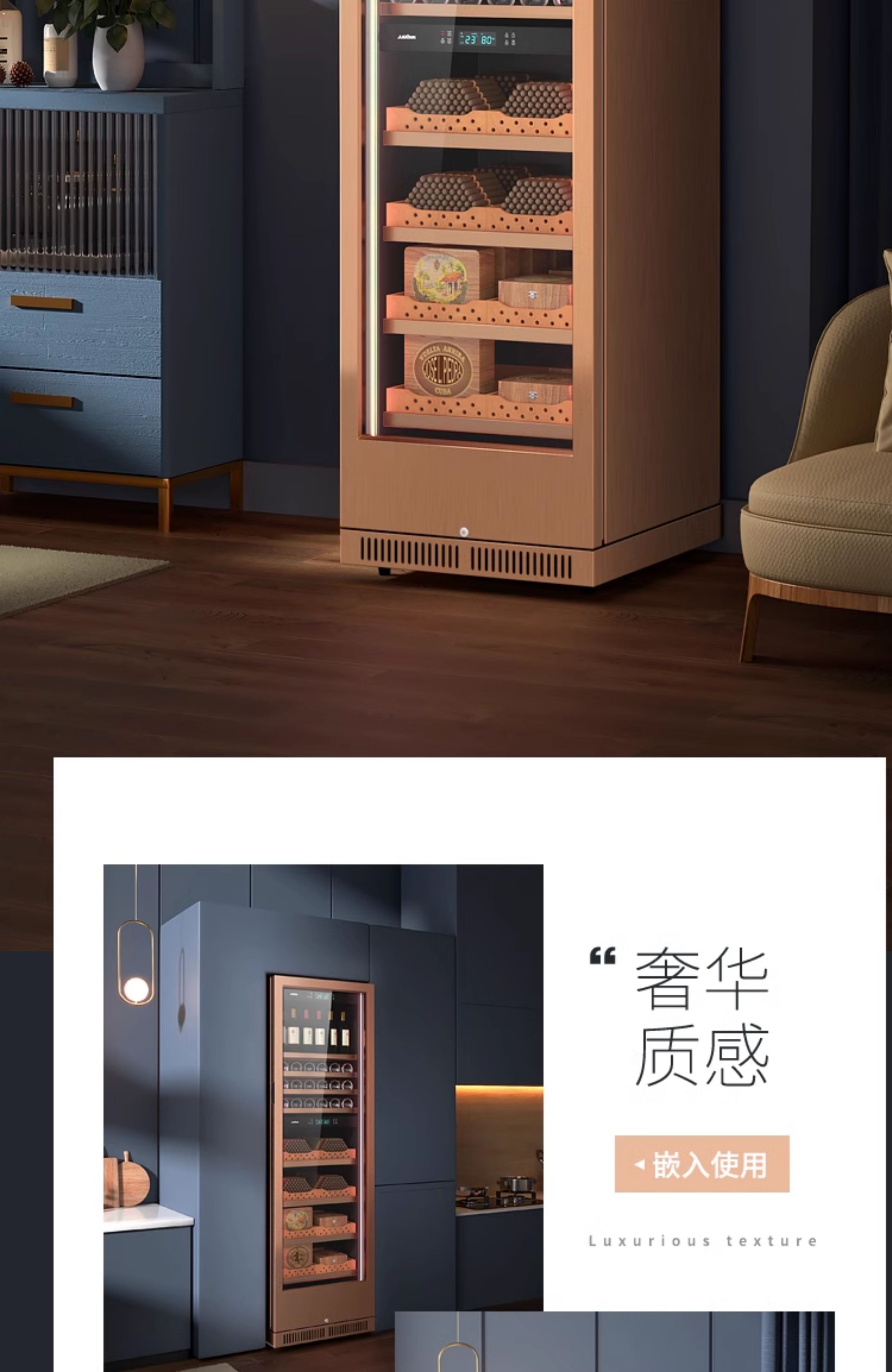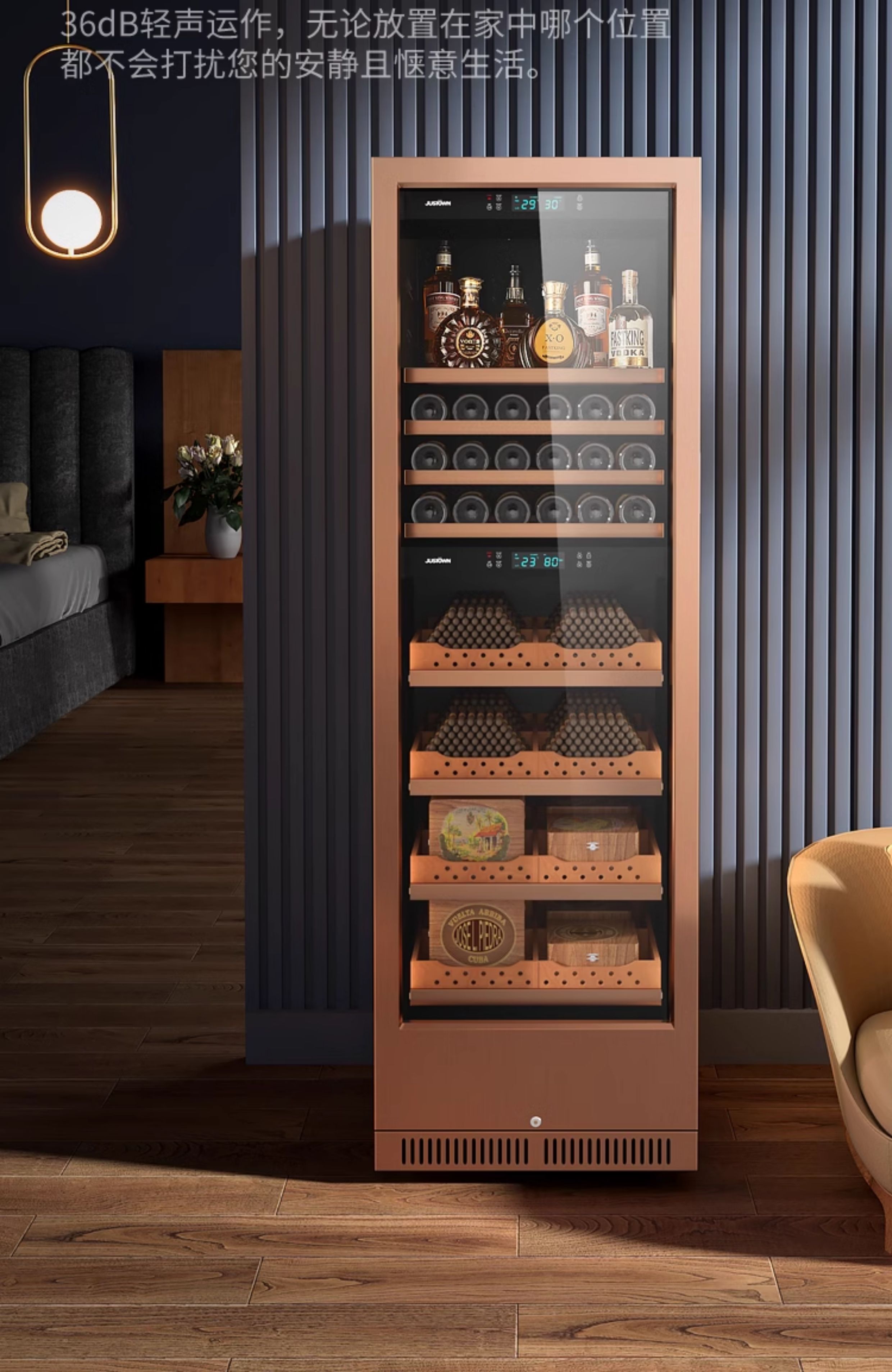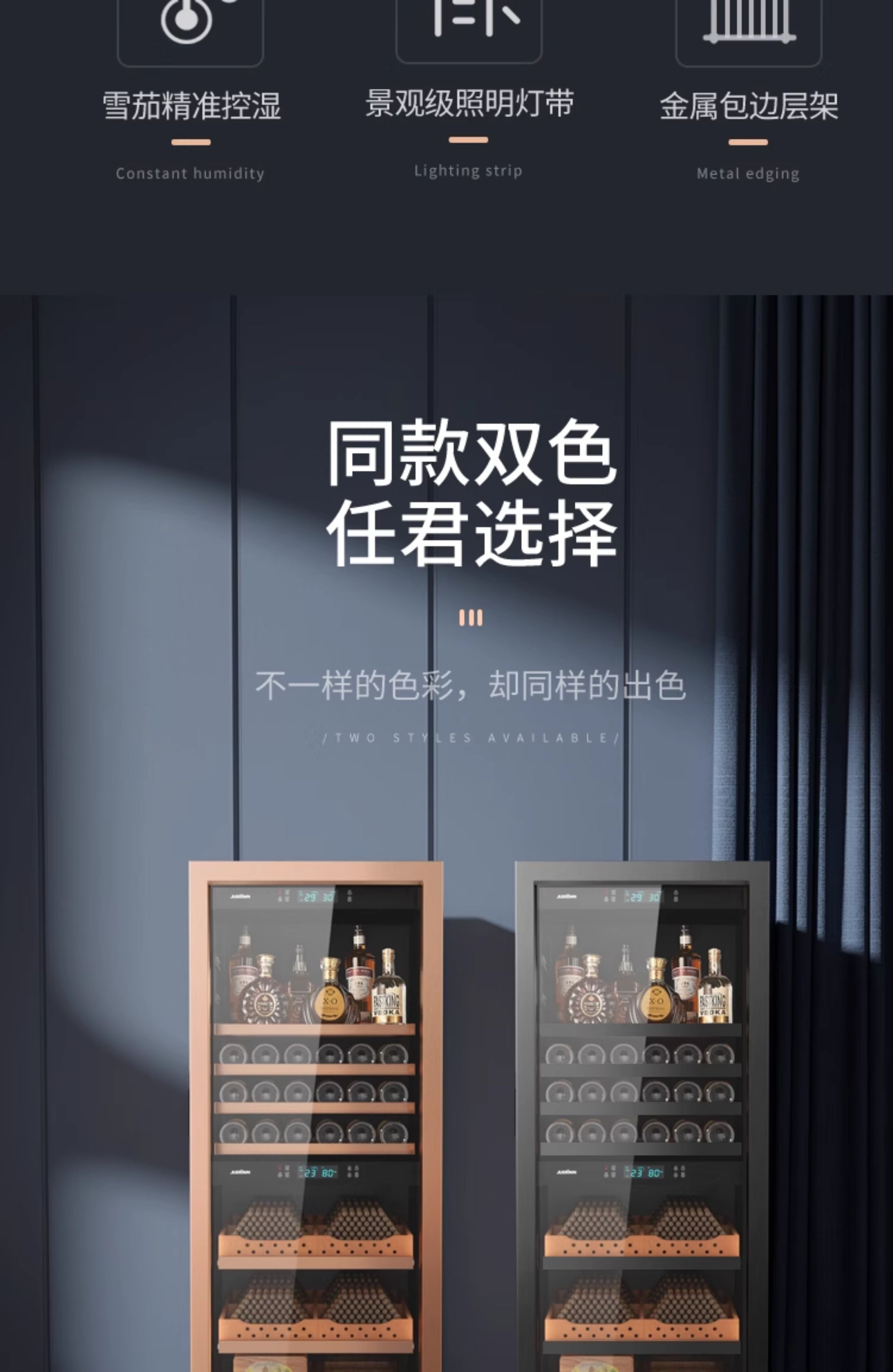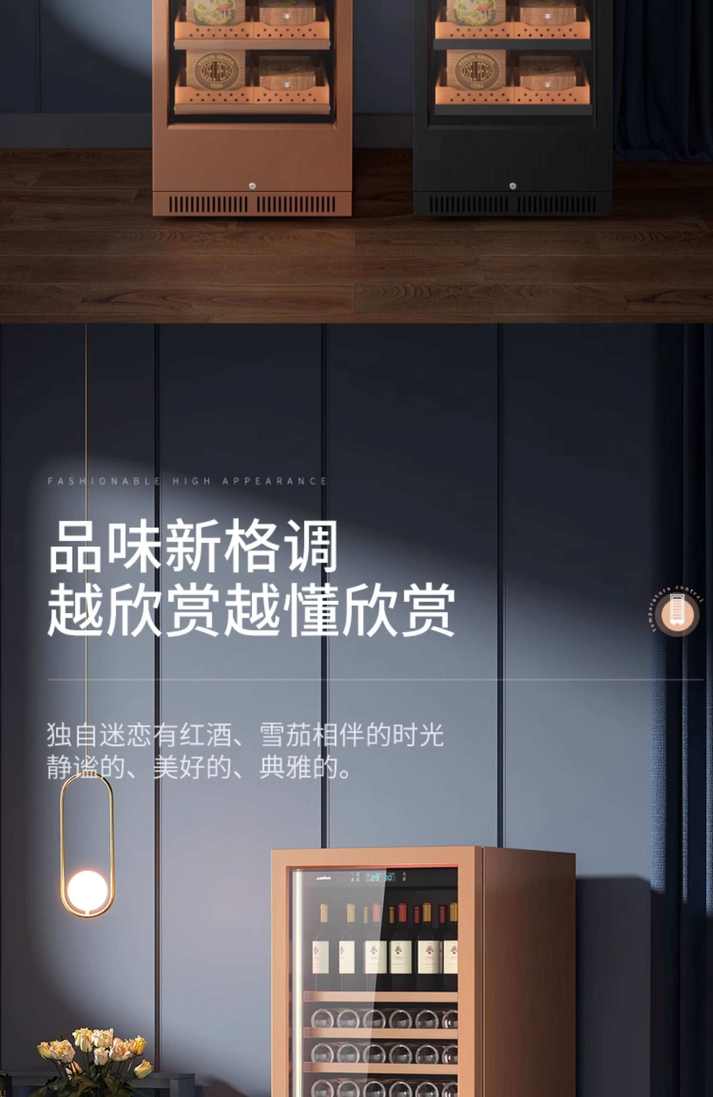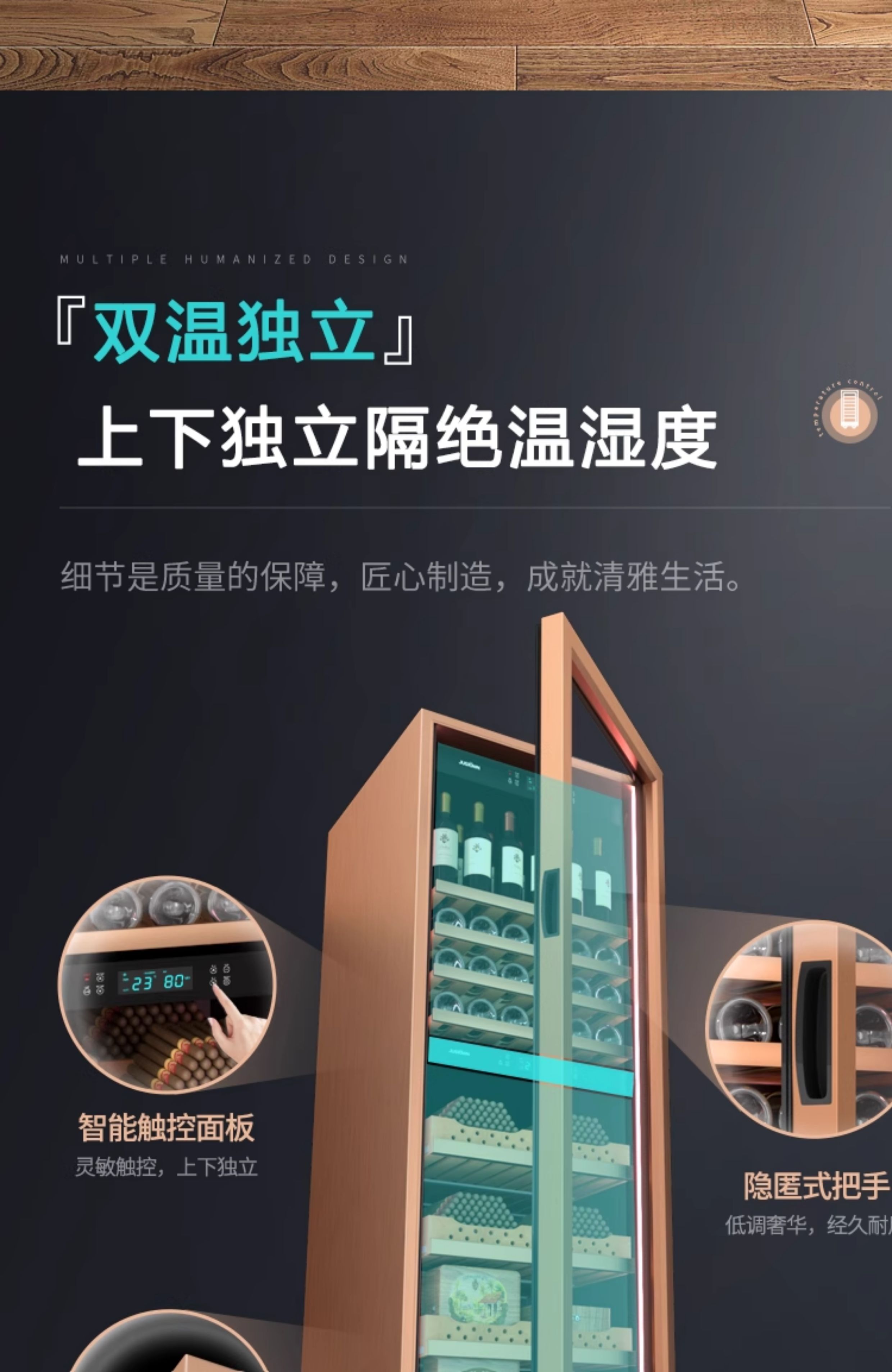 Double fingerprint password lock, dual temperature wine cigar cabinet, constant temperature and humidity red wine and cigar integrated cabinet, rose gold dual temperature zone cup pendant