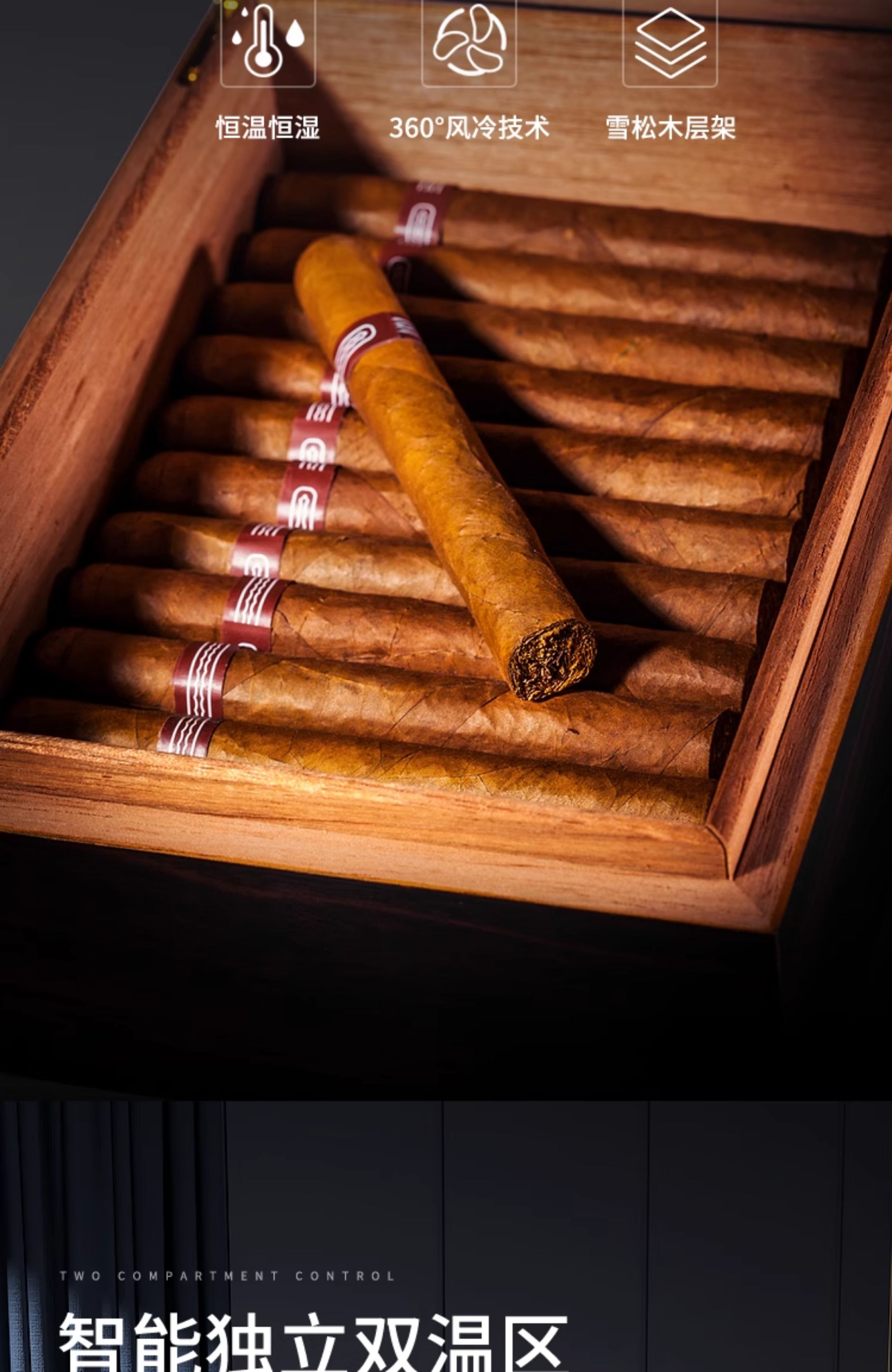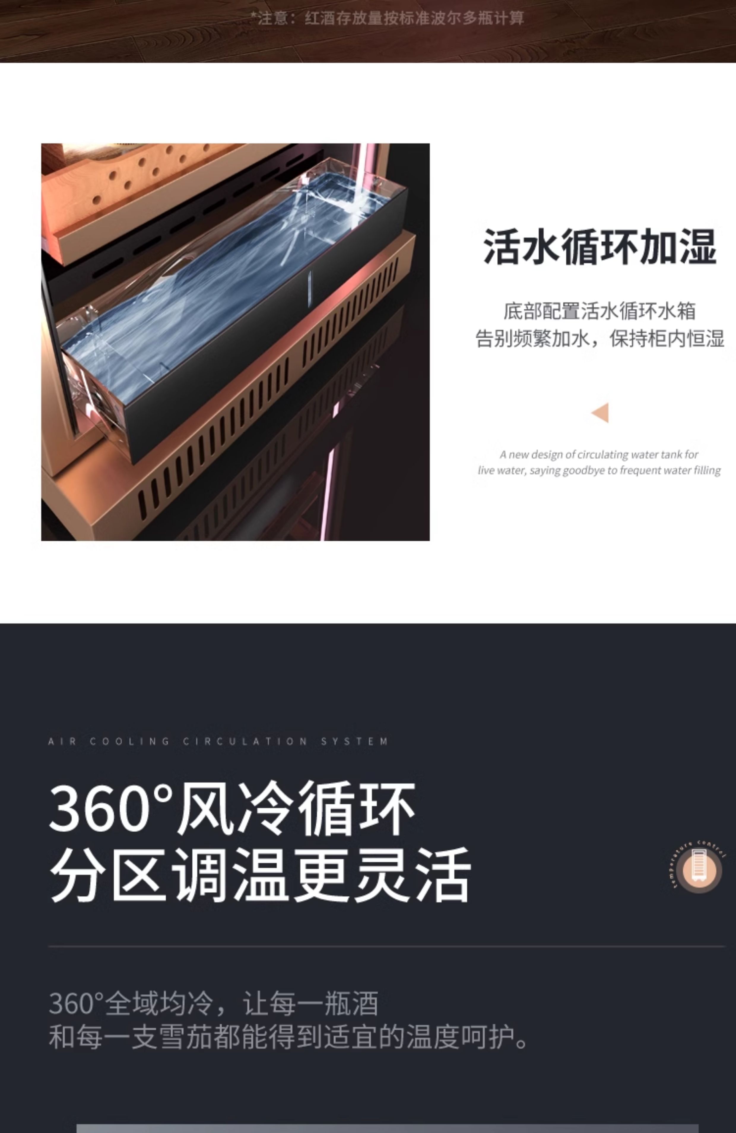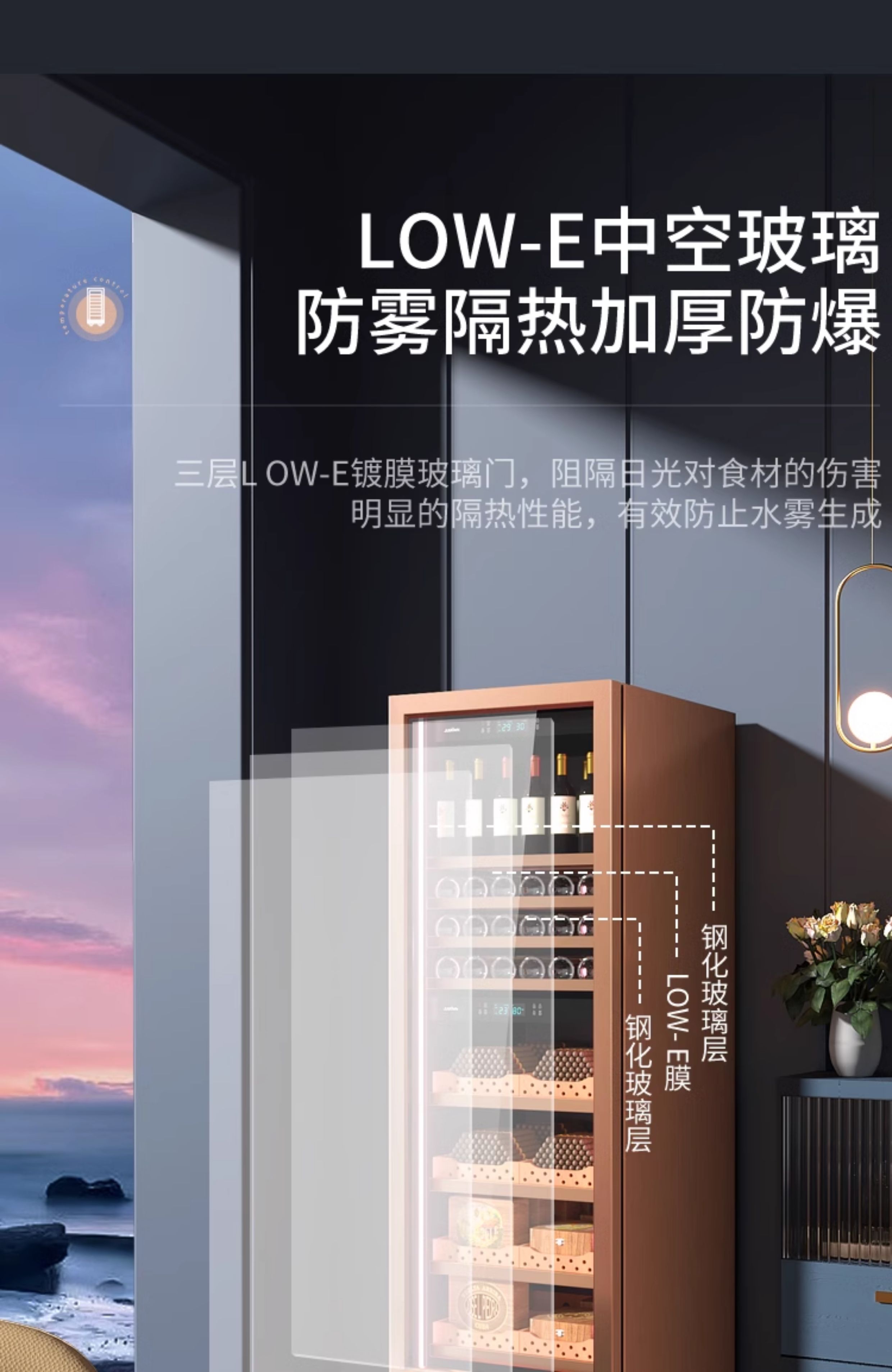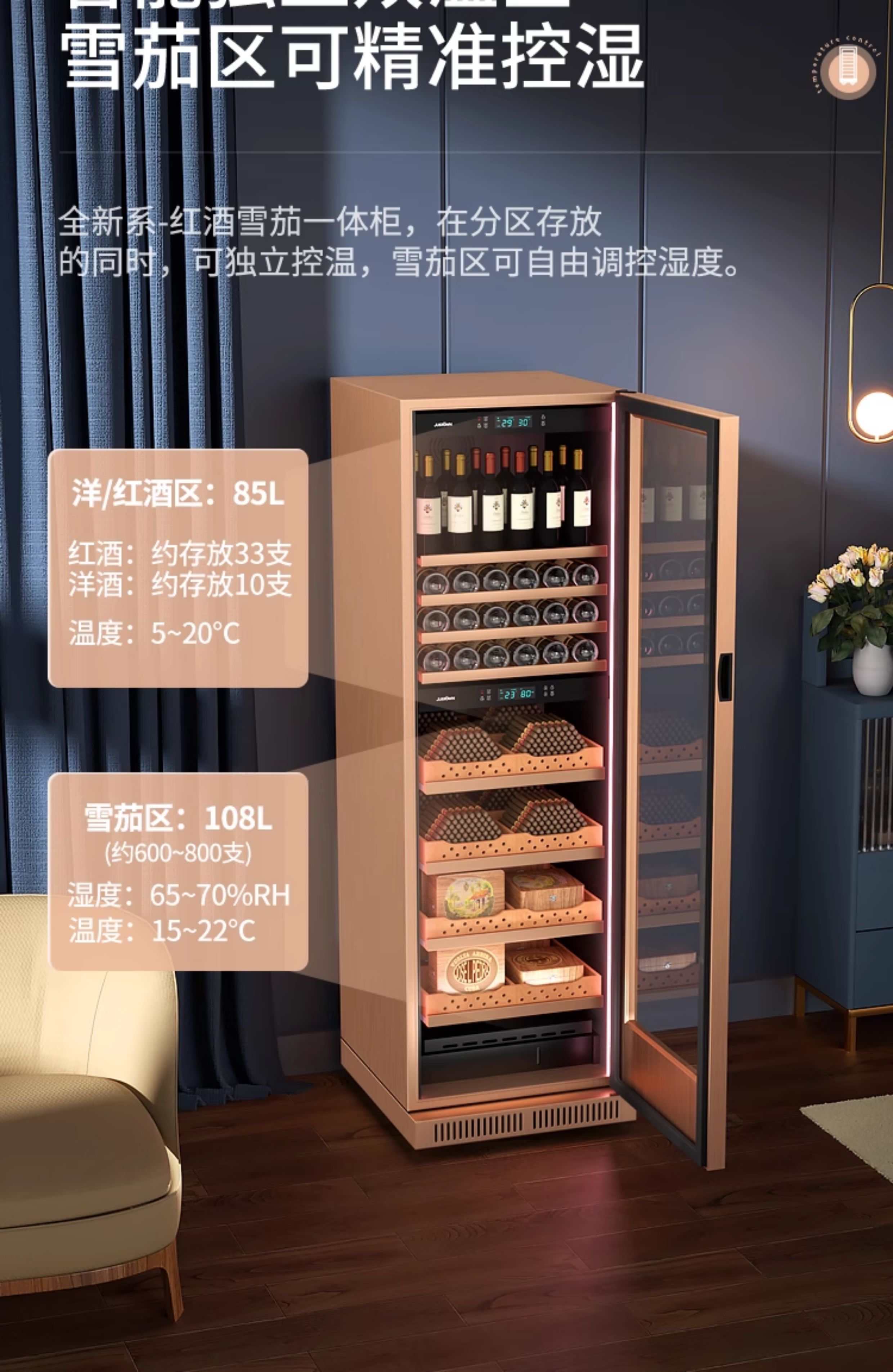 Double fingerprint password lock, dual temperature wine cigar cabinet, constant temperature and humidity red wine and cigar integrated cabinet, rose gold dual temperature zone cup pendant