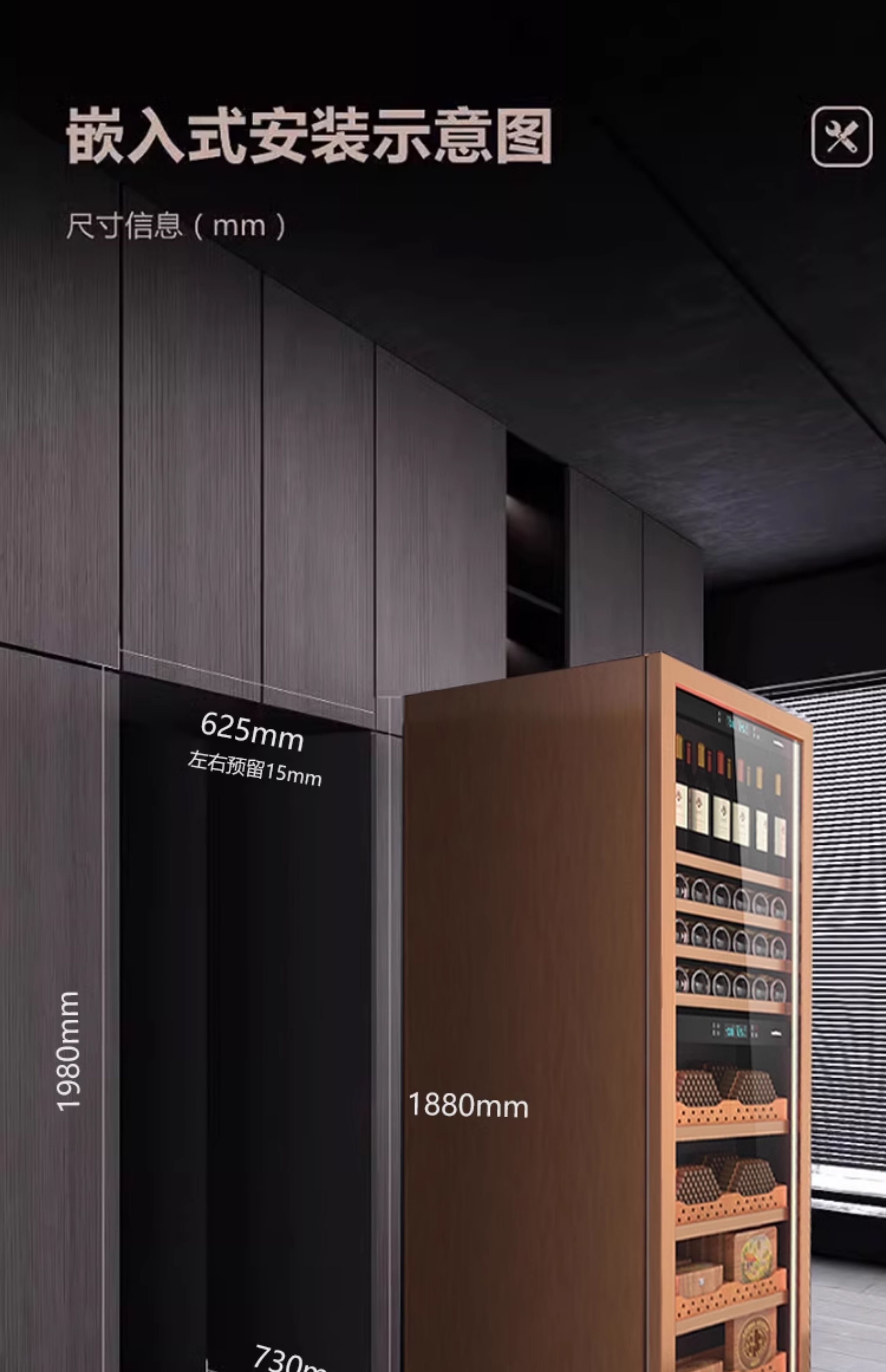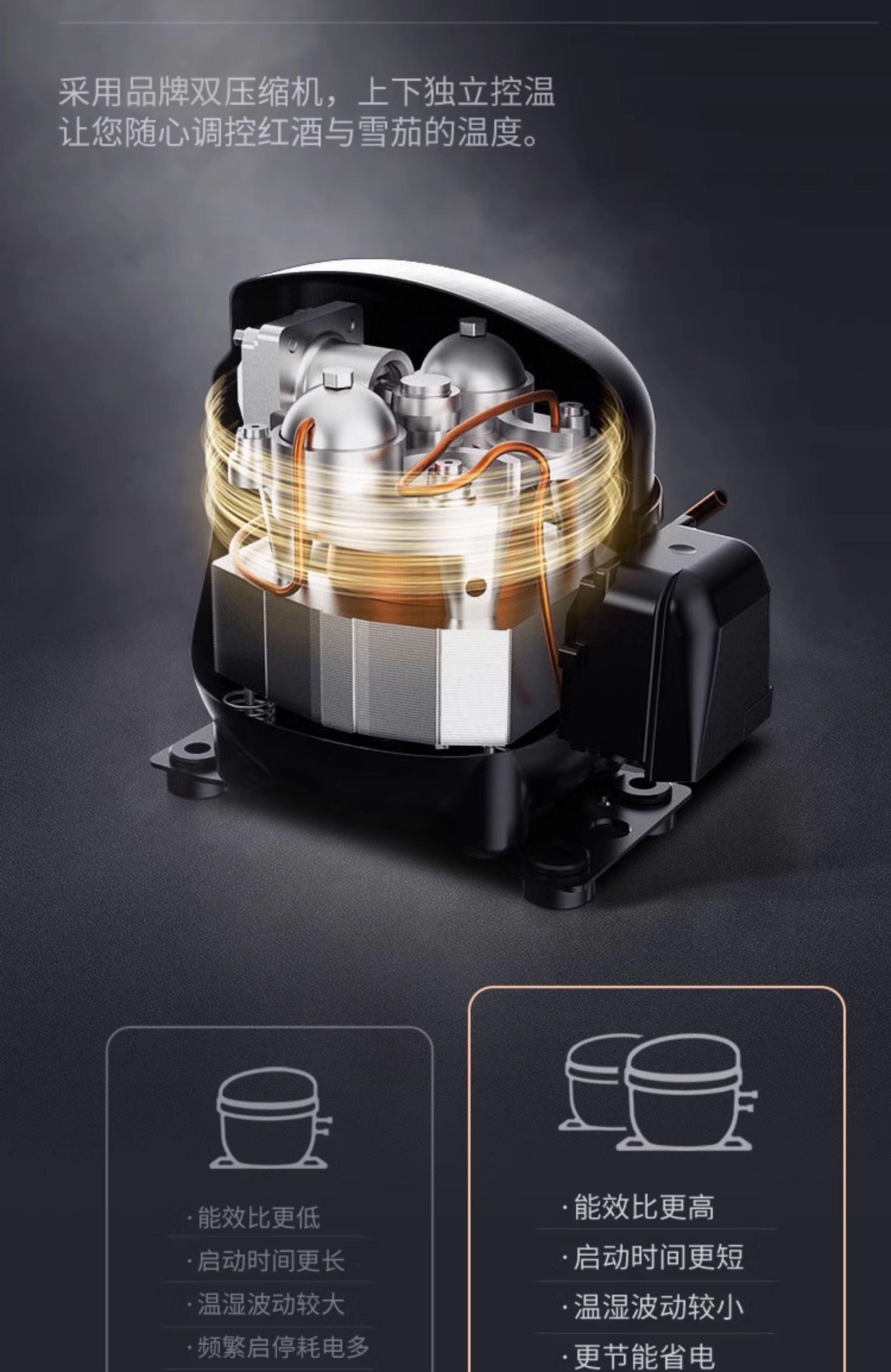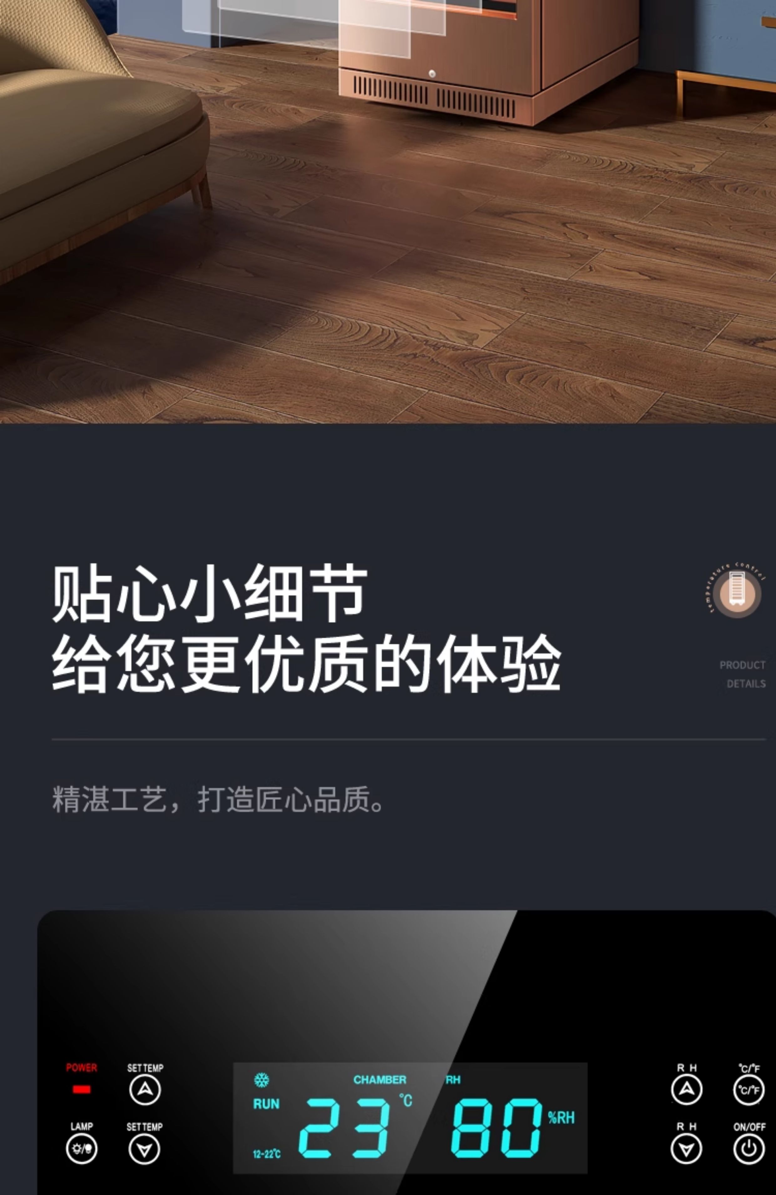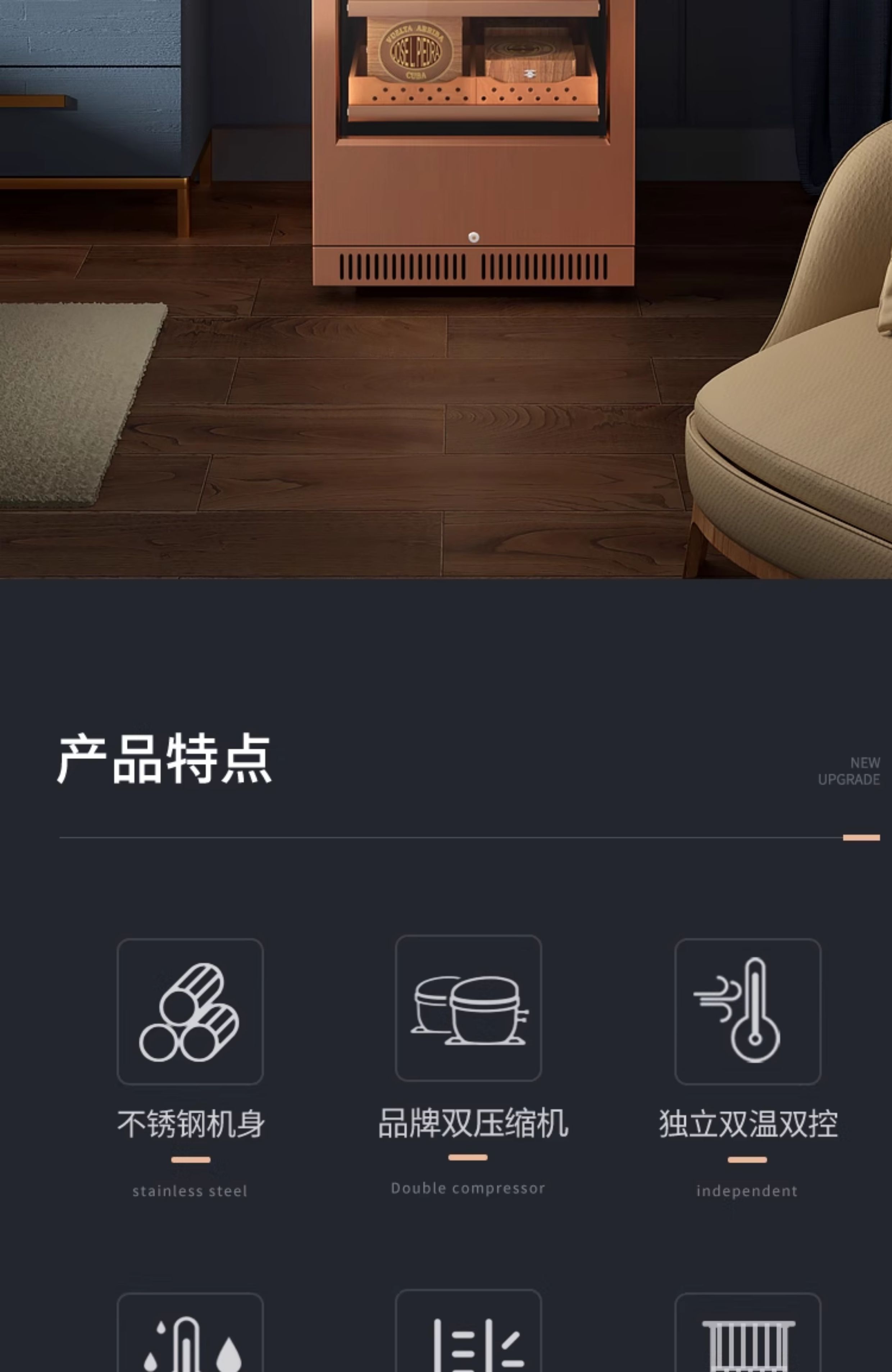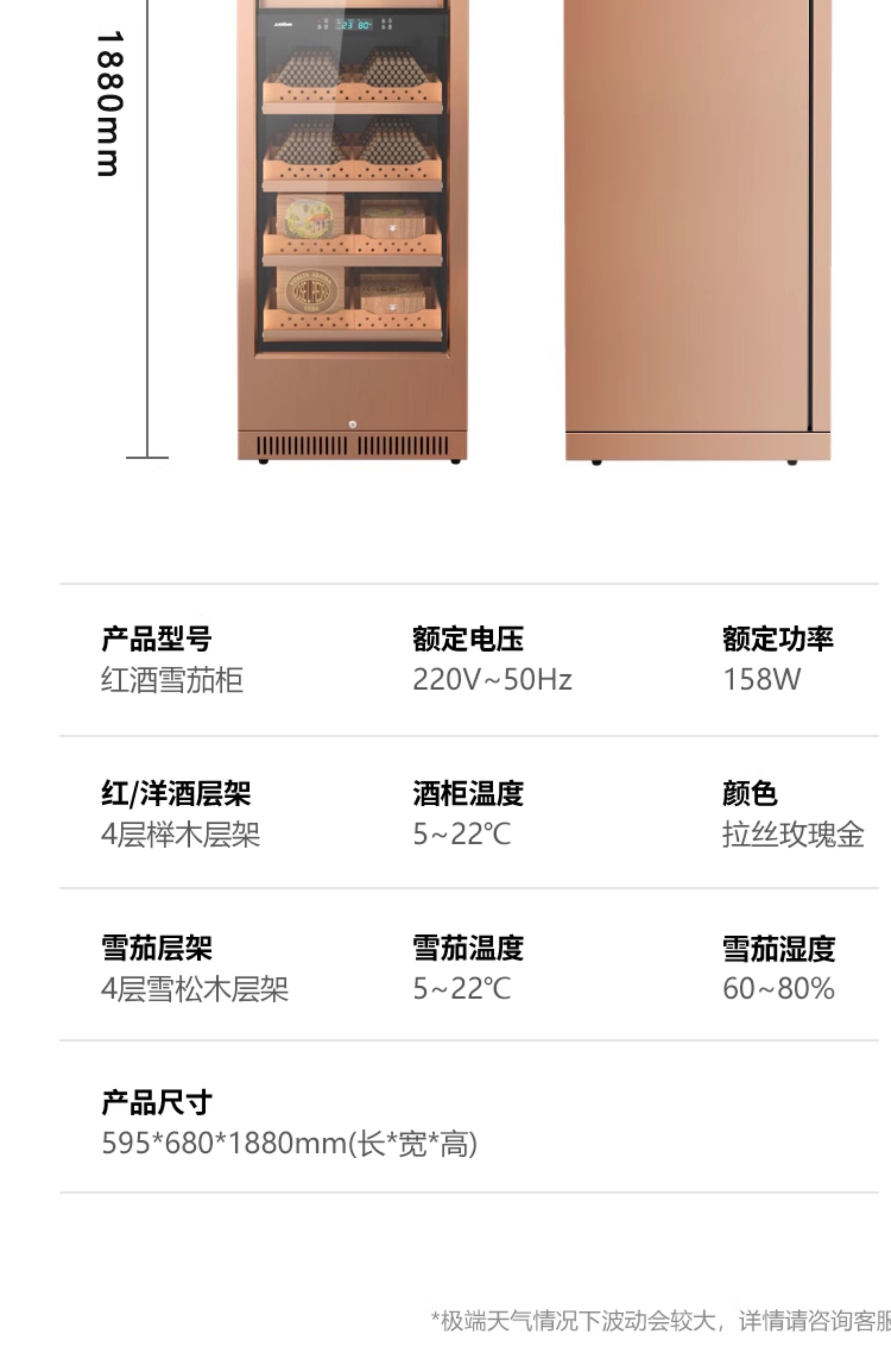 Double fingerprint password lock, dual temperature wine cigar cabinet, constant temperature and humidity red wine and cigar integrated cabinet, rose gold dual temperature zone cup pendant