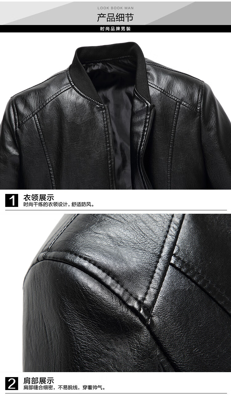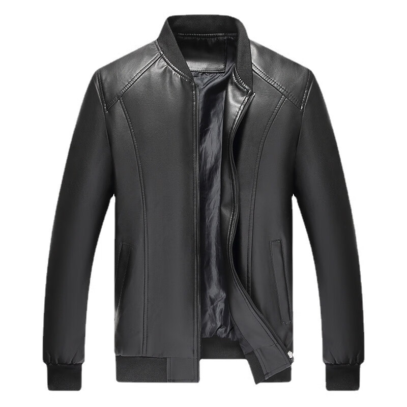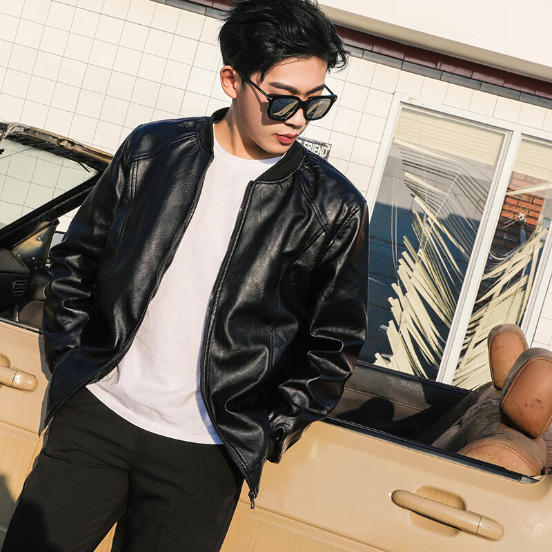 Baseball Uniform Single Jacket Men's Autumn and Winter Velvet Thickened Loose and Versatile Men's Leather Jacket Black Regular M 100Jin Jin is equal to 0.5kg -120Jin Jin is equal to 0.5kg