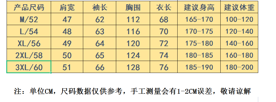 China (cm) 160-165/84-86 165-170 / 88-90 167-172 / 92-96 168-173 / 98-102 170-176 / 106-110