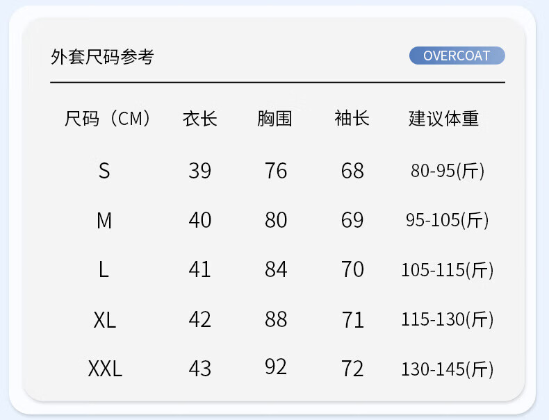 China(cm) 72-76 76-81 81-87 87-93 93-98