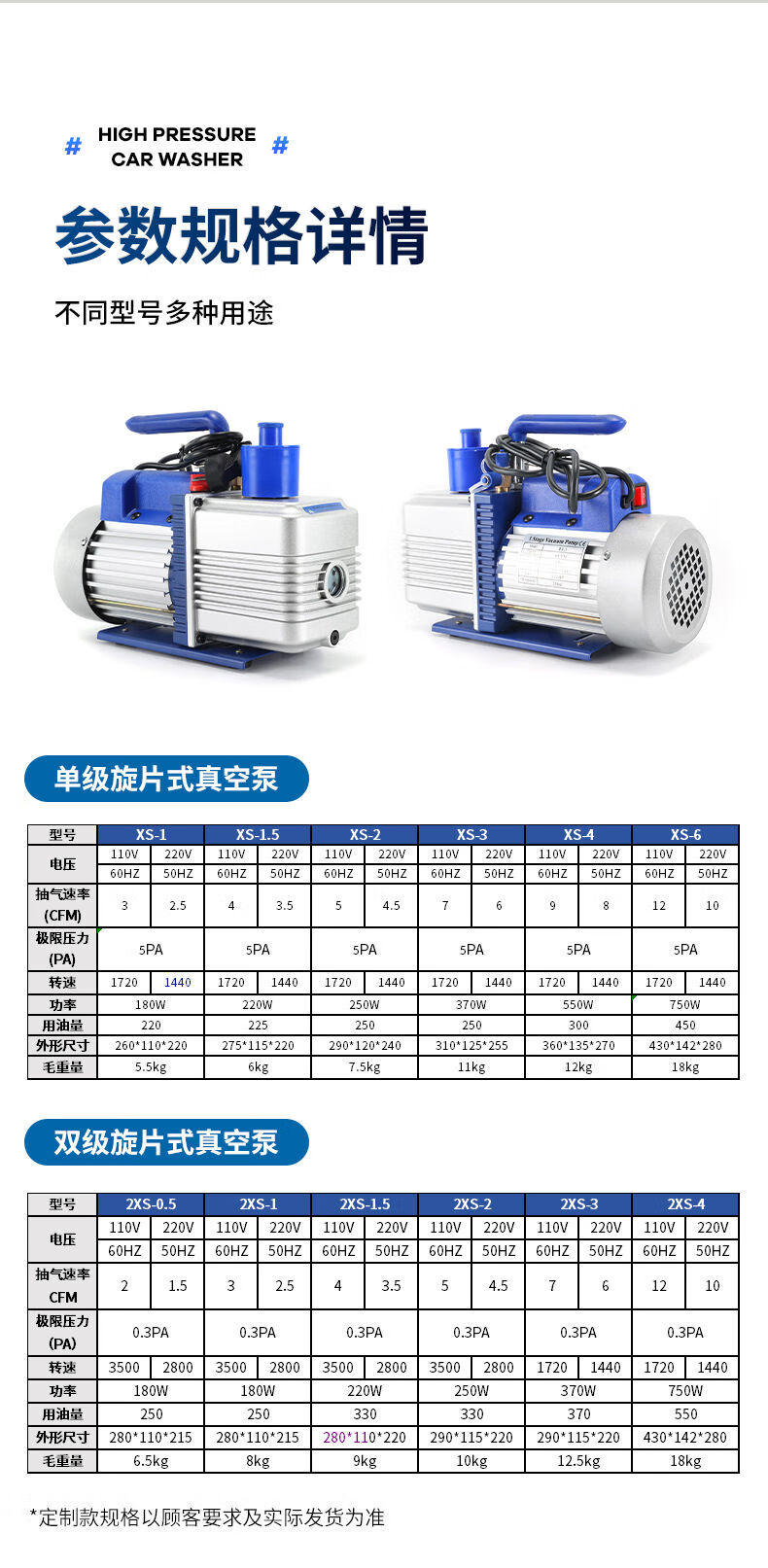 Wenyi Jiaxinsheng vacuum pump single and double stage pump air conditioner refrigerator car special air pump experimental portable fit XS-1 single stage 1 liter with accessories (universal within 2 horses)