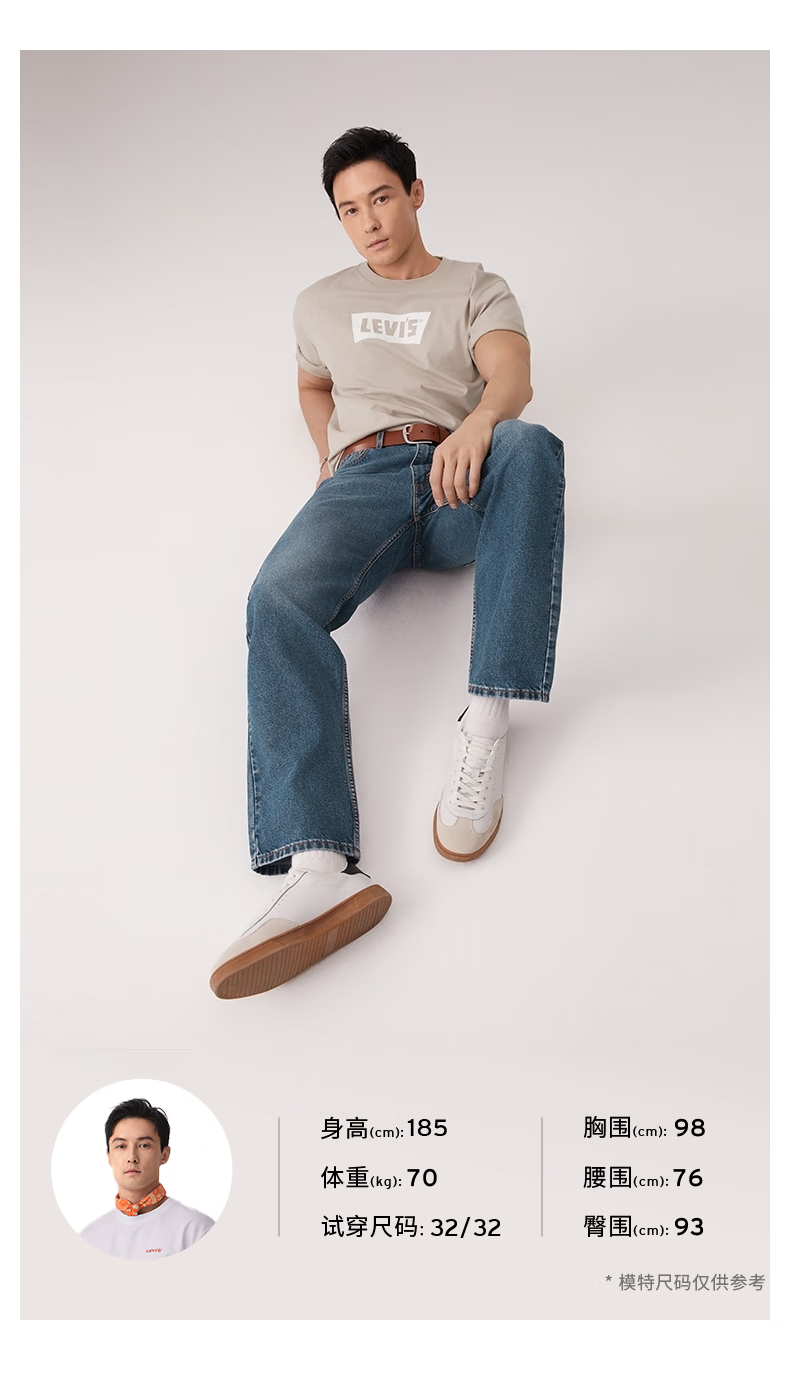 Levi's商场同款李维斯25秋冬新款男经典555宽松直筒牛仔裤A7223 中蓝色 30 (32)