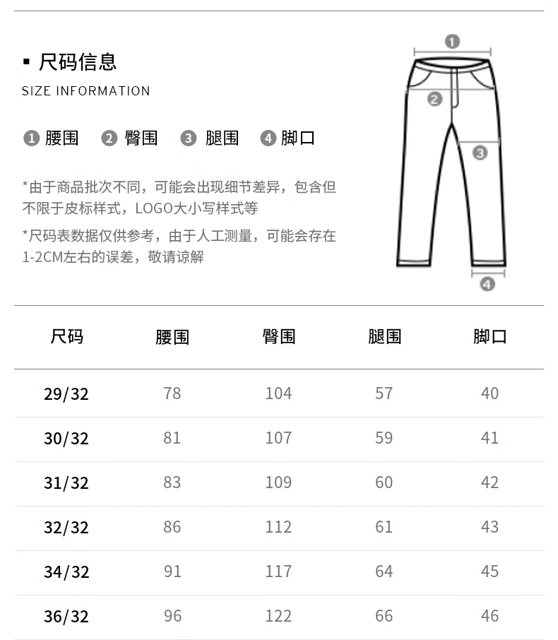 Outseam (cm) 99 cm 101.5 cm 104 cm 106.5 cm 109 cm