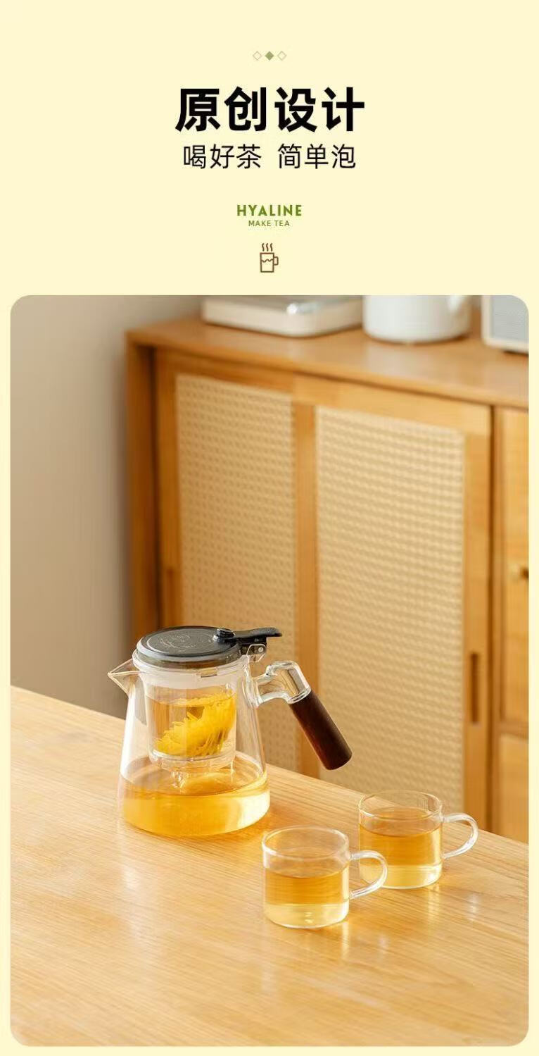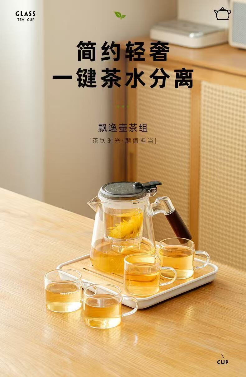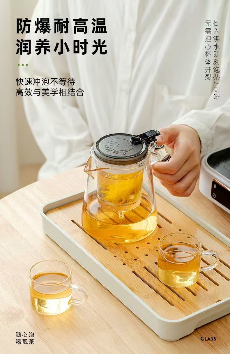 Glass elegant cup teapot tea water separation lazy man artifact new teacup household high-end Kung Fu tea set transparent black elegant pot 800ml