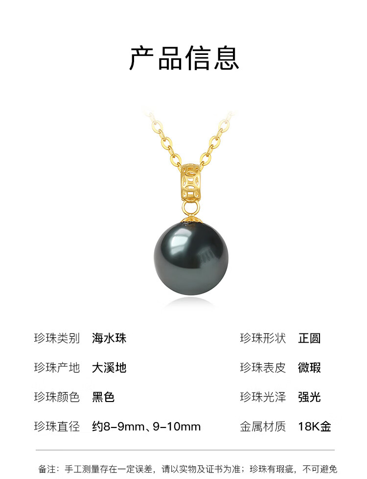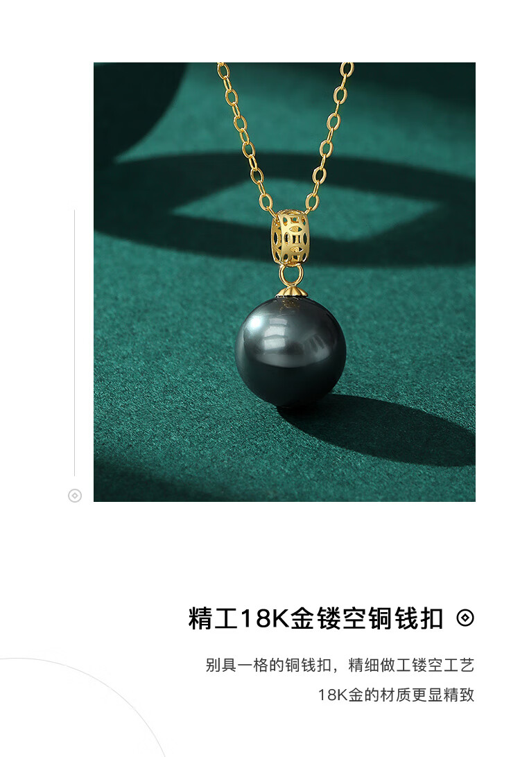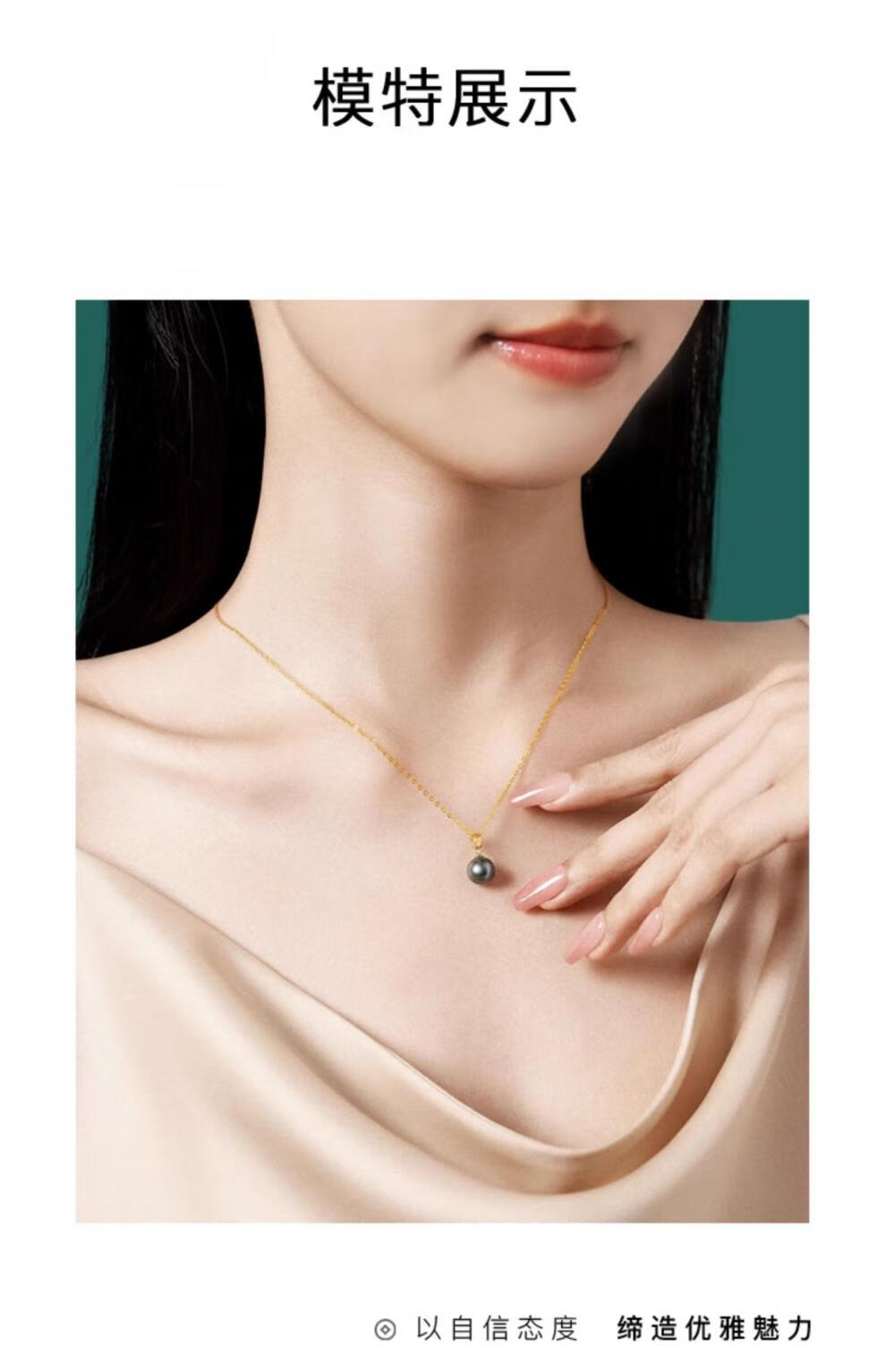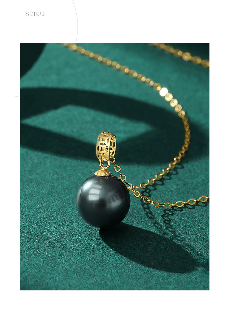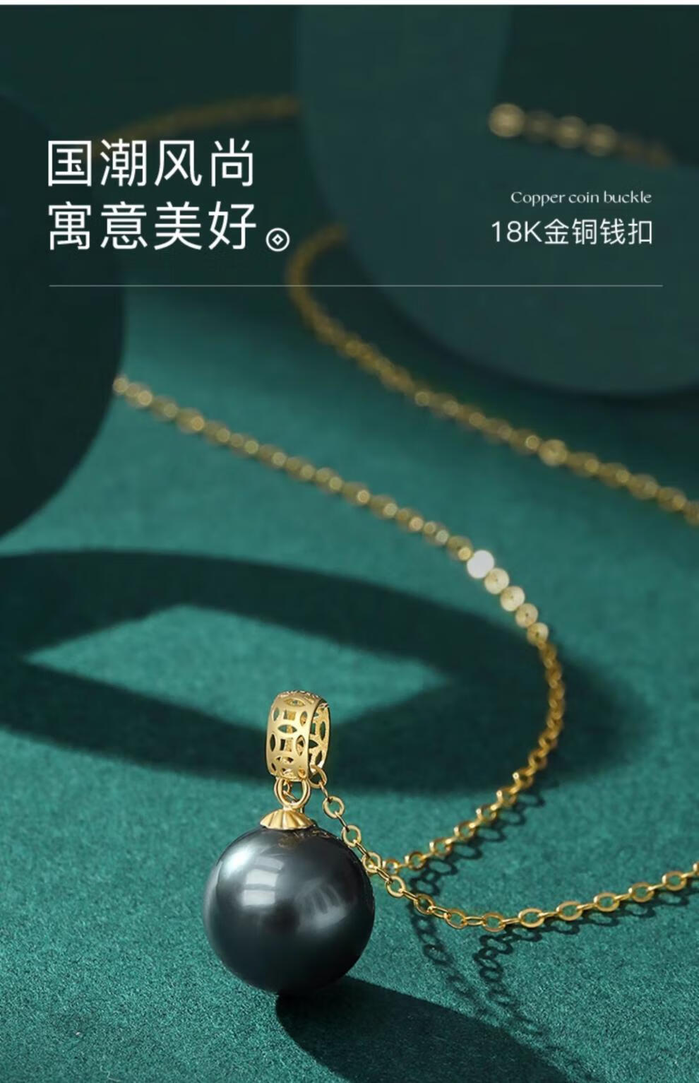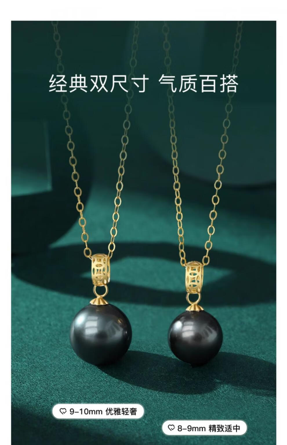 Pearl Queen (PearlQueen) Tahitian seawater black pearl pendant 18k gold buckle head money buckle round necklace 8-9mm