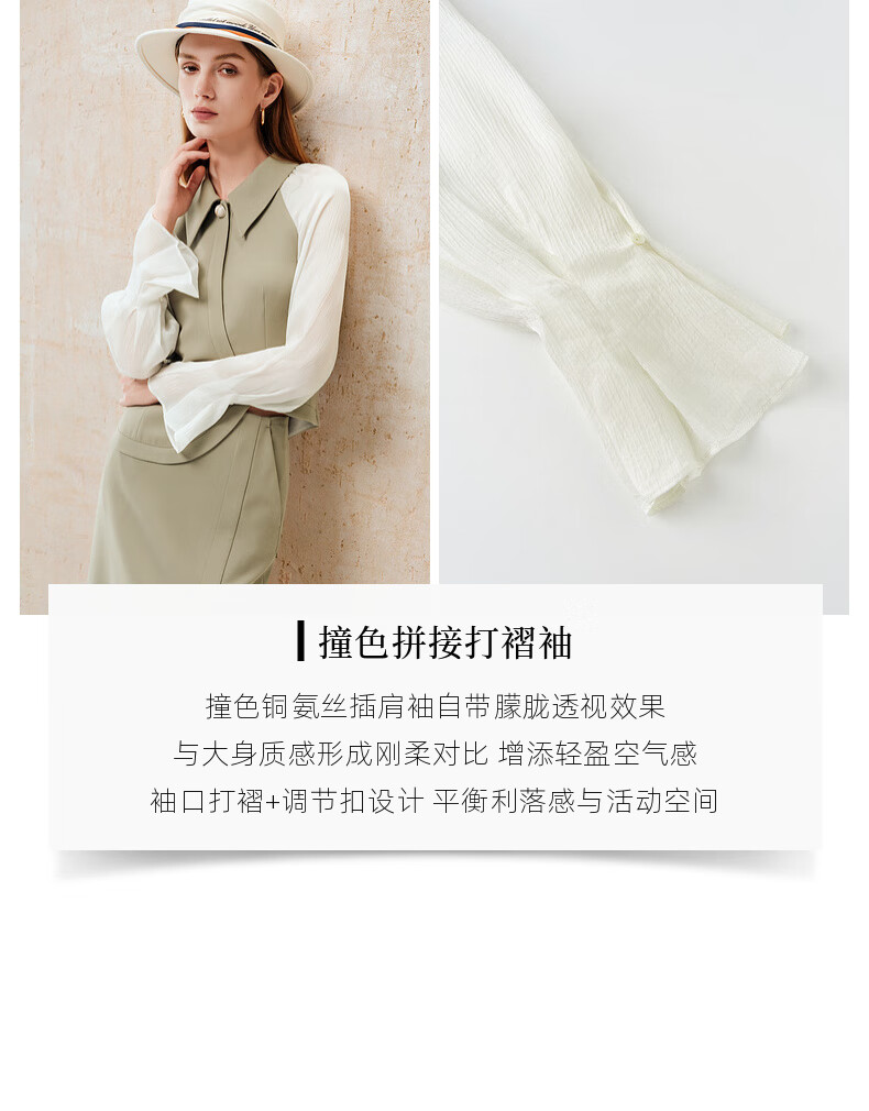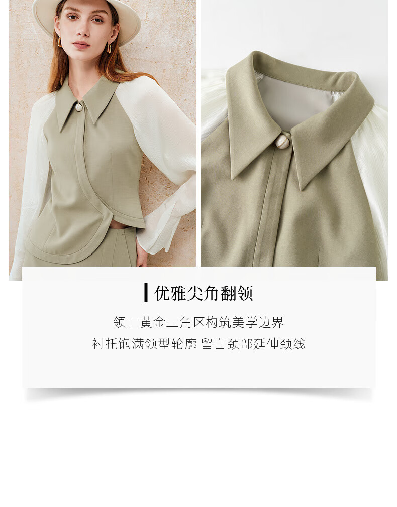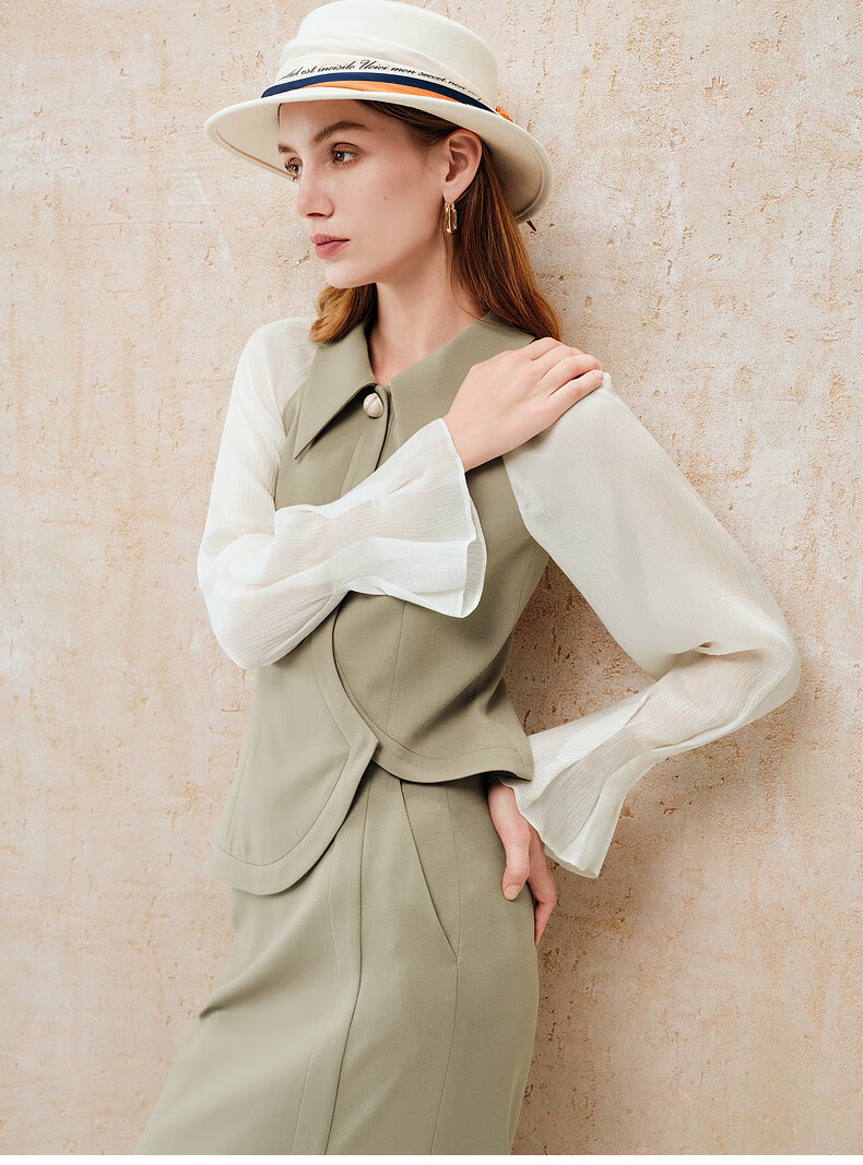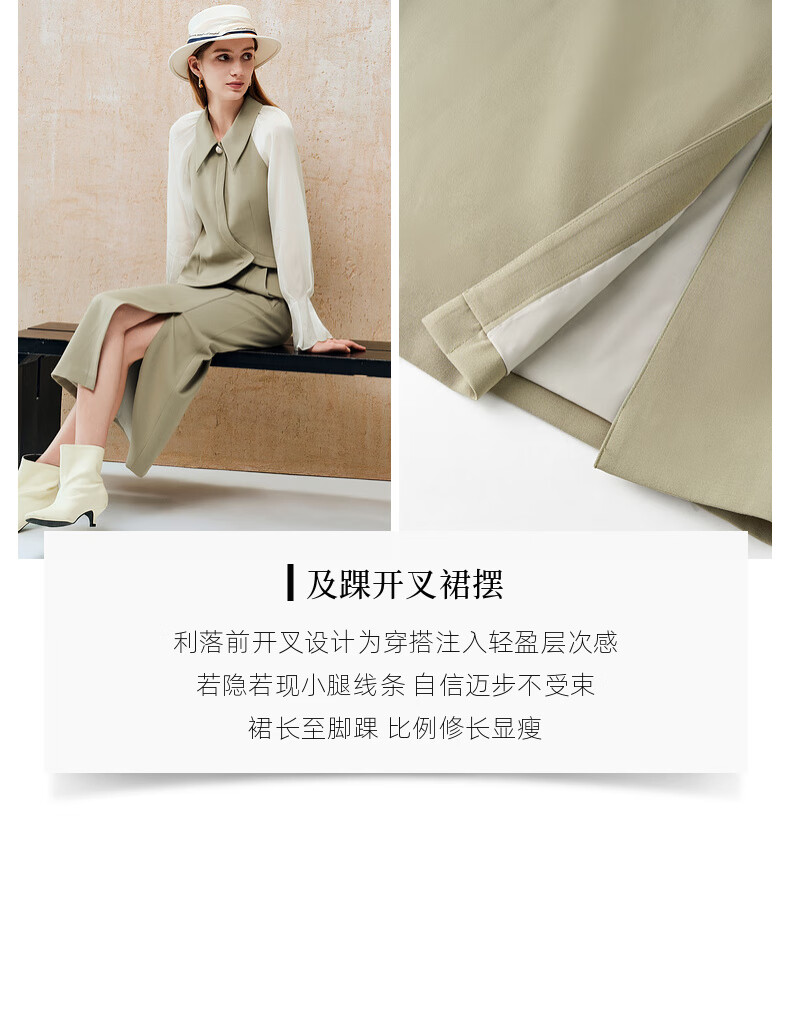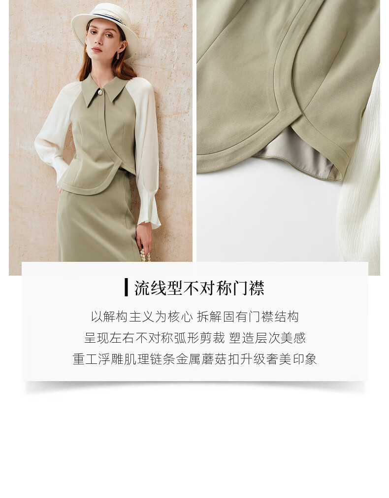 SUSHE Crescent Moon Deconstruction Wool Spliced Sleeve Cropped Top and Waist Straight Skirt Set Licorice Green-Skirt S