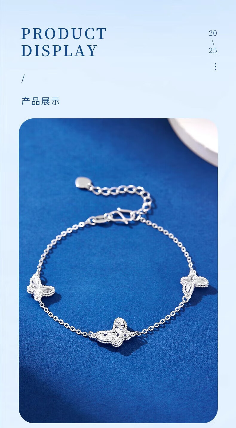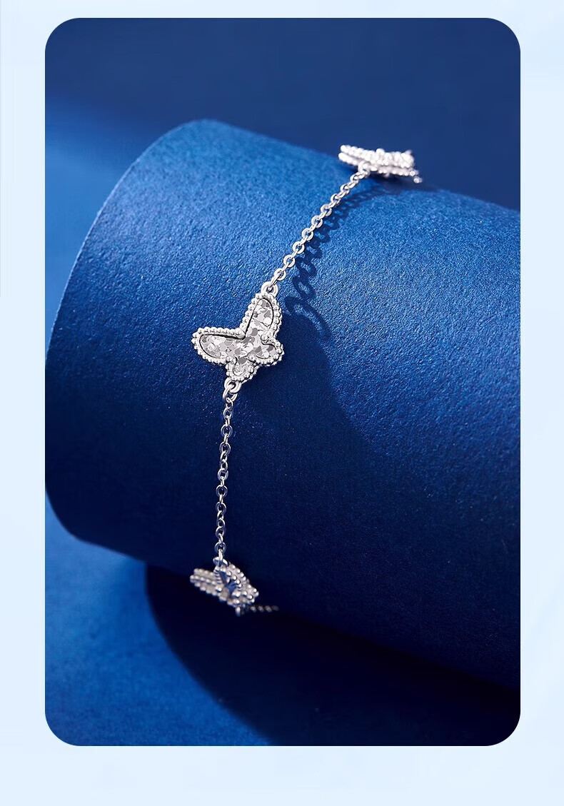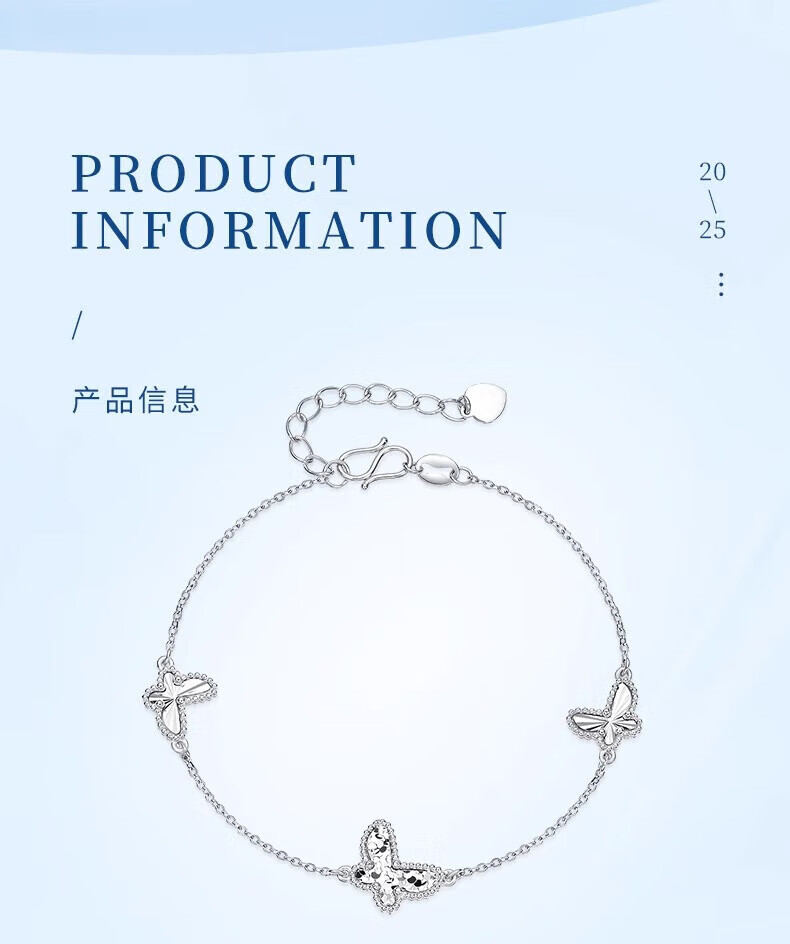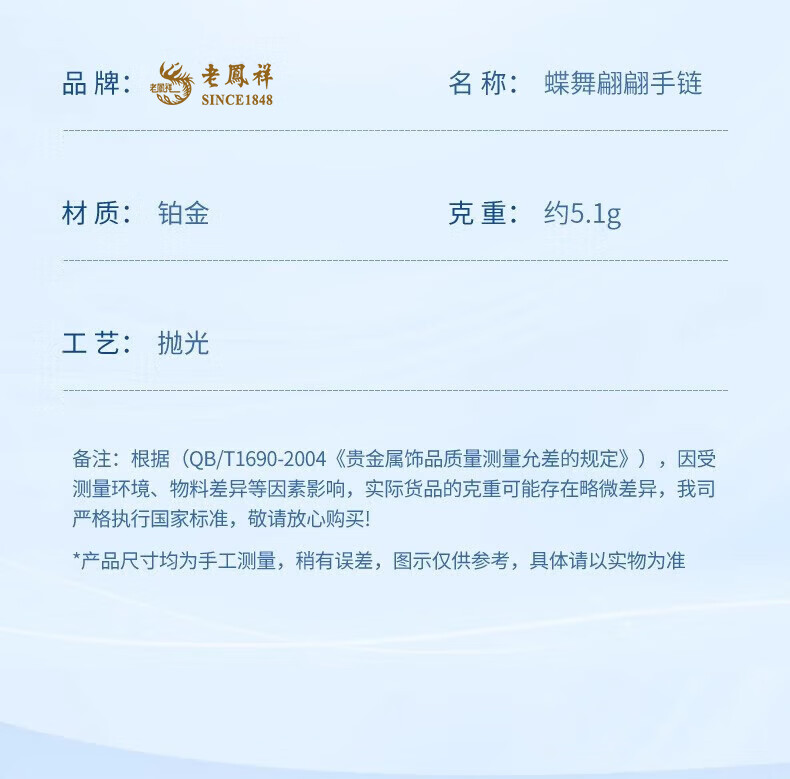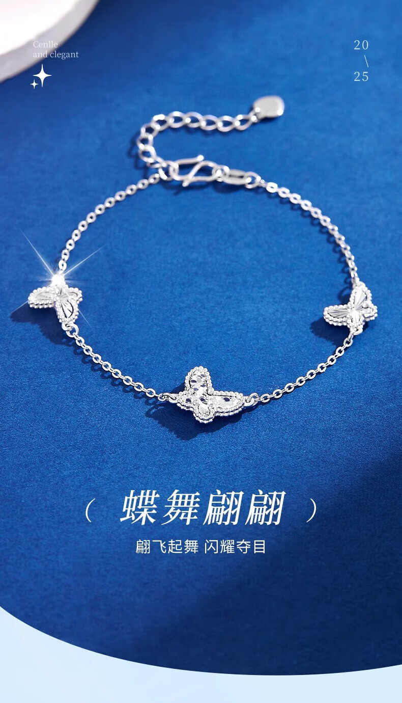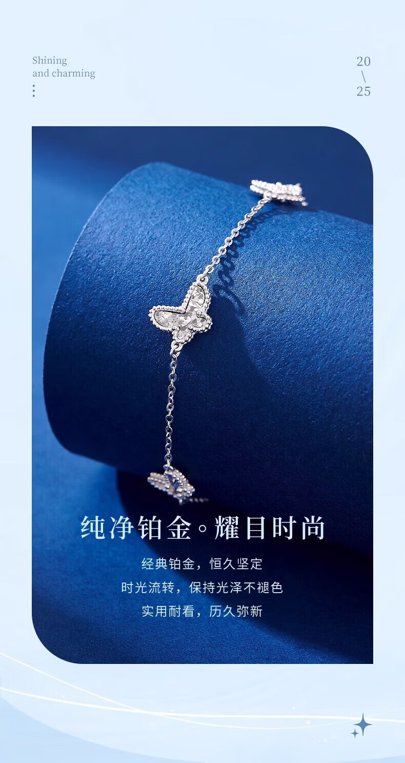 Lao Fengxiang PT950 platinum butterfly bracelet 2025 new platinum fashion jewelry Valentine's Day birthday gift for girlfriend Platinum butterfly bracelet about 5.1g Brand gift box