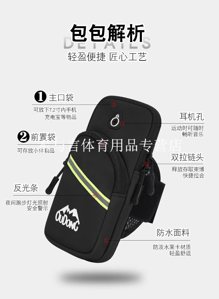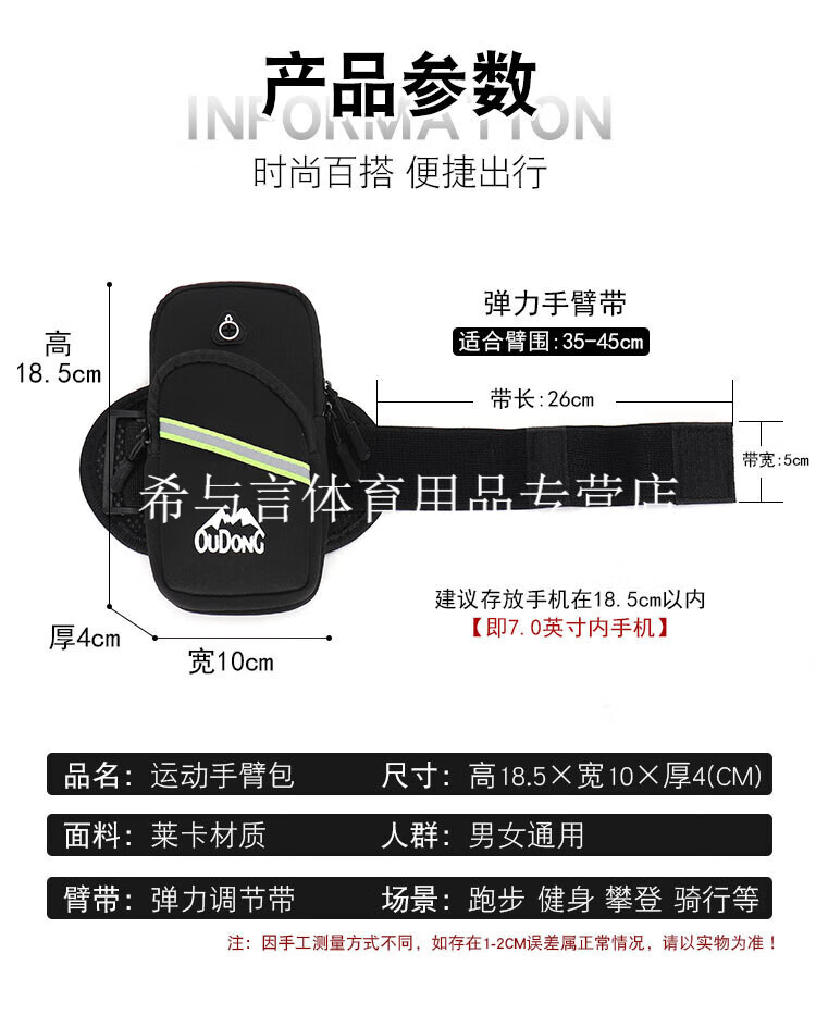 Lishi mobile phone bag fitness running mobile phone arm bag arm fitness equipment lightweight sports mobile phone arm sleeve unisex black suitable for mobile phones within 7.5 inches