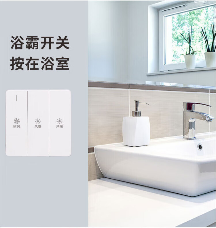 Bath heater switch 86 type bathroom heater switch two-on-three-on three-in-one universal bathroom two-on-three-on lighting three-on single control switch piano key three-on lighting ventilation and heating white