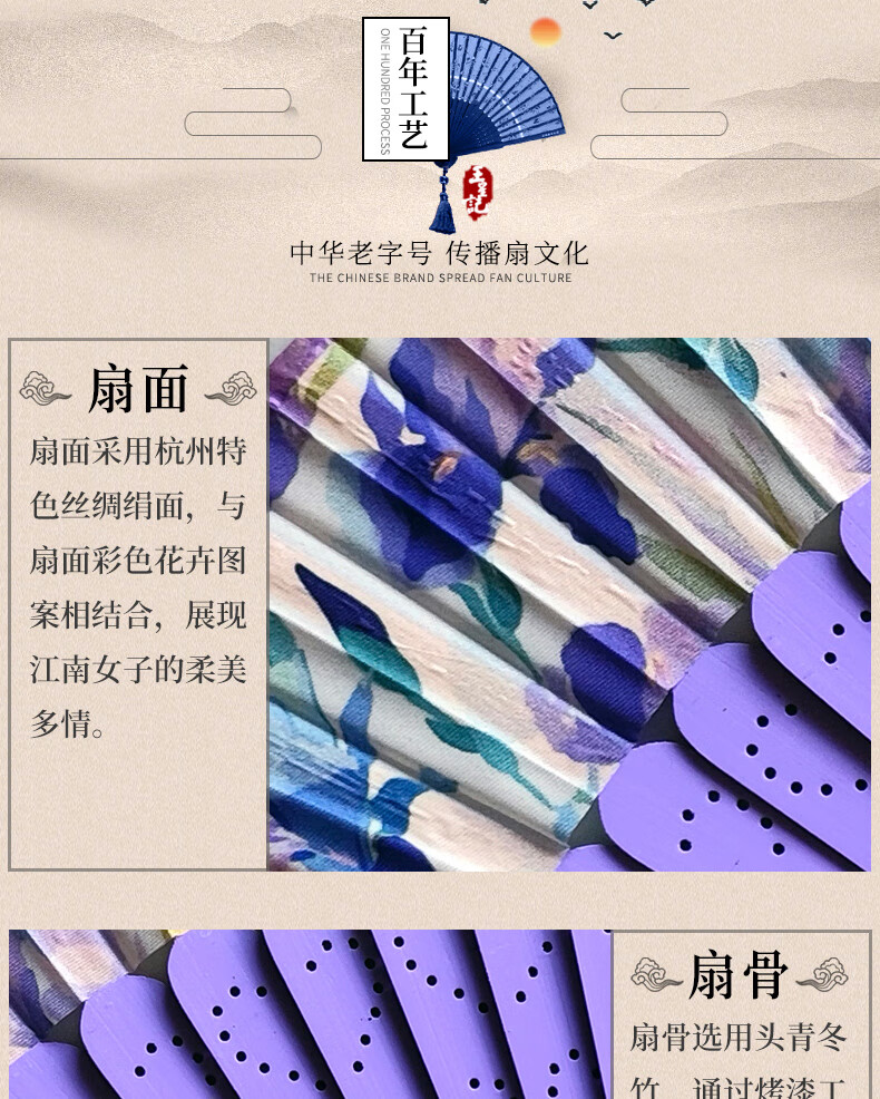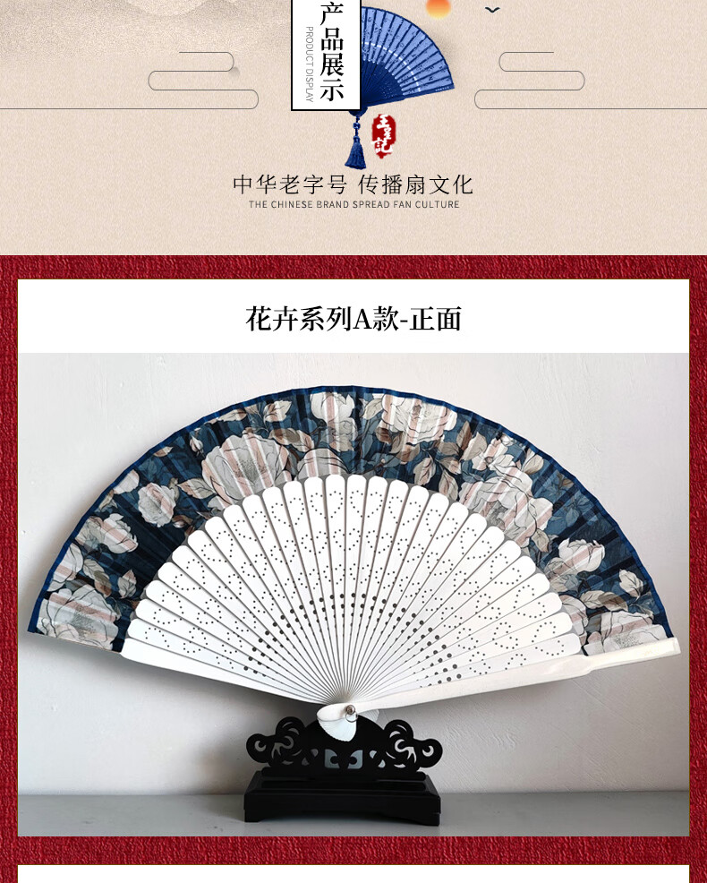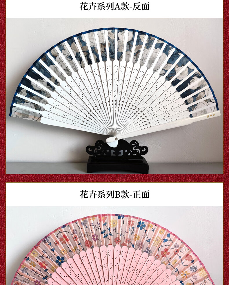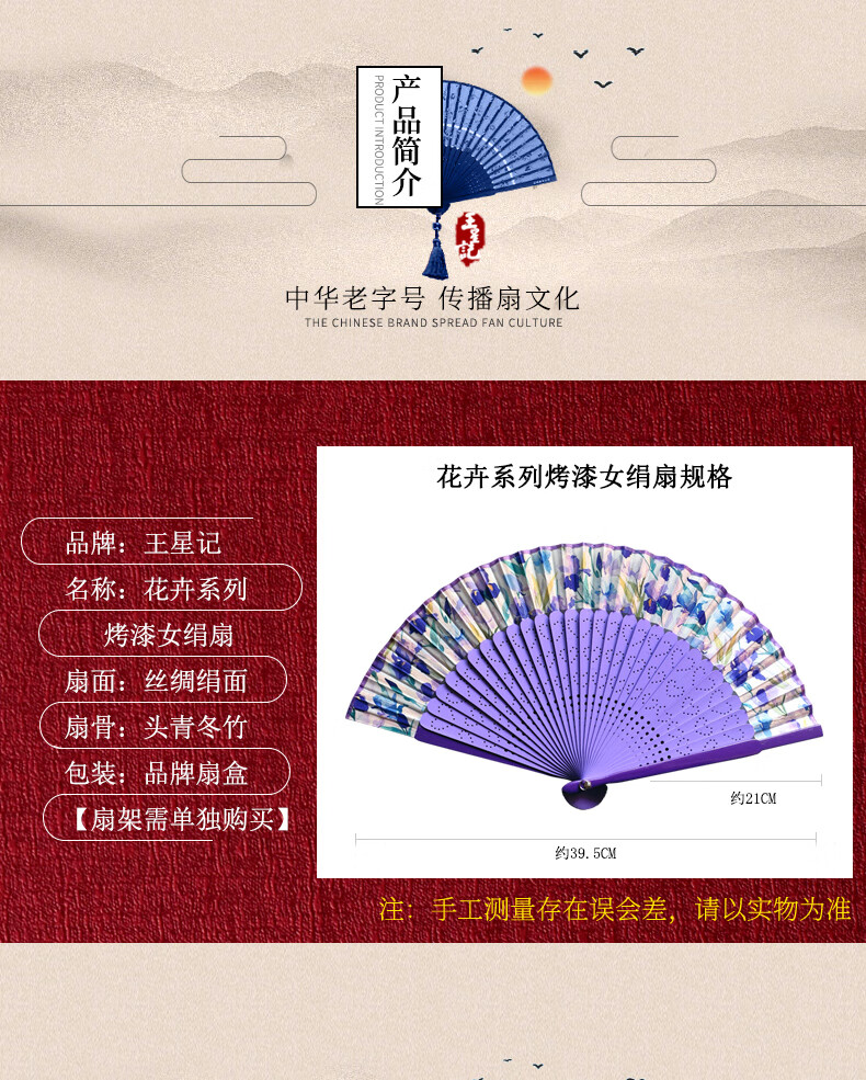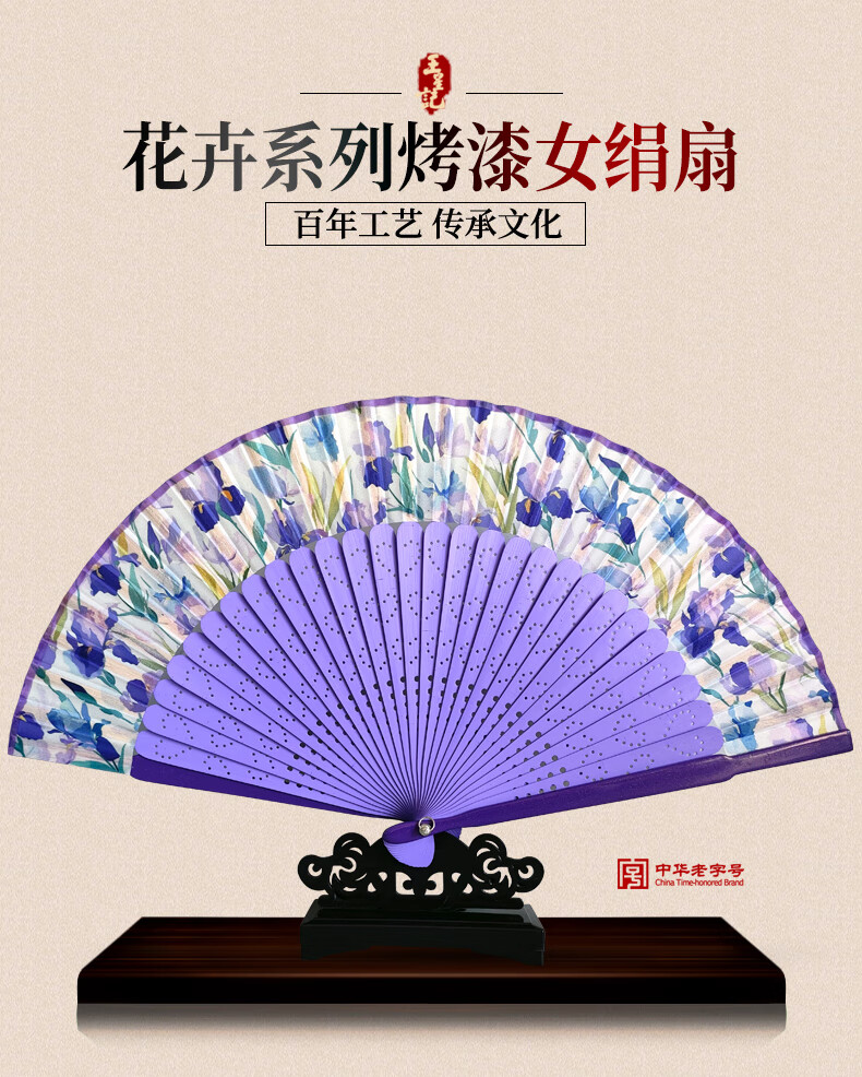 Wang Xingji Ancient Style Painted Silk Folding Fan for Women Hangzhou Gift Flower Series for Foreigners Flower Series C Style (21cm) Daily Fan