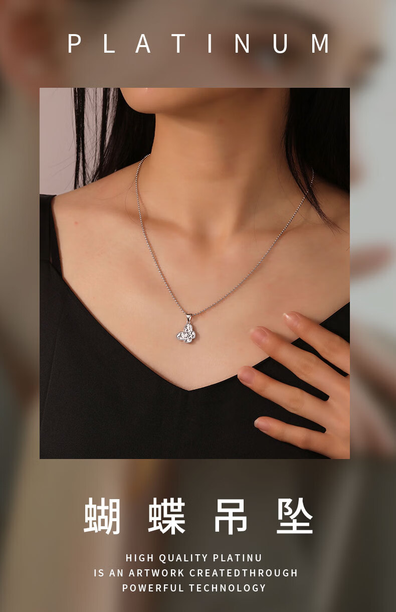 Duozun pt950 genuine platinum pendant for women crushed ice ice butterfly single pendant set of platinum necklace Valentine's Day gift spot sparkling butterfly pendant 2.99 g