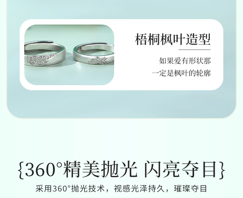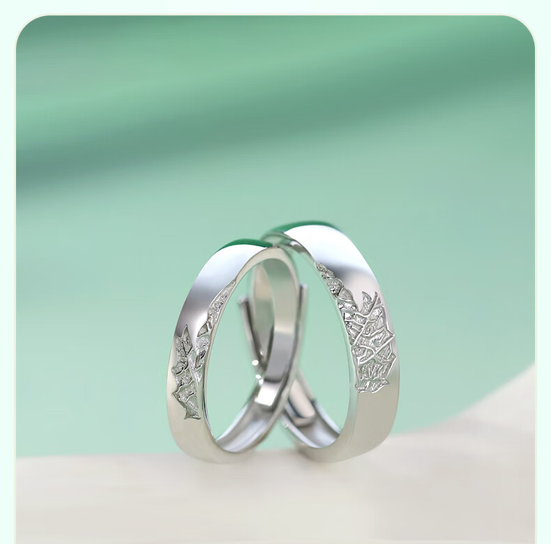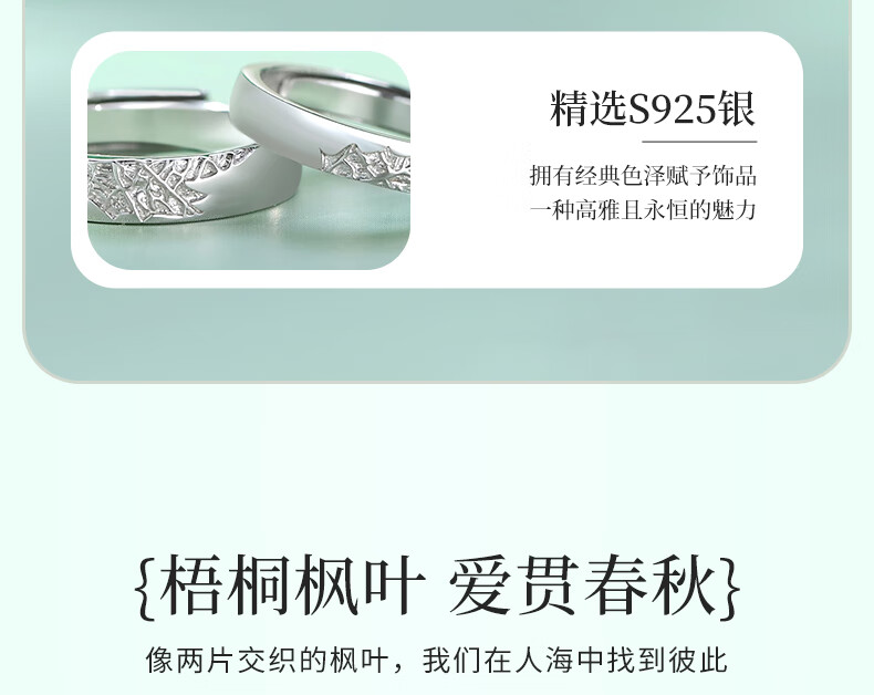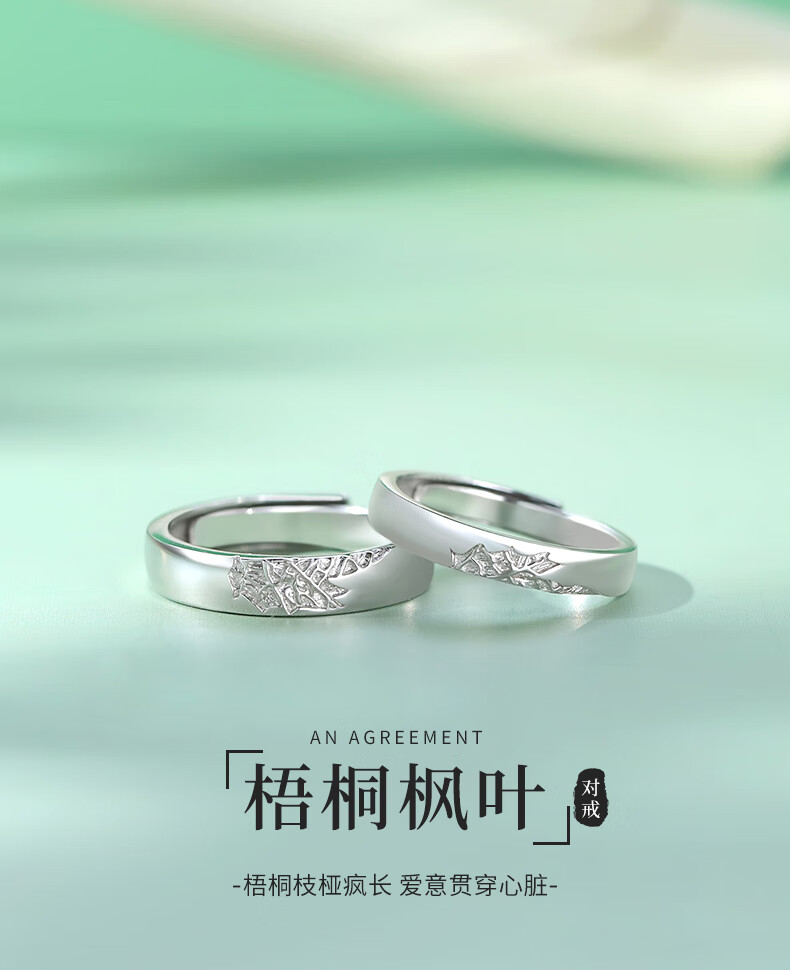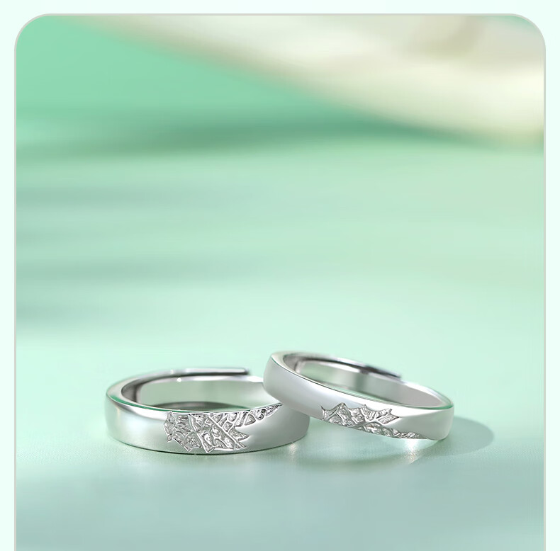 Chinese gold sycamore maple leaf silver ring for male and female couples to express love, proposal, birthday gift for girlfriend and wife anniversary, sycamore maple leaf couple ring