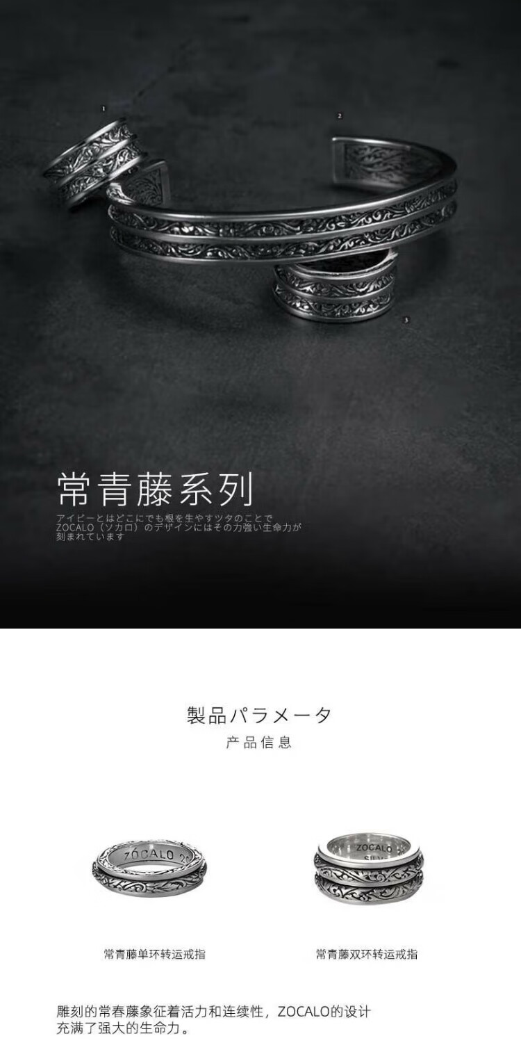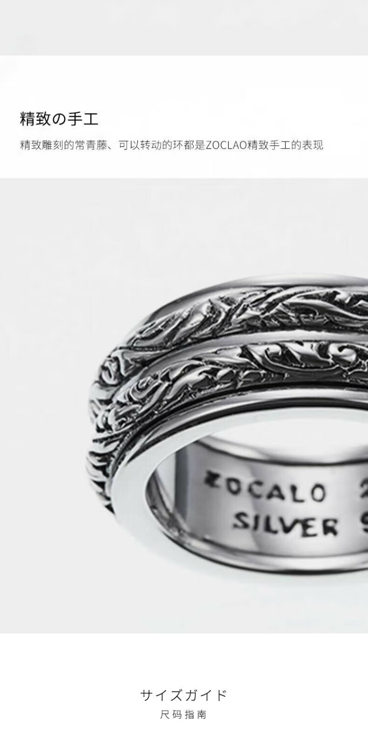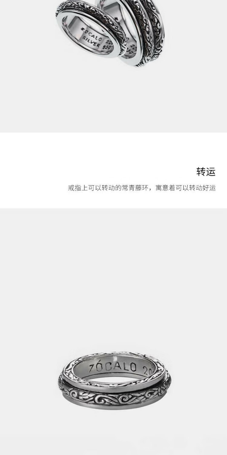 ZOCALO Ivy Series Double Ring Transfer Ring, Same Style for Men and Women, 950 Silver Handmade Silver Jewelry, Forever Elephant, No. 17 (Suitable for Finger Ring Circumference 57mm)