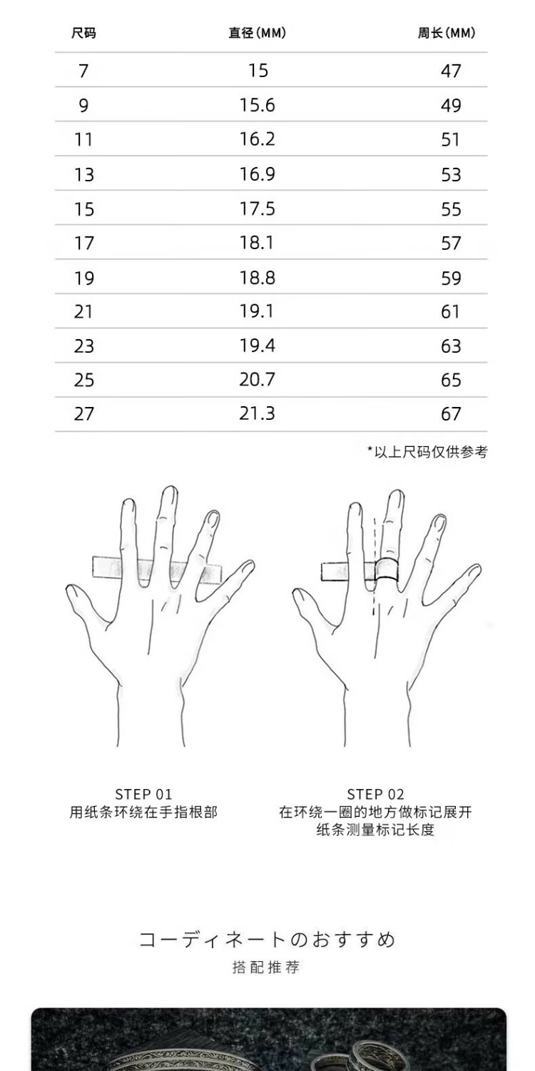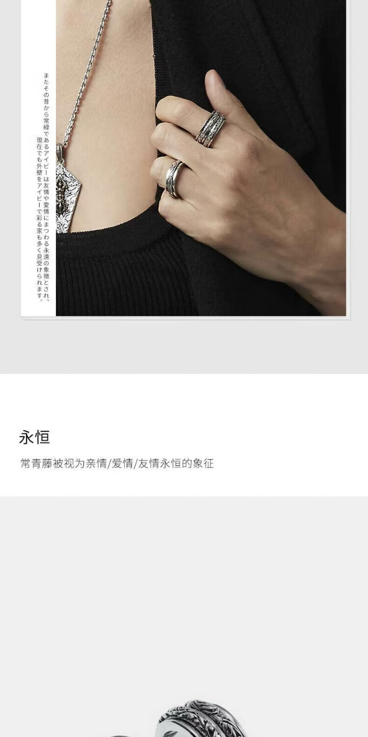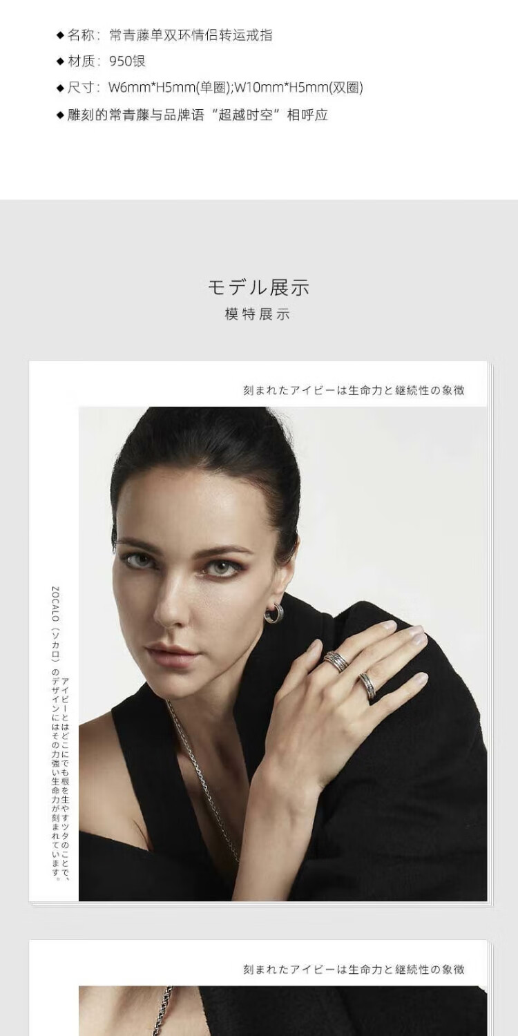 ZOCALO Ivy Series Double Ring Transfer Ring, Same Style for Men and Women, 950 Silver Handmade Silver Jewelry, Forever Elephant, No. 17 (Suitable for Finger Ring Circumference 57mm)