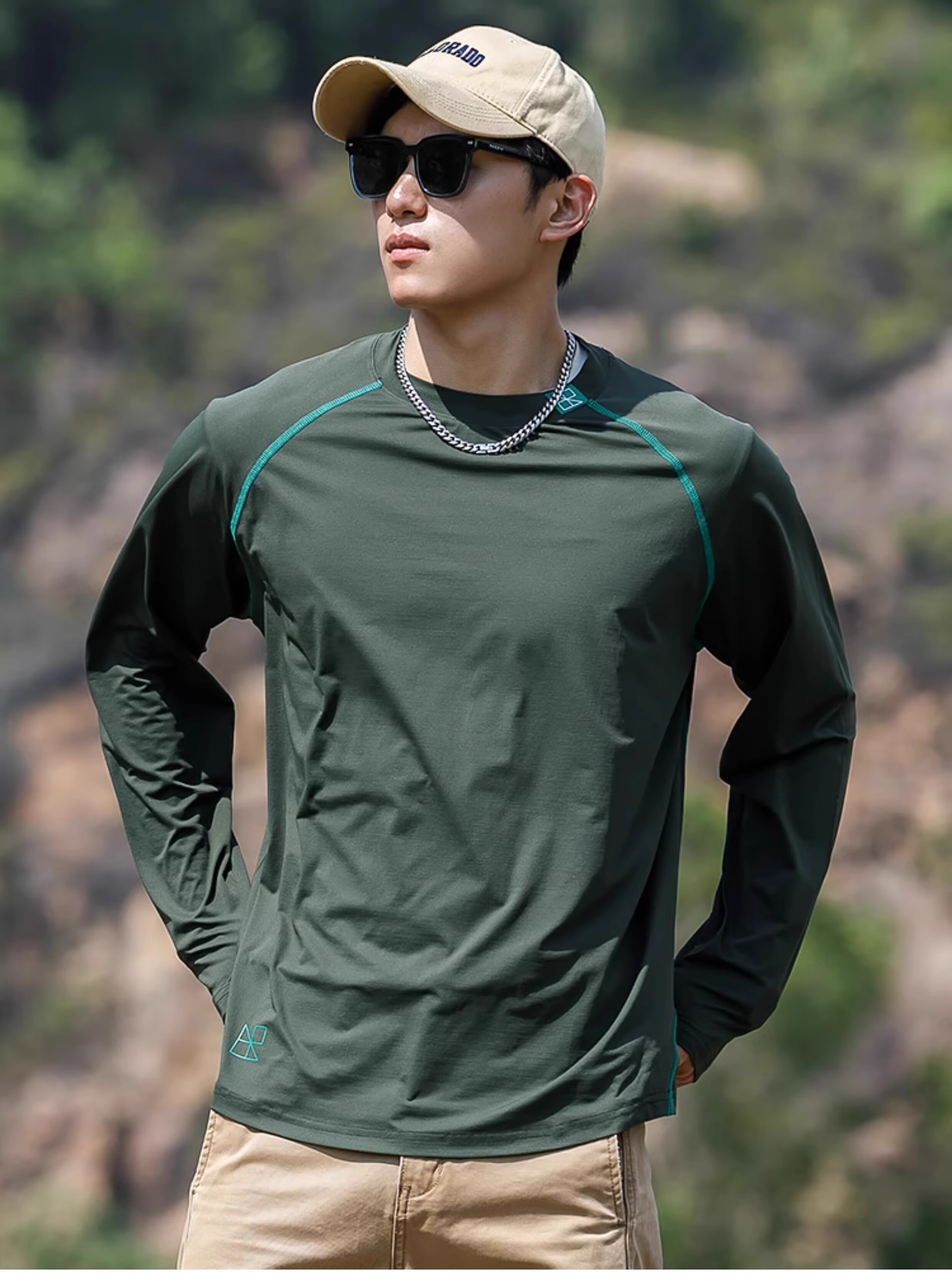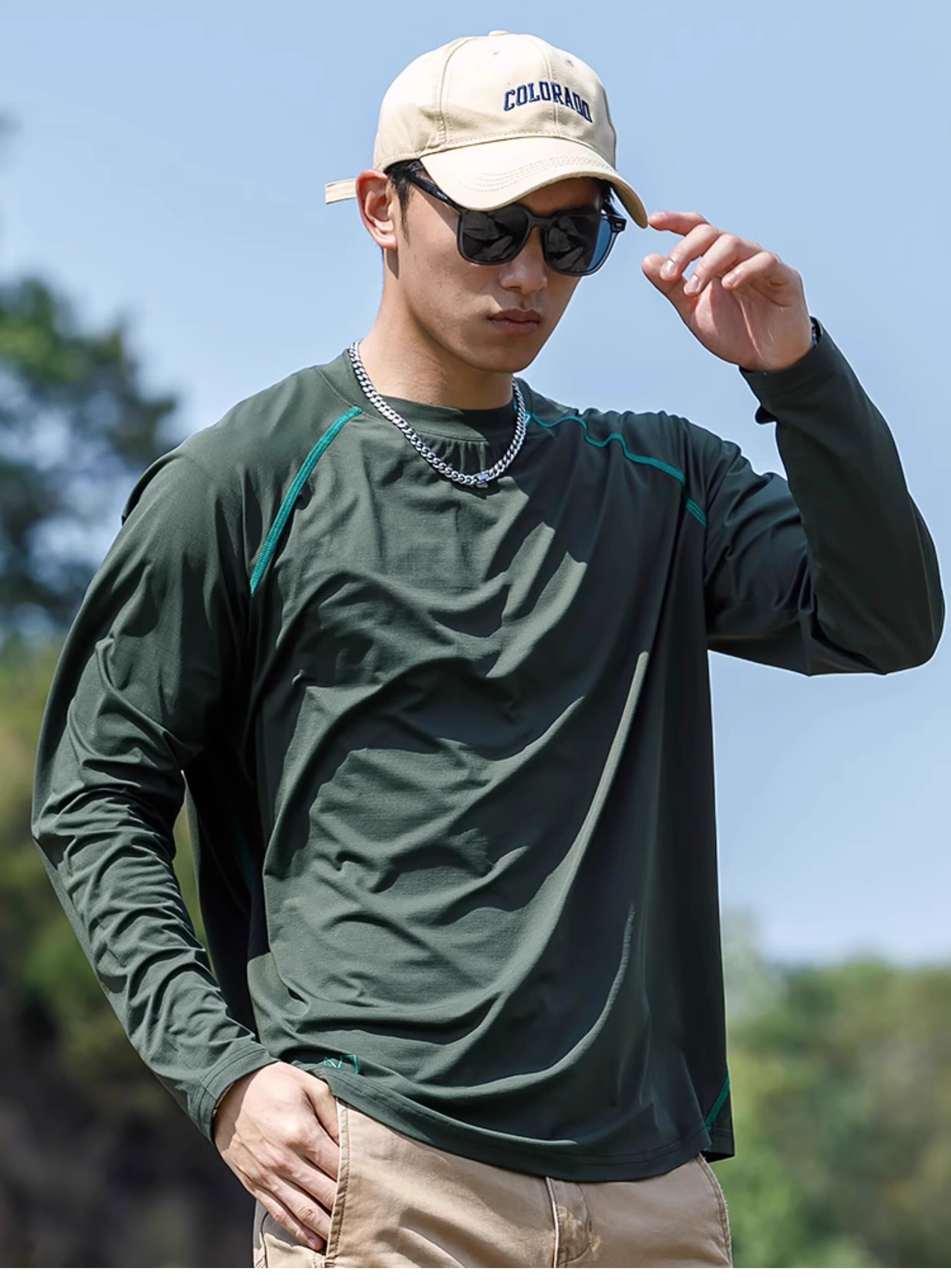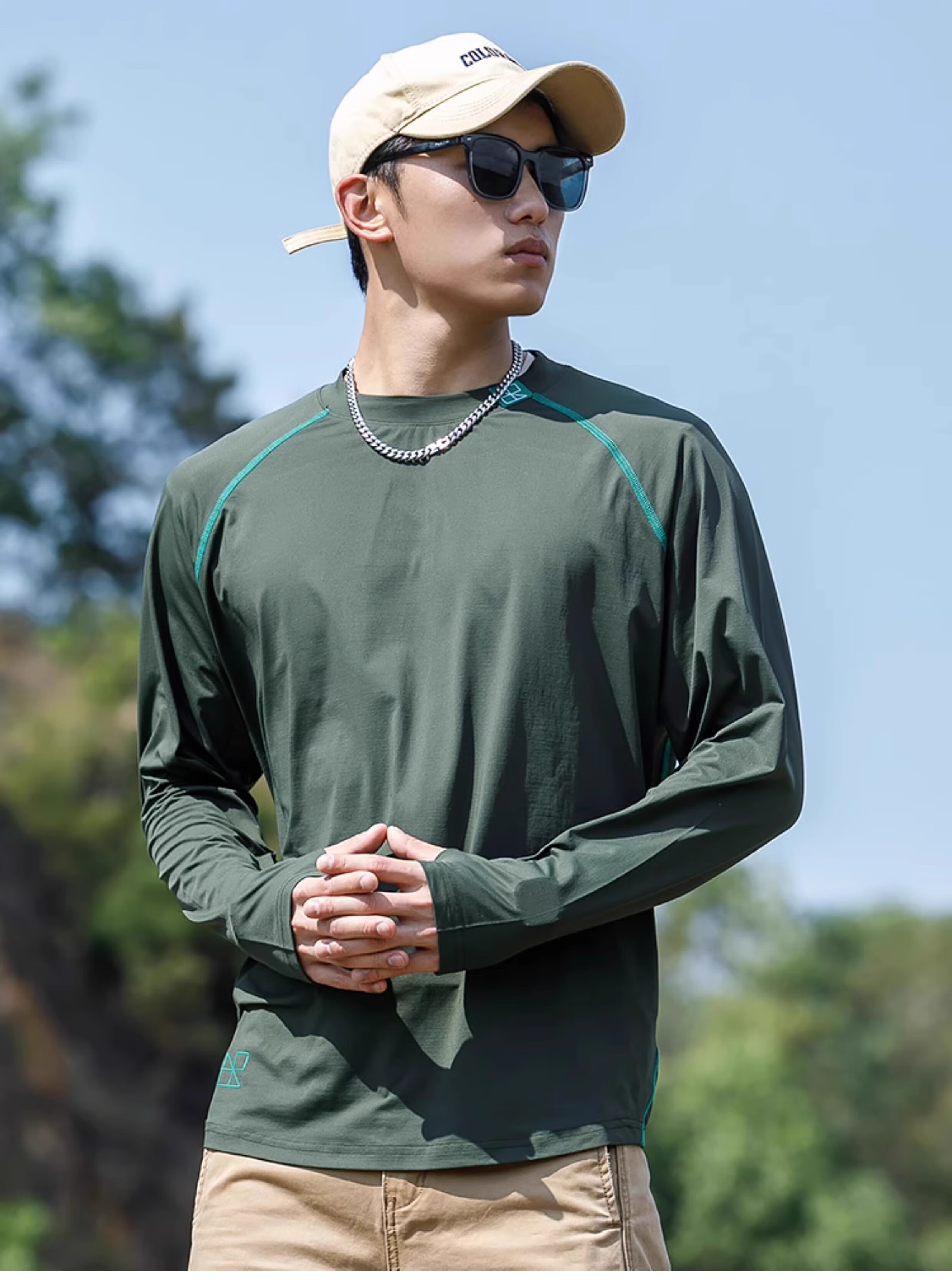 Haixing outdoor military green men's ice silk cool Solona long-sleeved T-shirt summer quick-drying sun protection sports cycling jersey cobalt blue Tibetan (upf50+cooling sun protection) S