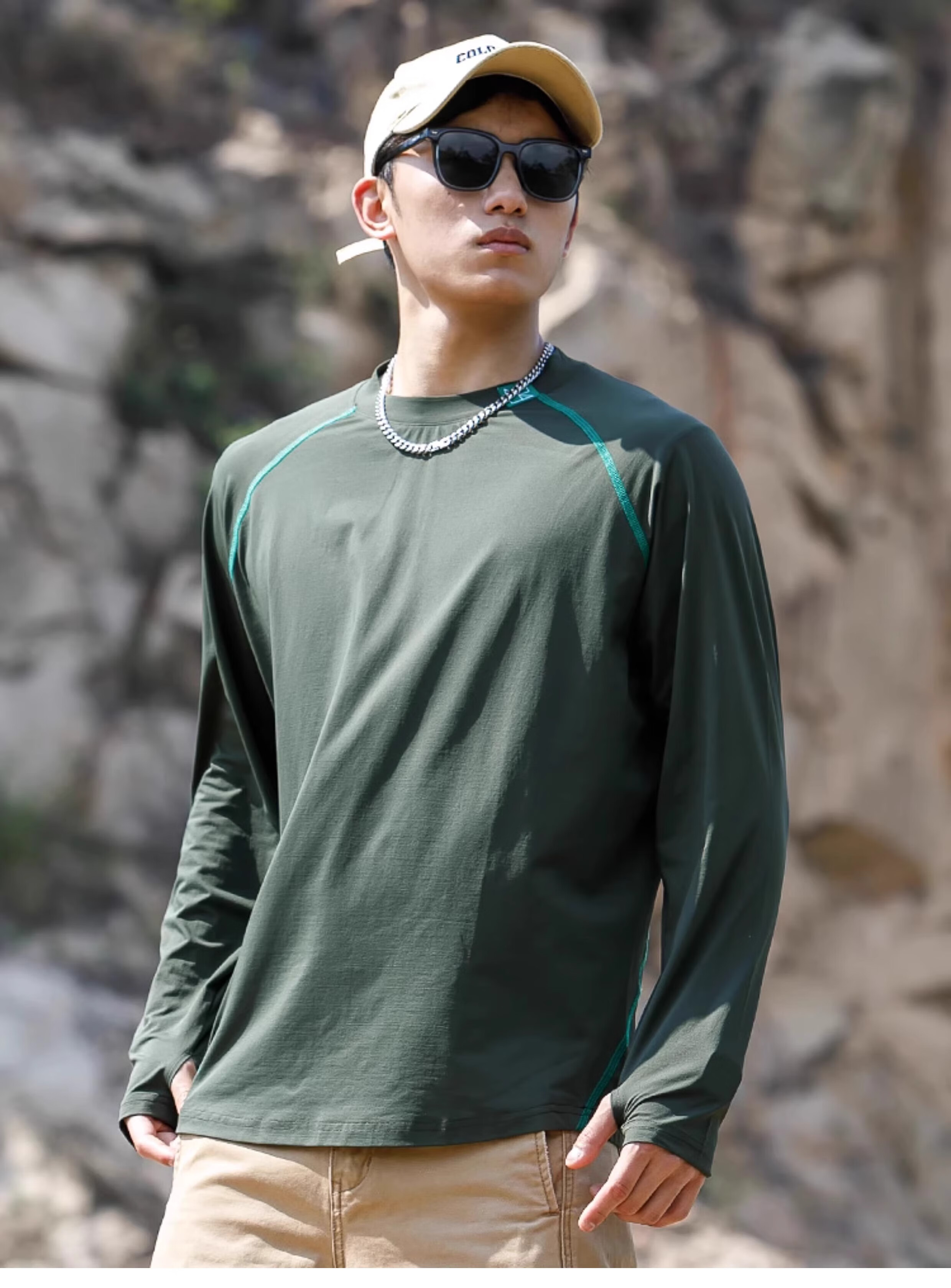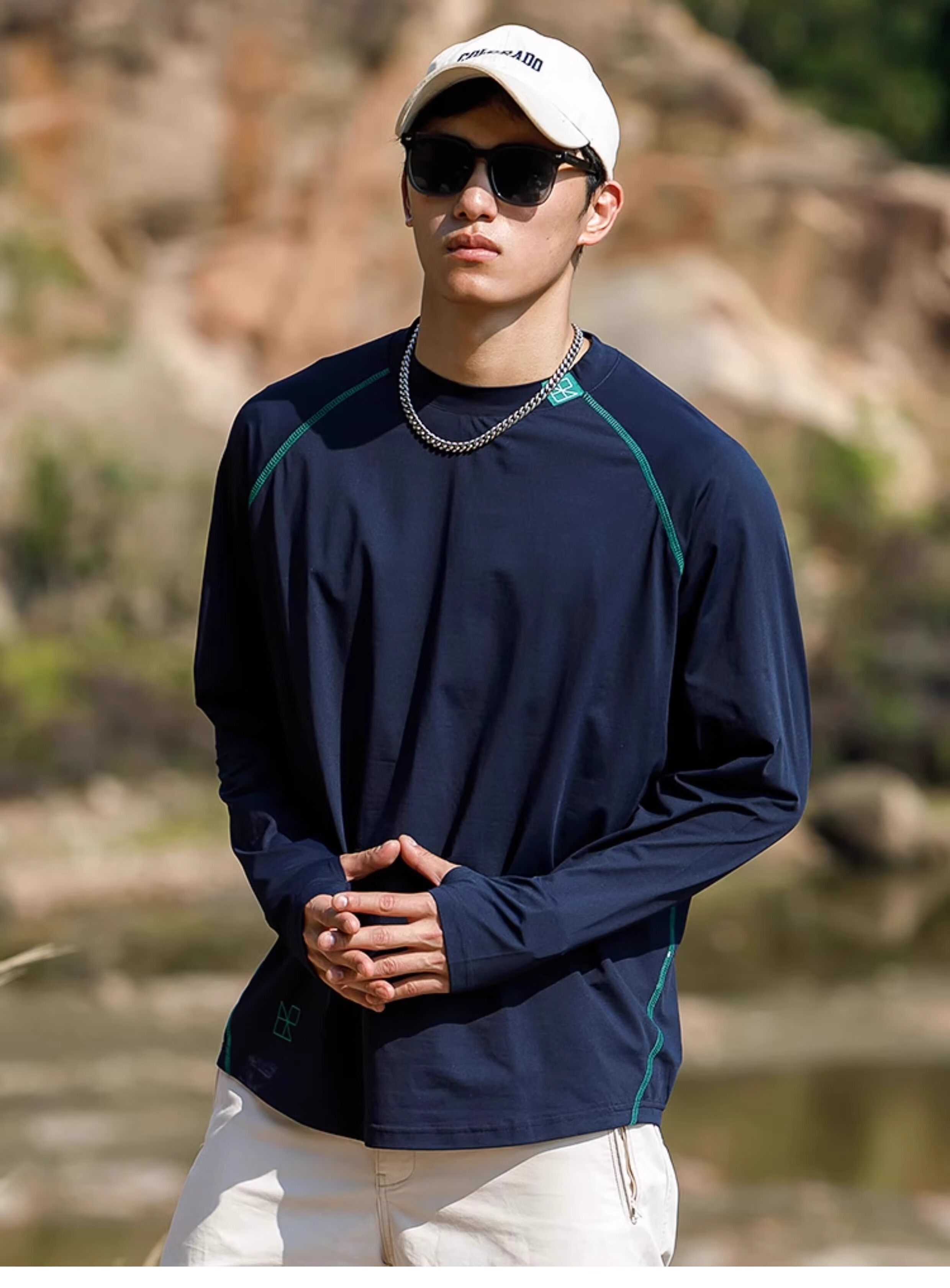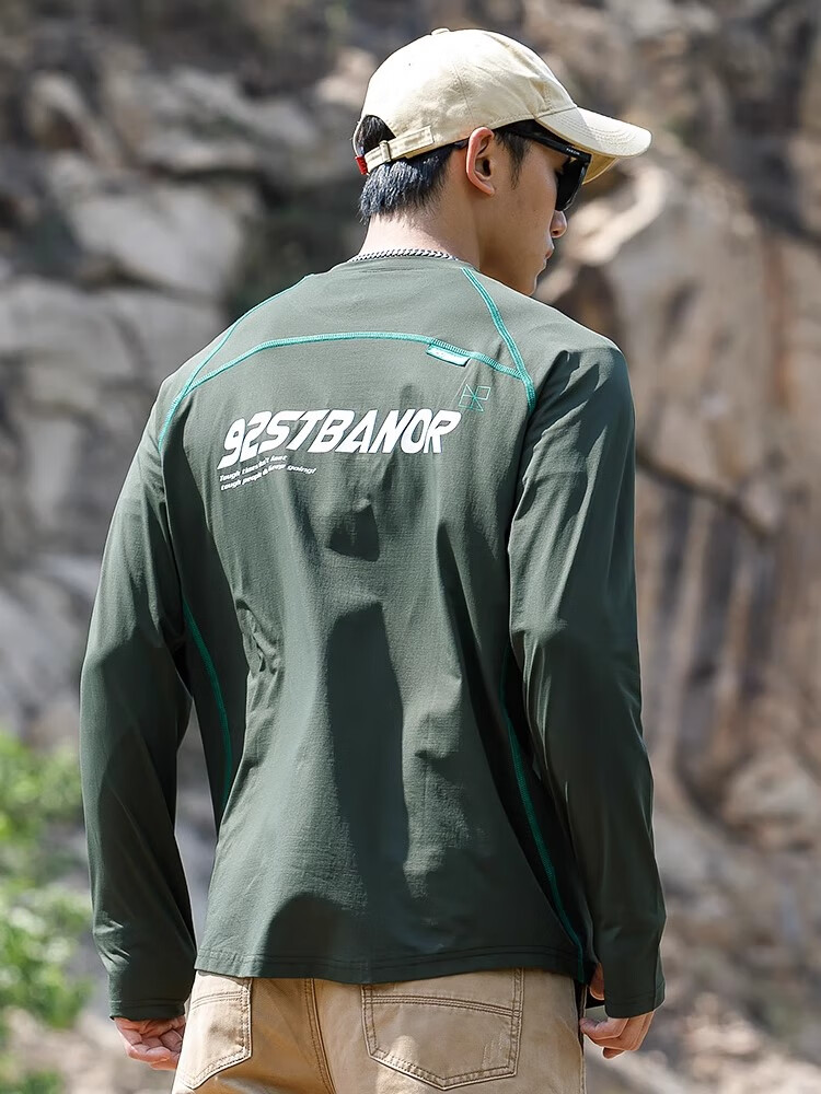 Haixing outdoor military green men's ice silk cool Solona long-sleeved T-shirt summer quick-drying sun protection sports cycling jersey cobalt blue Tibetan (upf50+cooling sun protection) S