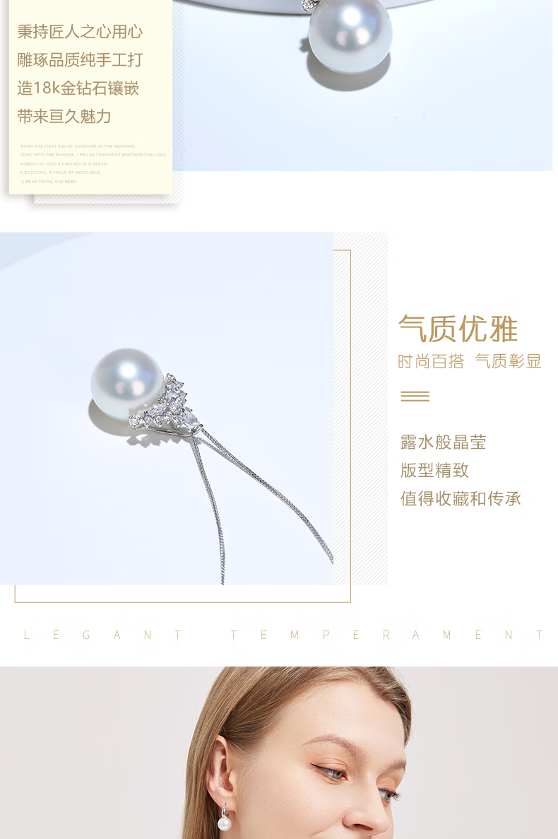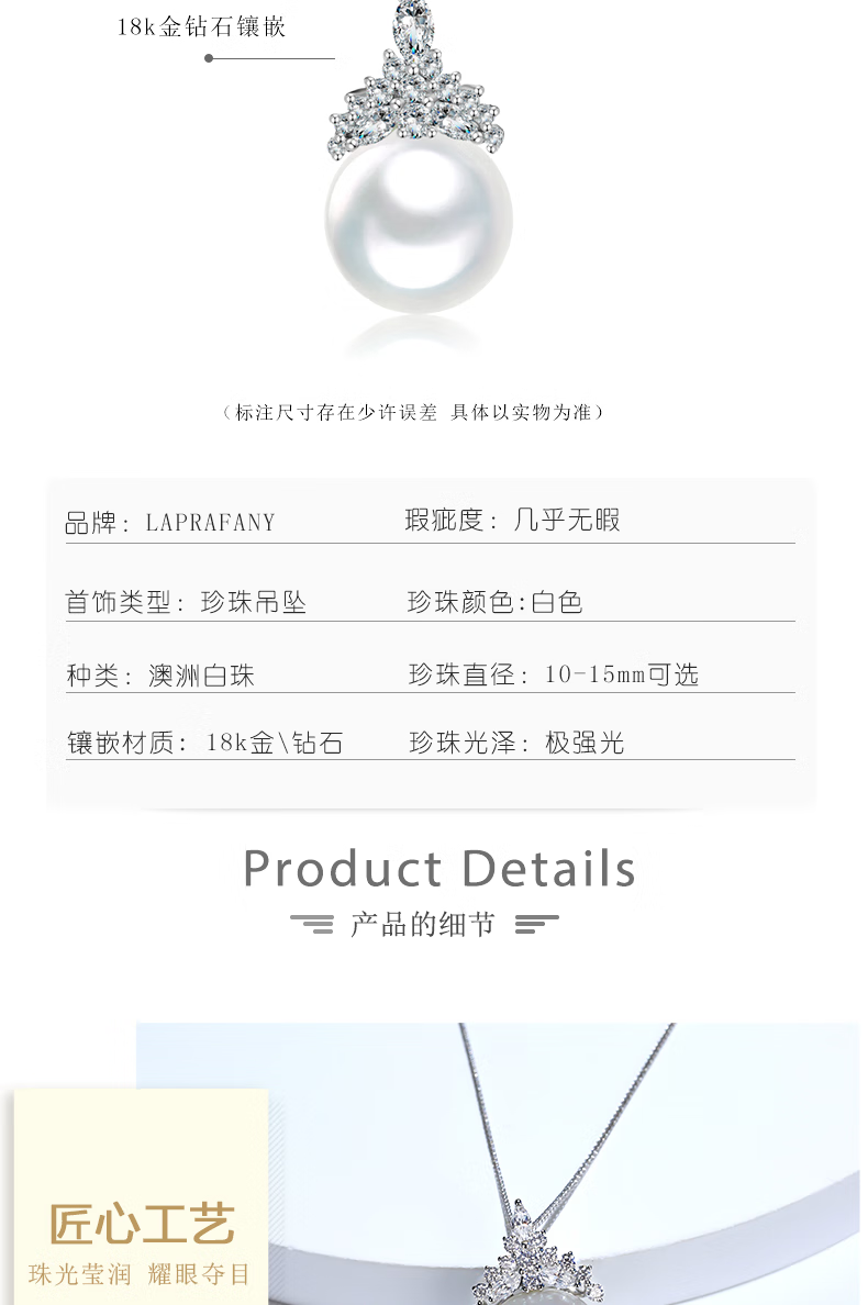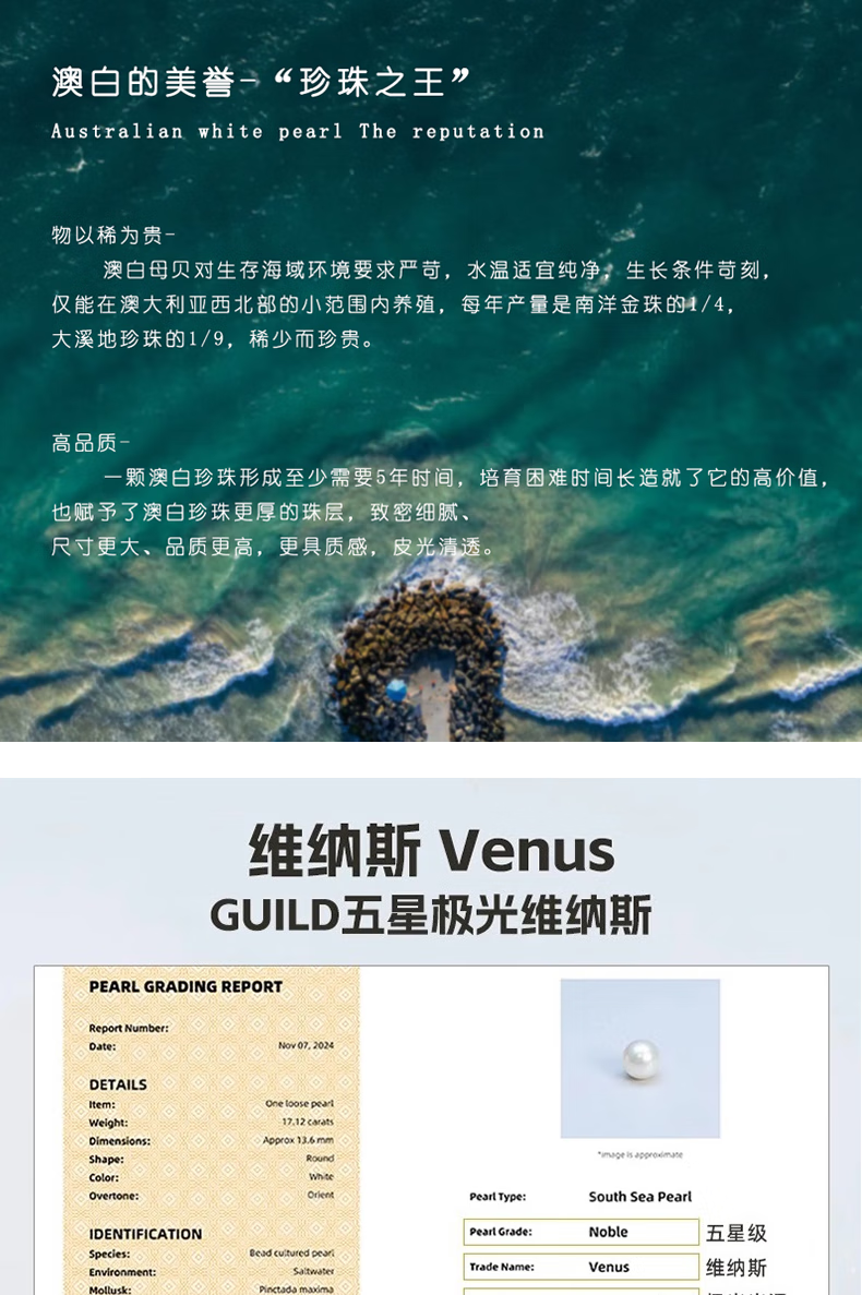 Lebo Fingilder Venus Australian White Natural Seawater Pearl Pendant Necklace 18K Gold Diamond Extremely Bright Ice Queen 13-14mm Heritage Five-Star Venus Double Certificate