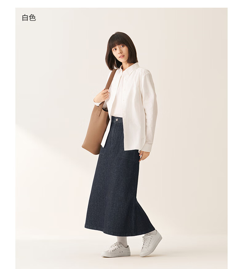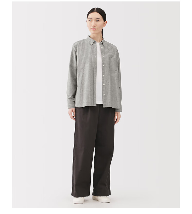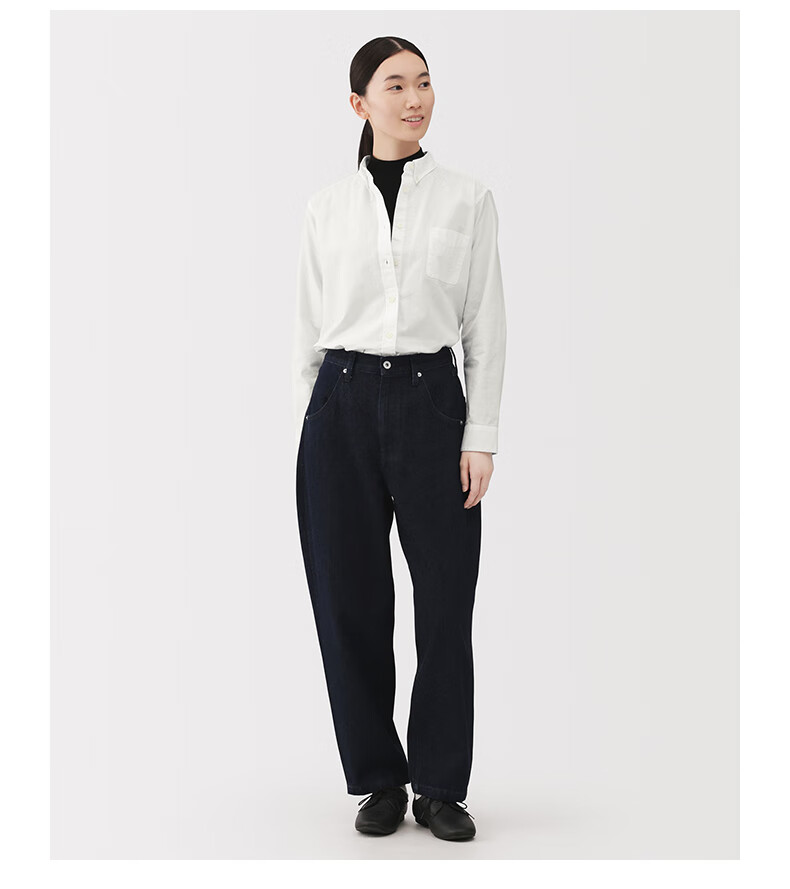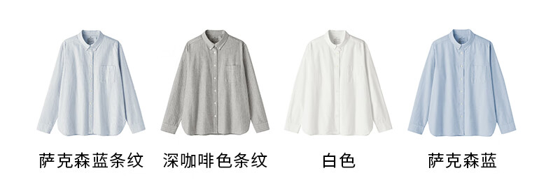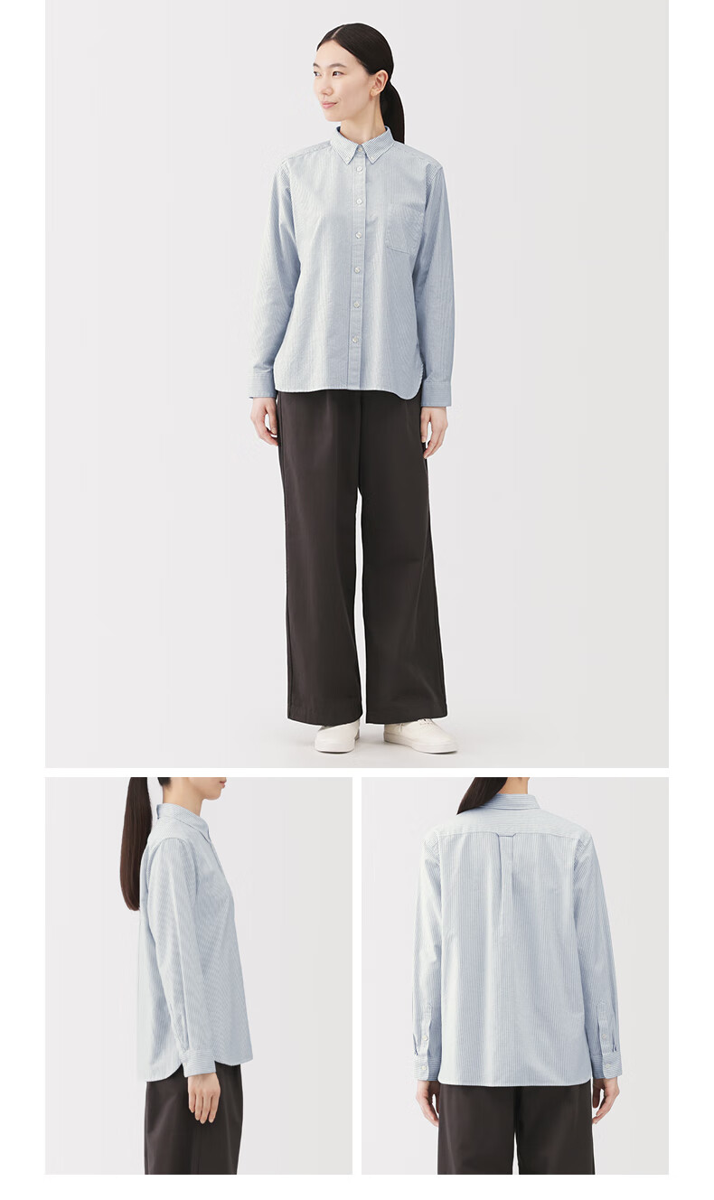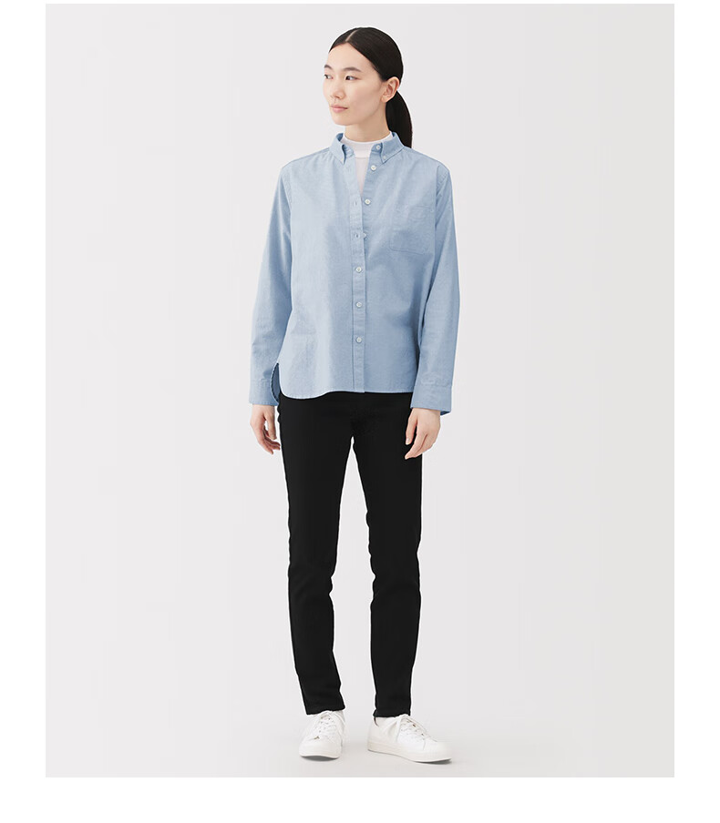 MUJI Women's Cotton Washed Oxford Button Collar Long Sleeve Shirt Women's Shirt Jacket Top 25 Winter Women's Saxon Blue S (155/80A)