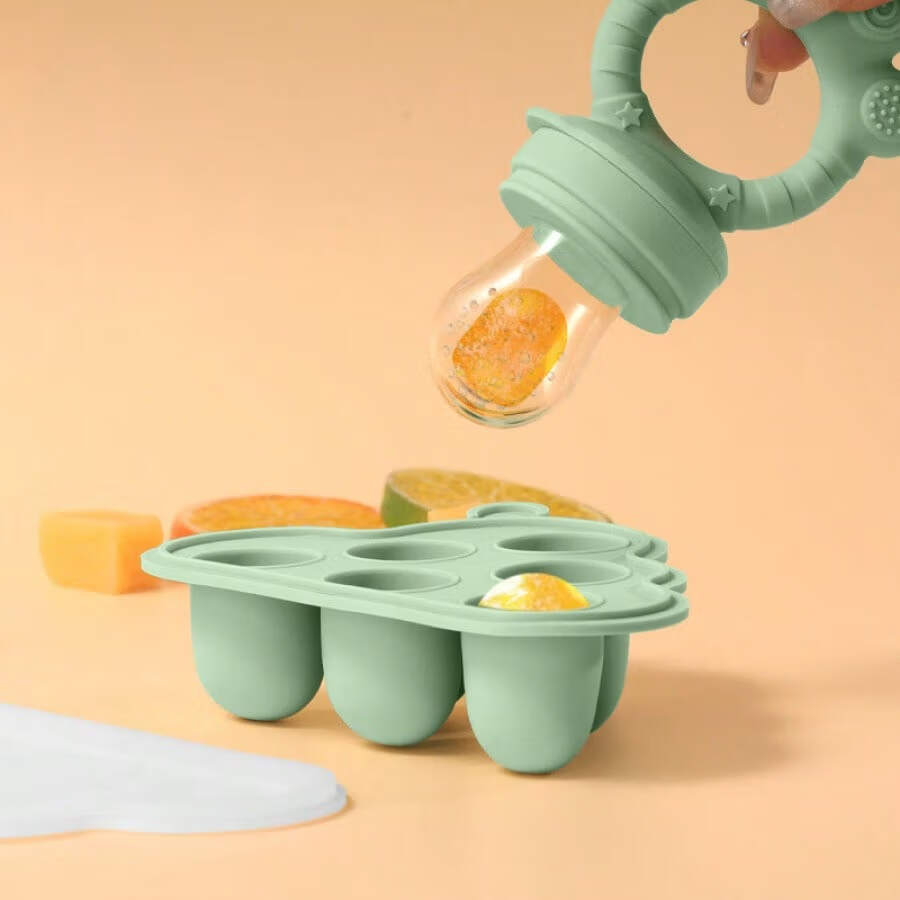 Infants and toddlers chewing teeth training teether meat puree fruit baby food supplement baby chewing ice tray set blue cat claw chewing music + food ice tray 1 pack