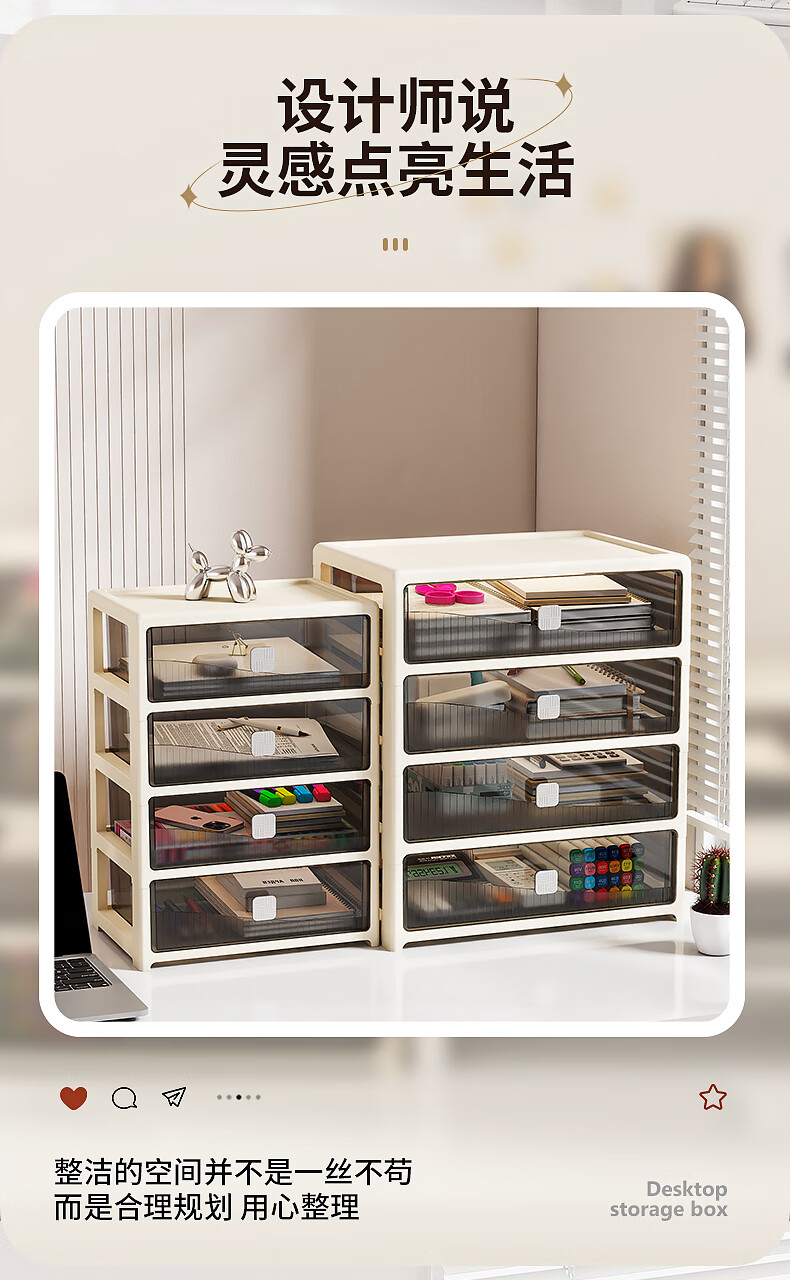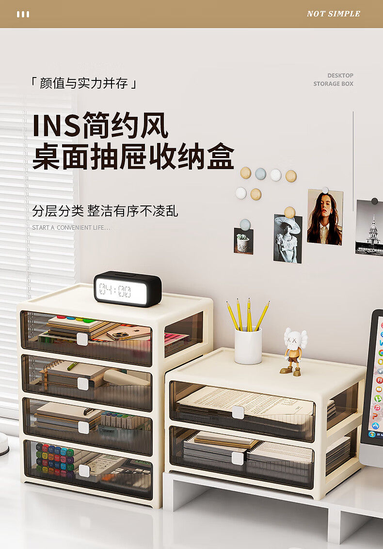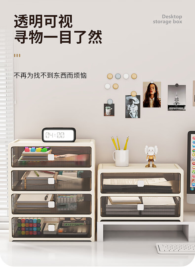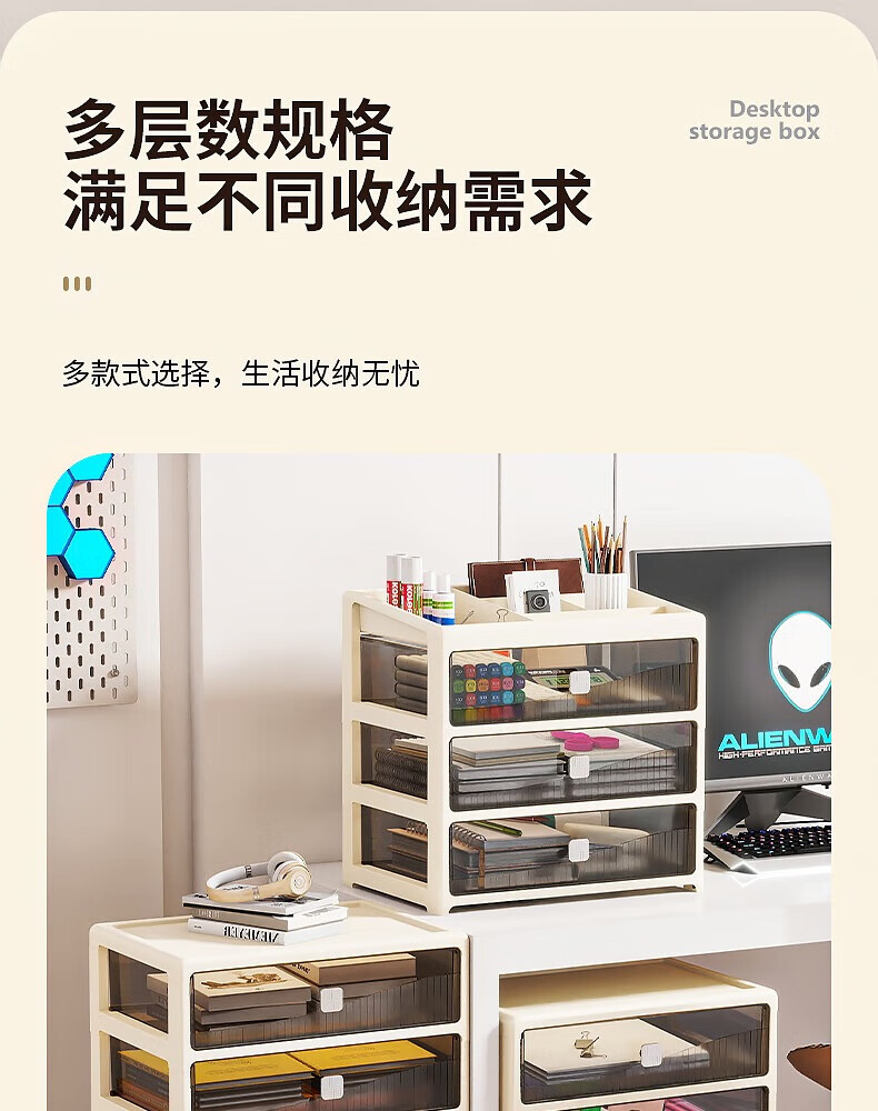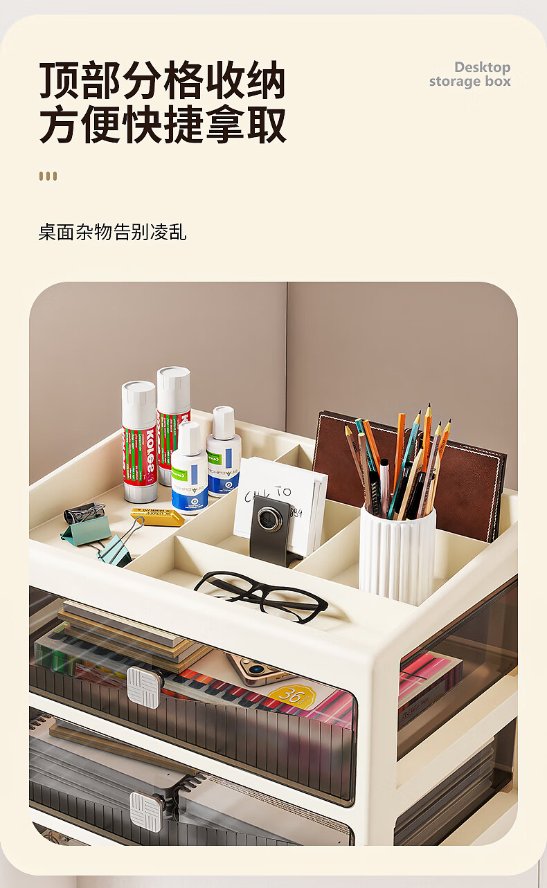 Desktop storage box drawer-type office pen holder box stationery cosmetics storage box organization multi-layer storage rack cabinet 26 sides wide size - flat floor 4 layers
