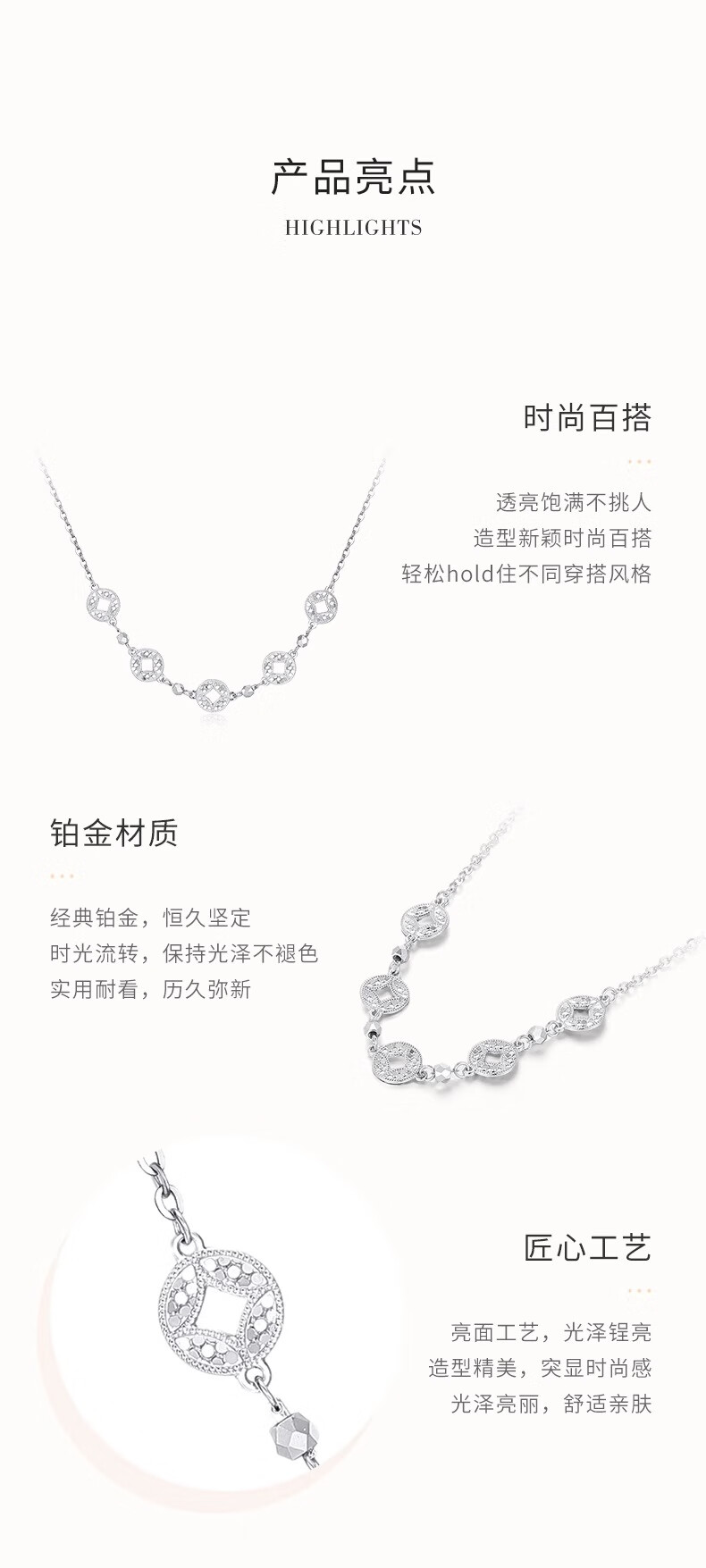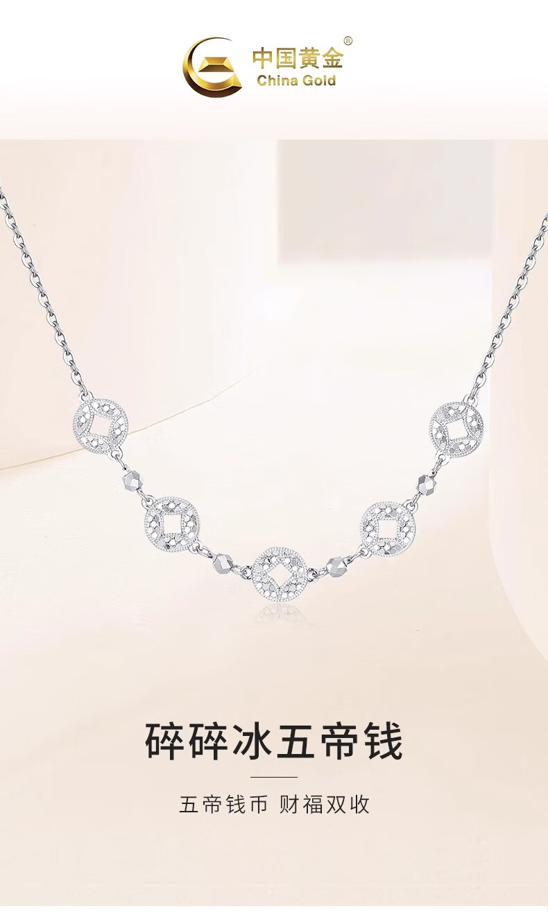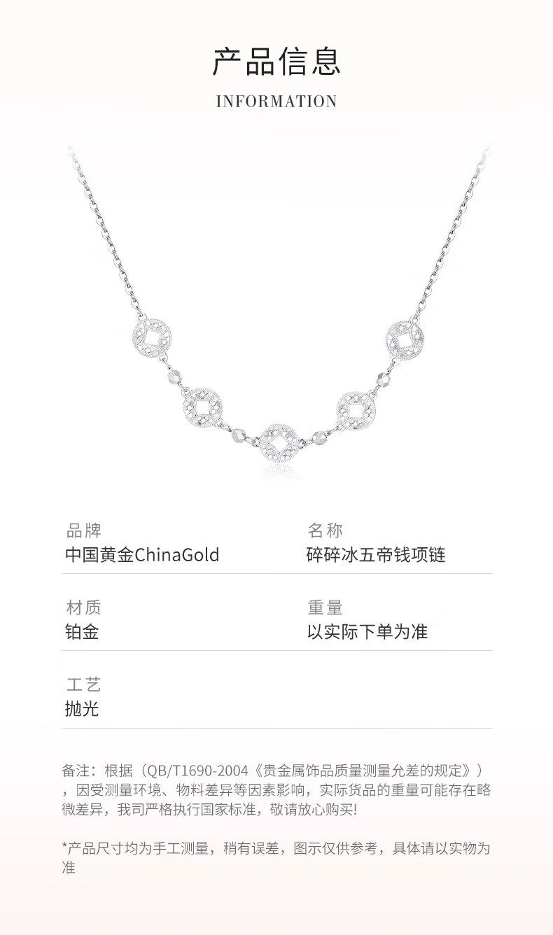 China Gold (CHINA GOLD) PT950 Platinum Crushed Ice Five Emperors Money Necklace Women's New Valentine's Day Birthday Gift Year of the Horse Animal Year Gift Platinum Five Emperors Money Necklace About 4.4g
