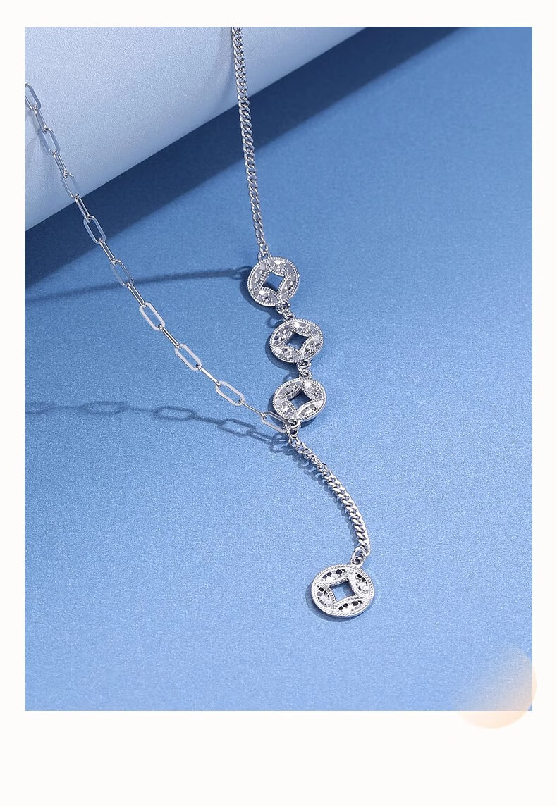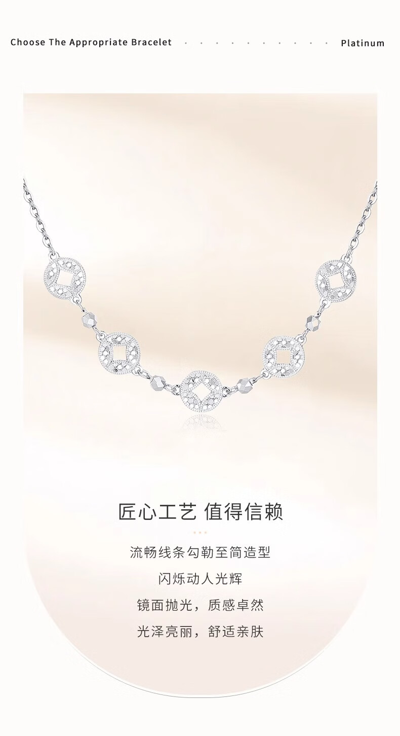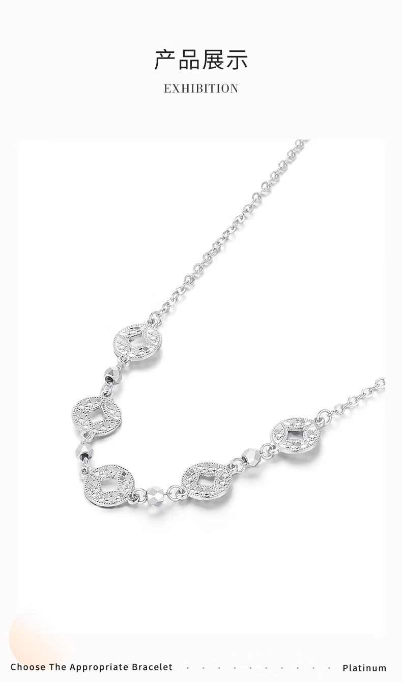 China Gold (CHINA GOLD) PT950 Platinum Crushed Ice Five Emperors Money Necklace Women's New Valentine's Day Birthday Gift Year of the Horse Animal Year Gift Platinum Five Emperors Money Necklace About 4.4g