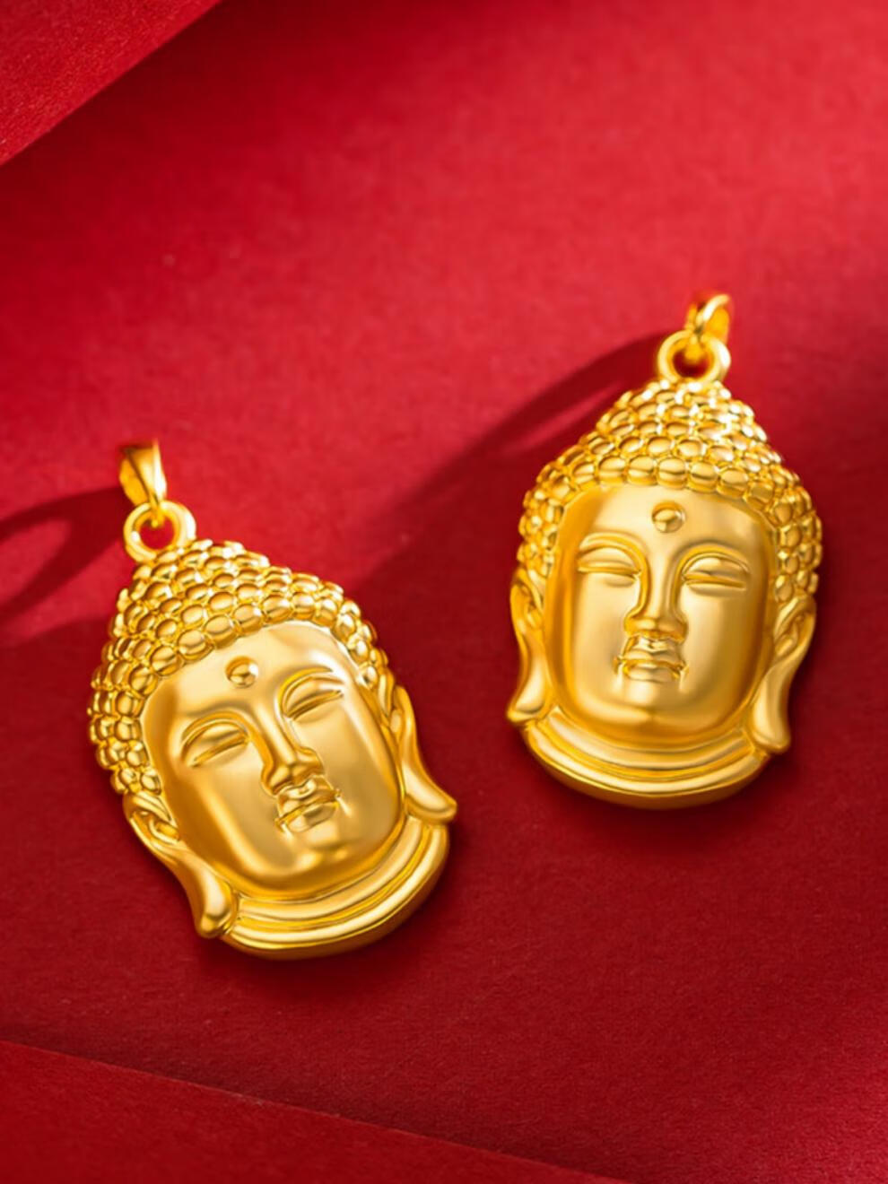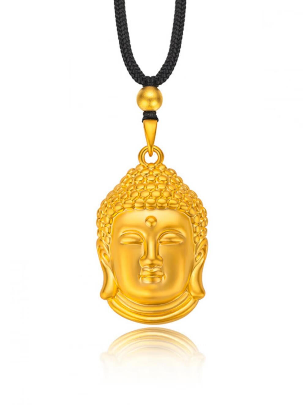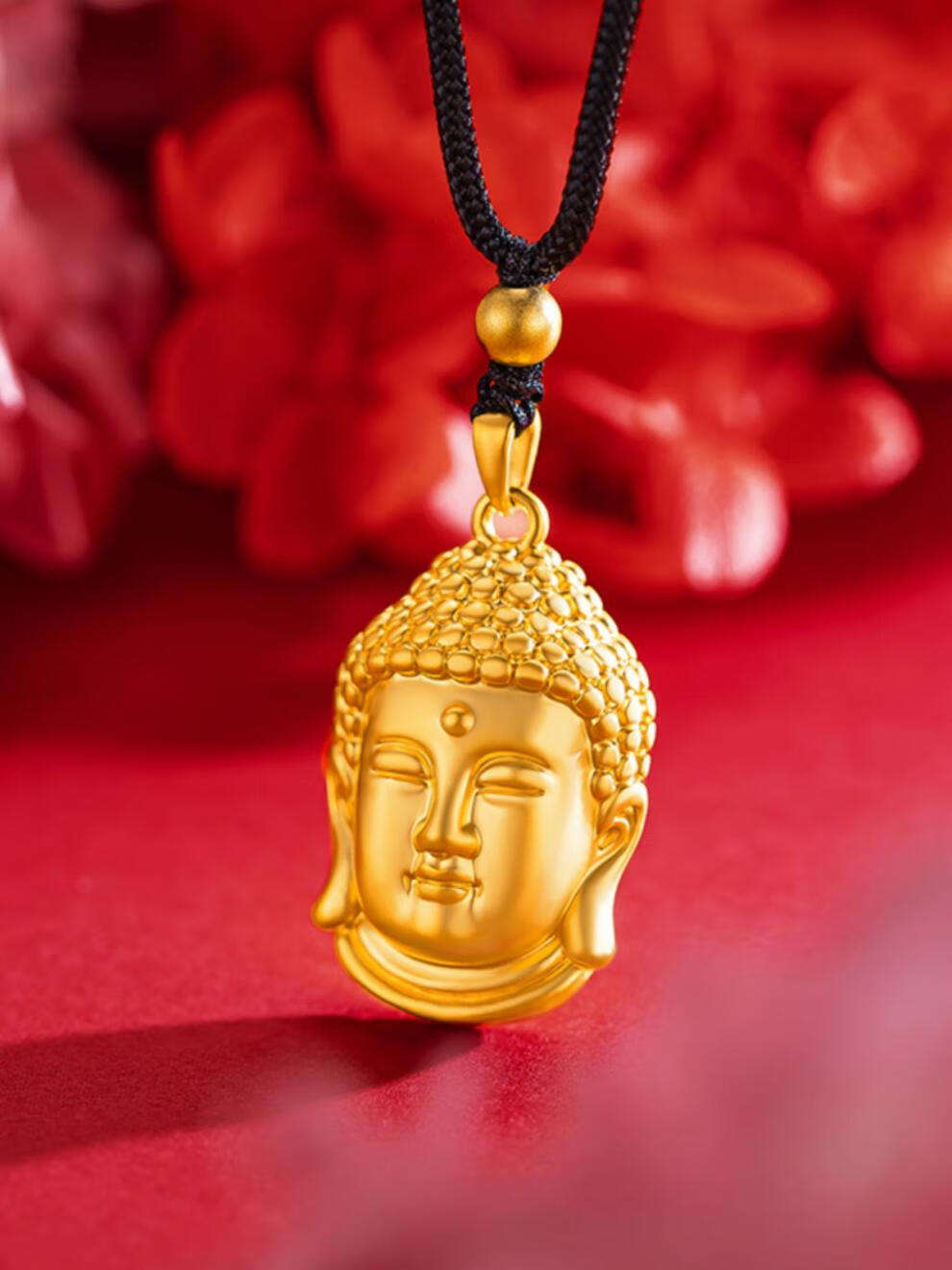 Taijufu gold-wrapped silver Buddha head pendant 9999 pure gold solid pendant native Buddha Chinese Valentine's Day gift for men and women Buddha head pendant + gold beads and black rope (gold layer thickened)