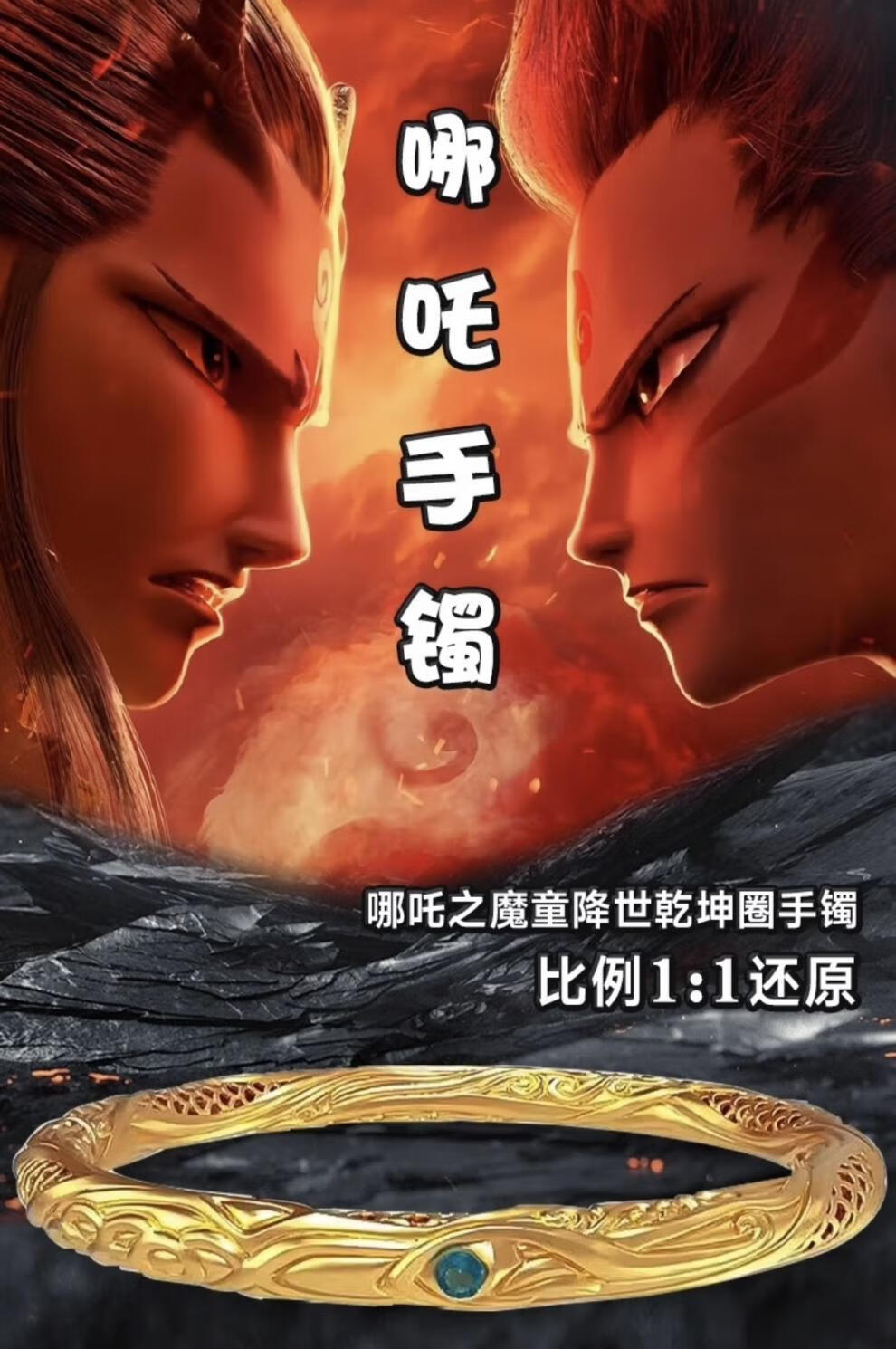 Taijufu Gold-wrapped Silver Universe Circle Bracelet Nezha Same Style Pure Gold Qianxi Couple Gift Universe Circle Size 54 (Thick Gold Layer)