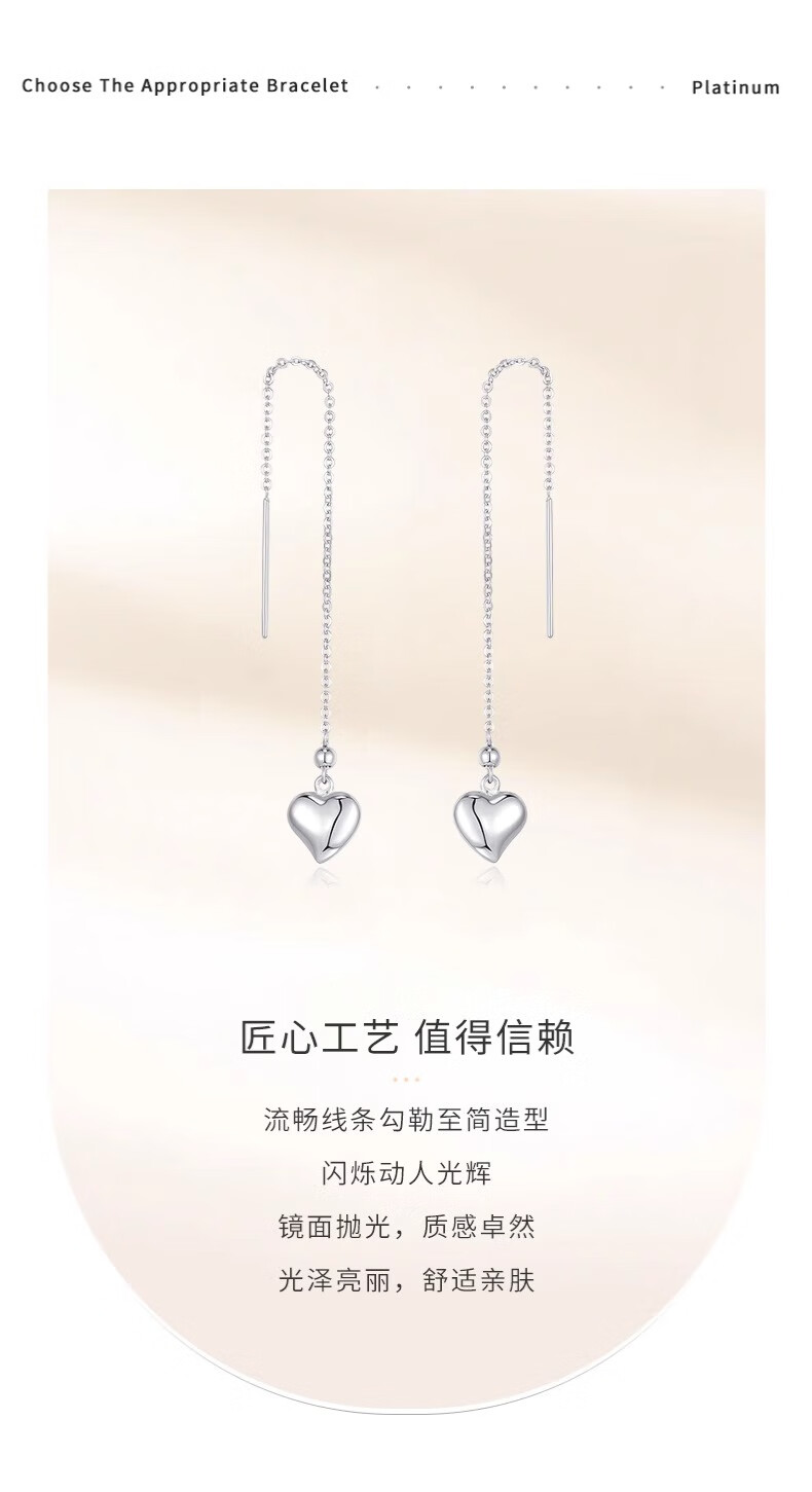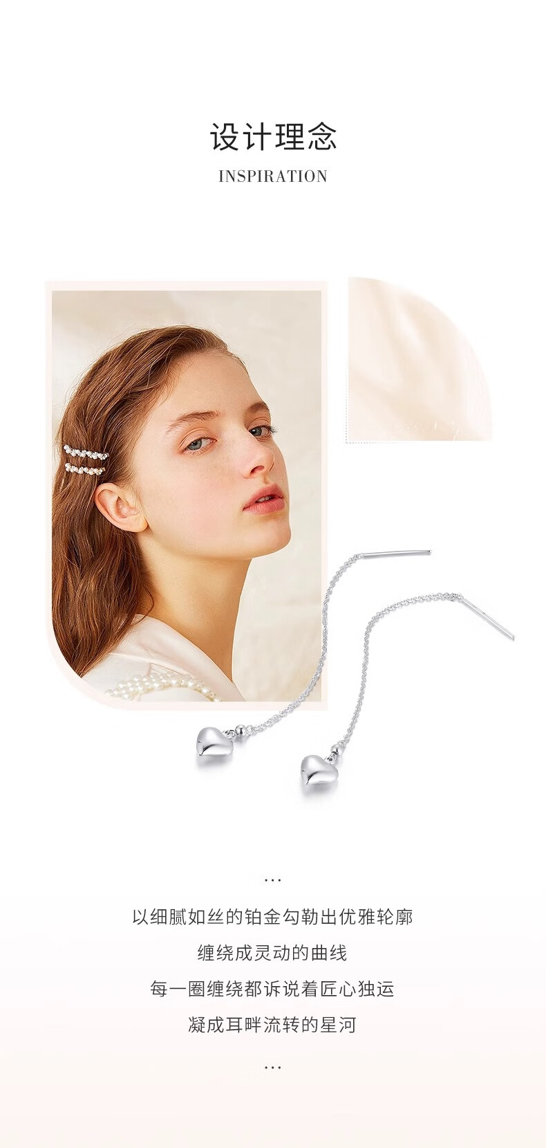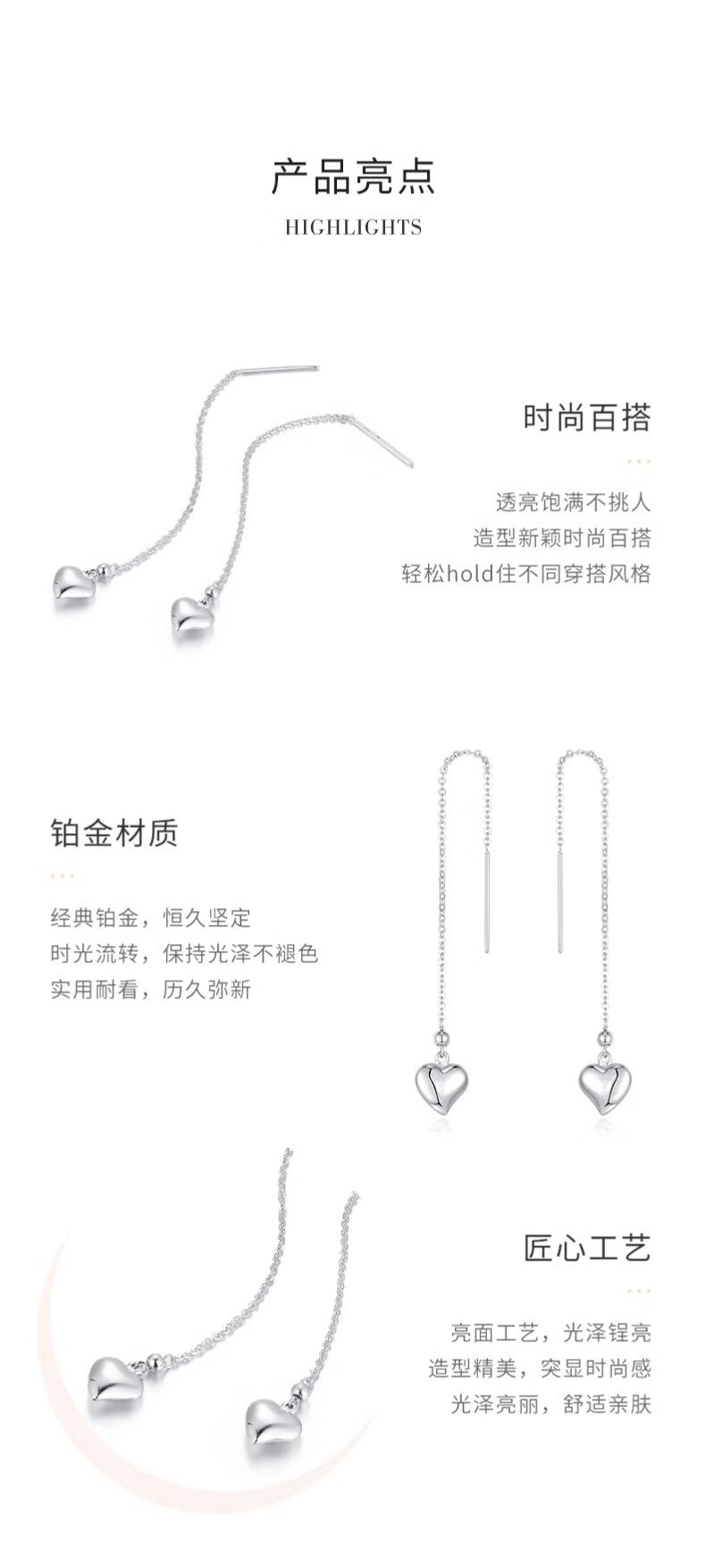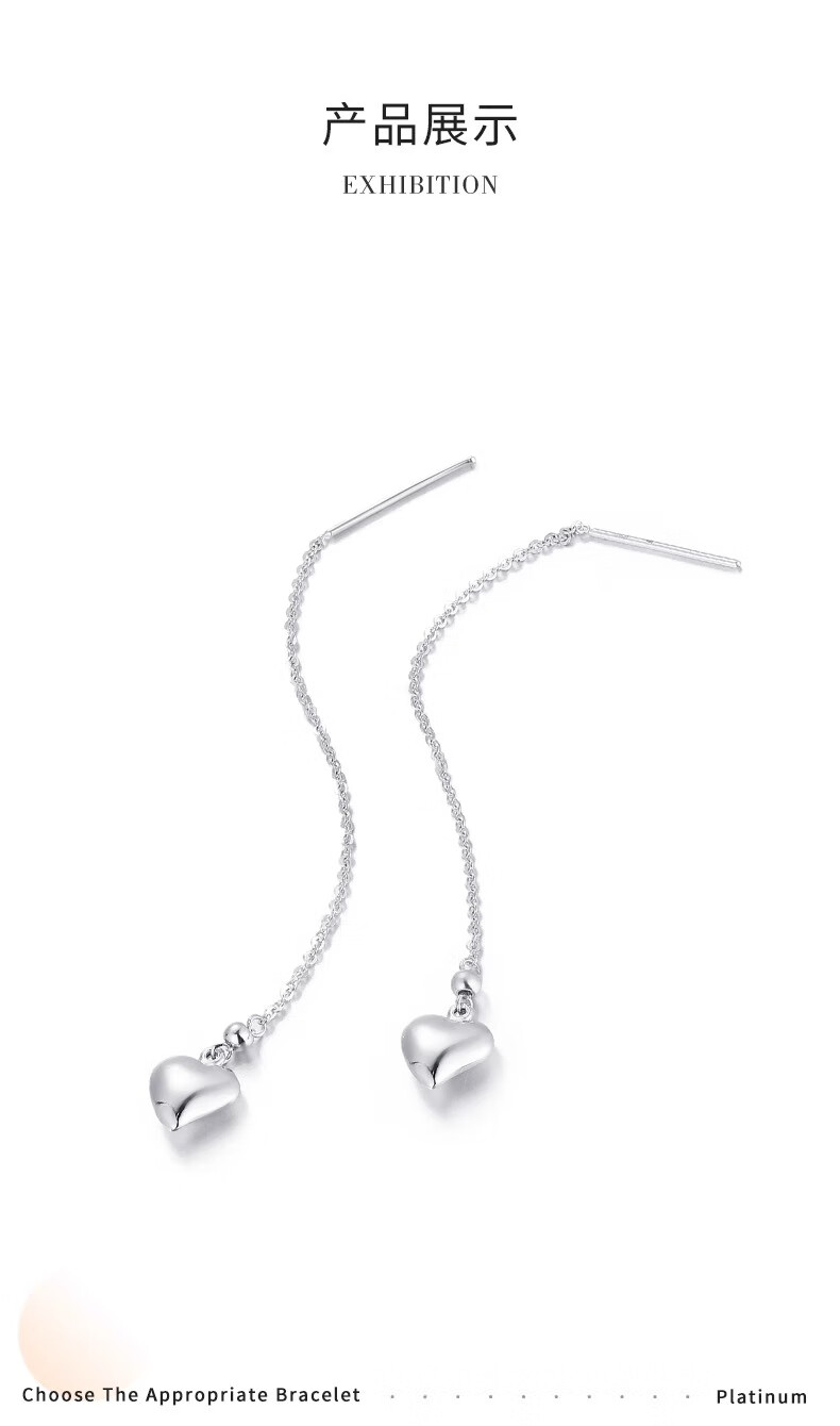 CHINA GOLD PT950 Platinum Love Ear Wire Women's High-end Light Luxury Niche Unique Earrings Birthday Gift for Girlfriend PT950 Love Ear Wire Pair Approximately 2.4g