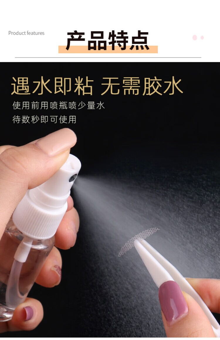 Double eyelid stickers that stick to water, women's waterproof lace seamless mesh grid invisible natural mesh water spray eye-drop type half-moon type # Comes with spray bottle, fork and tweezers 700 stickers