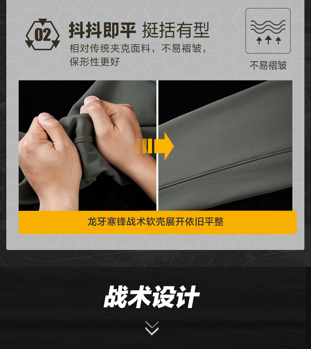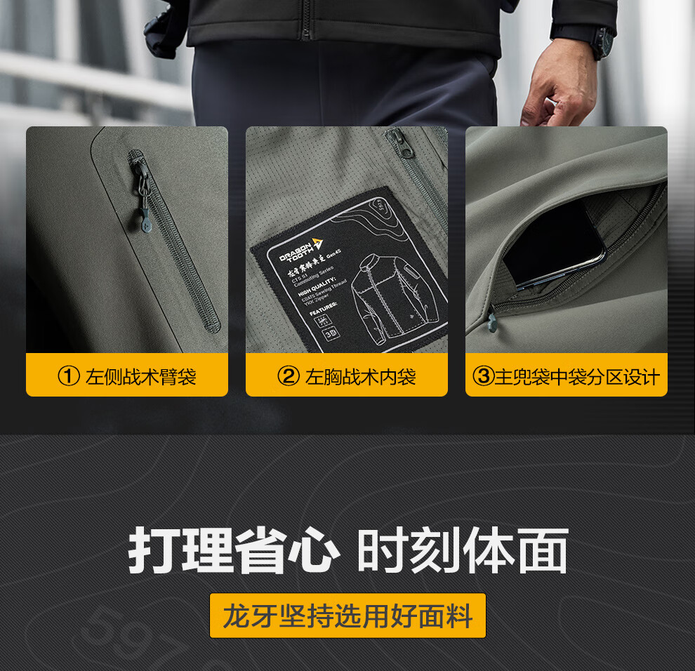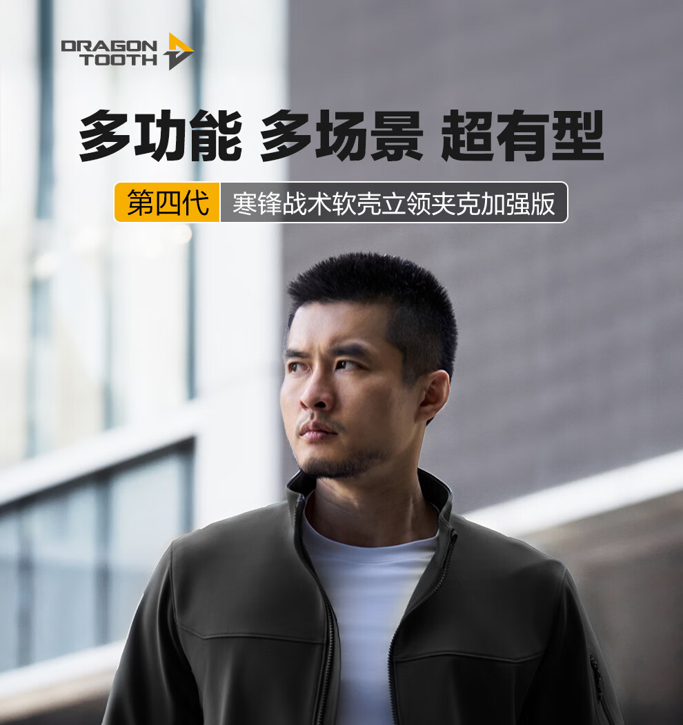Dragon Tooth Fourth Generation Dragon Tooth Cold Front Tactical Soft Shell Jacket Enhanced Stand Collar Outdoor Leisure Sports Functional Jacket Men's Extreme Night Black 2XL 180/100A Weight 146-174Jin Jin is equal to 0.5 kg