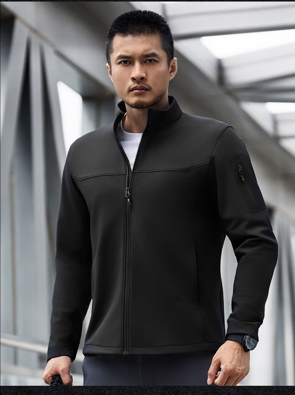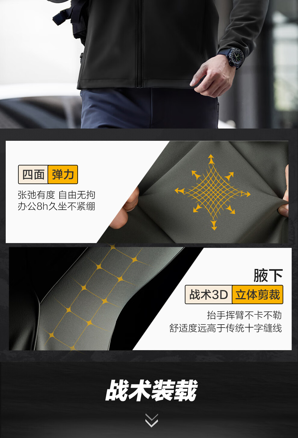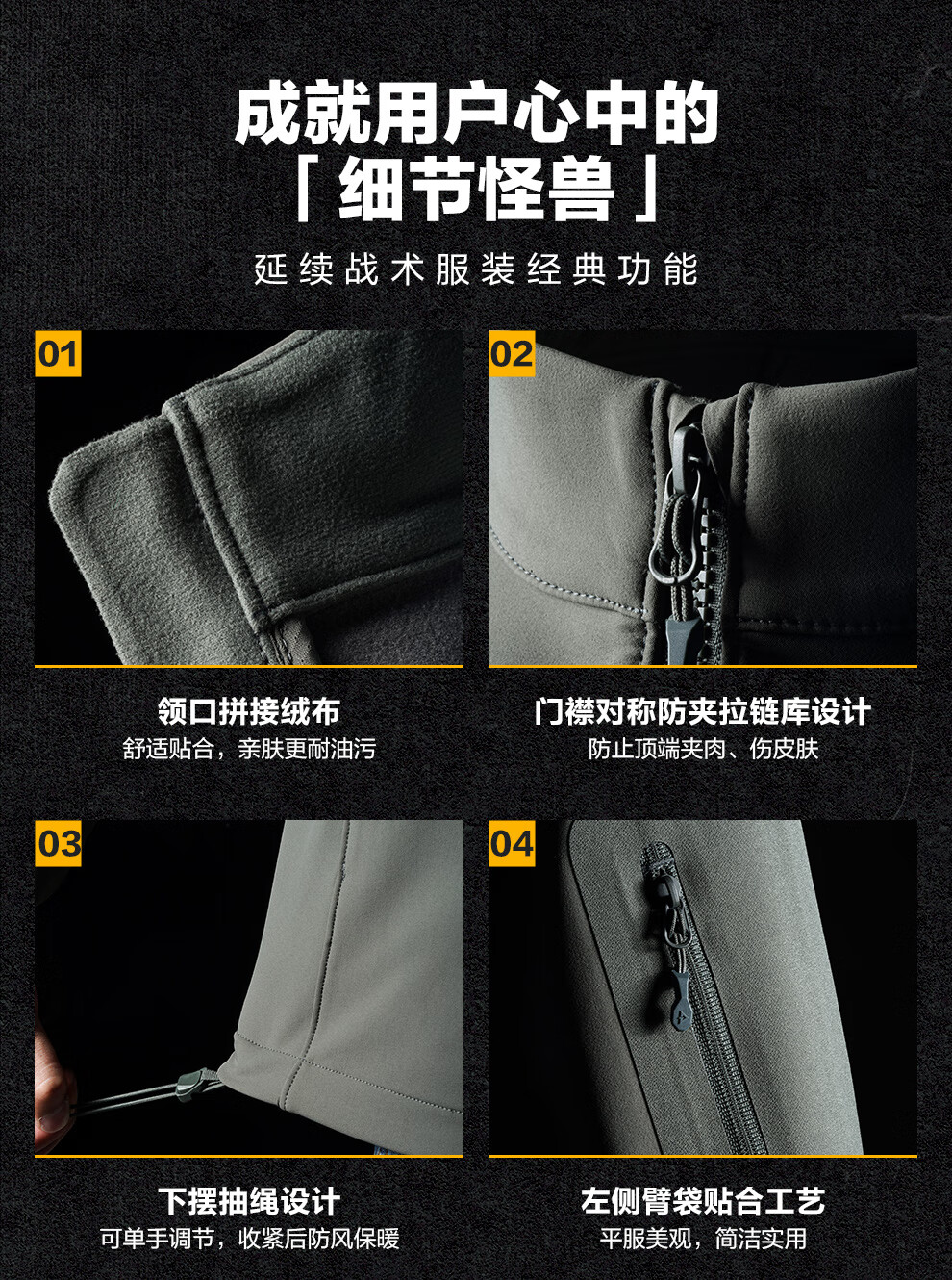Dragon Tooth Fourth Generation Dragon Tooth Cold Front Tactical Soft Shell Jacket Enhanced Stand Collar Outdoor Leisure Sports Functional Jacket Men's Extreme Night Black 2XL 180/100A Weight 146-174Jin Jin is equal to 0.5 kg