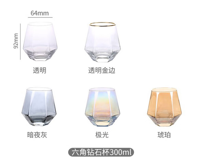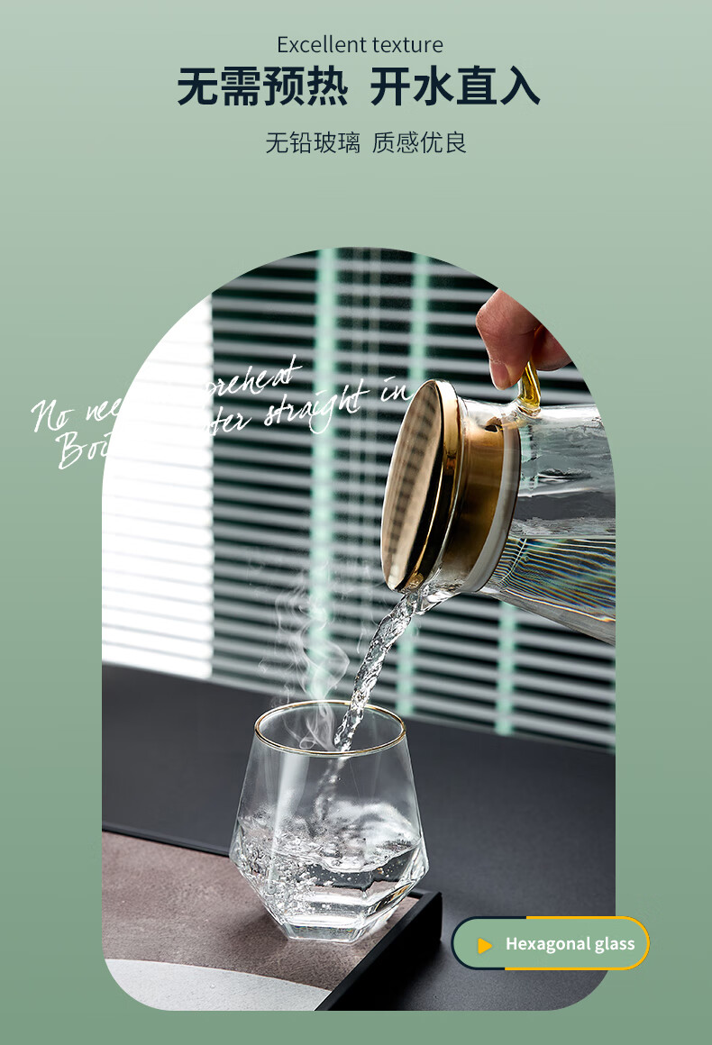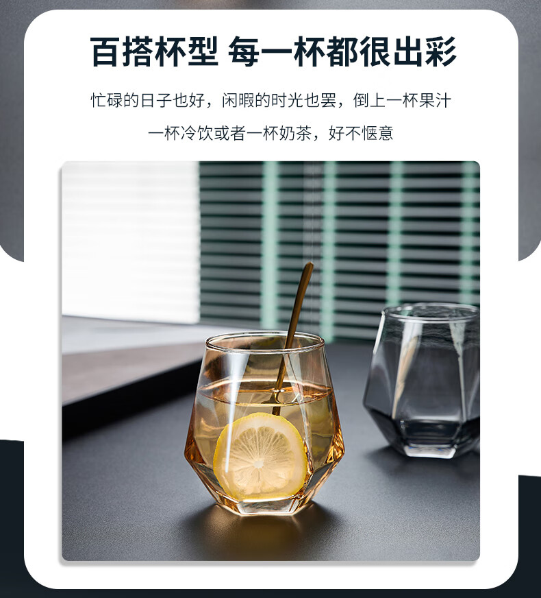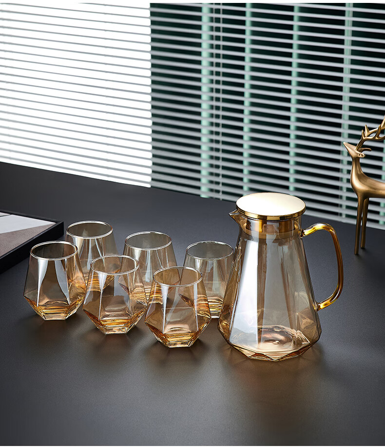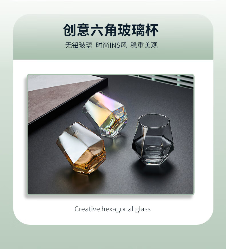 Sensitive glass cup ins style home simple living room drinking water creative internet celebrity beer mug tea cup set transparent hexagonal cup 6 pieces + transparent diamond pot + simple