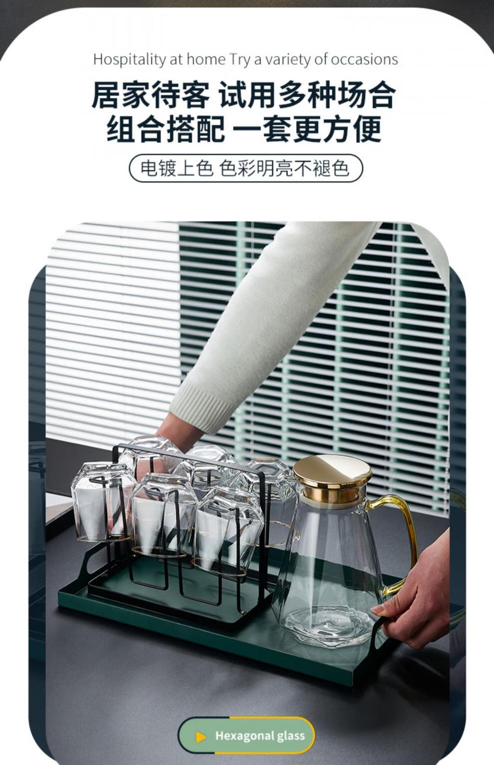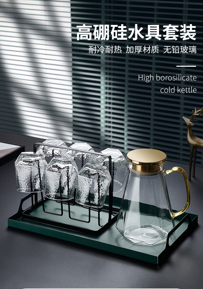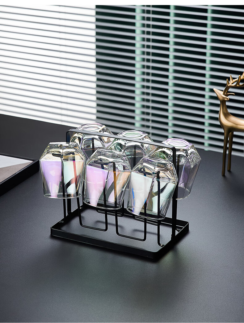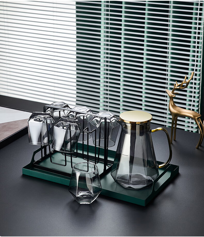 Sensitive glass cup ins style home simple living room drinking water creative internet celebrity beer mug tea cup set transparent hexagonal cup 6 pieces + transparent diamond pot + simple