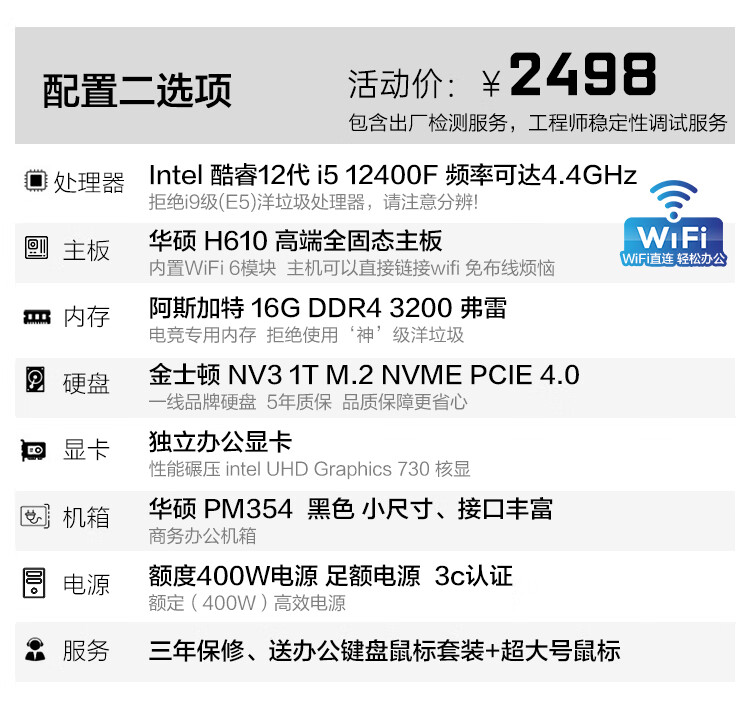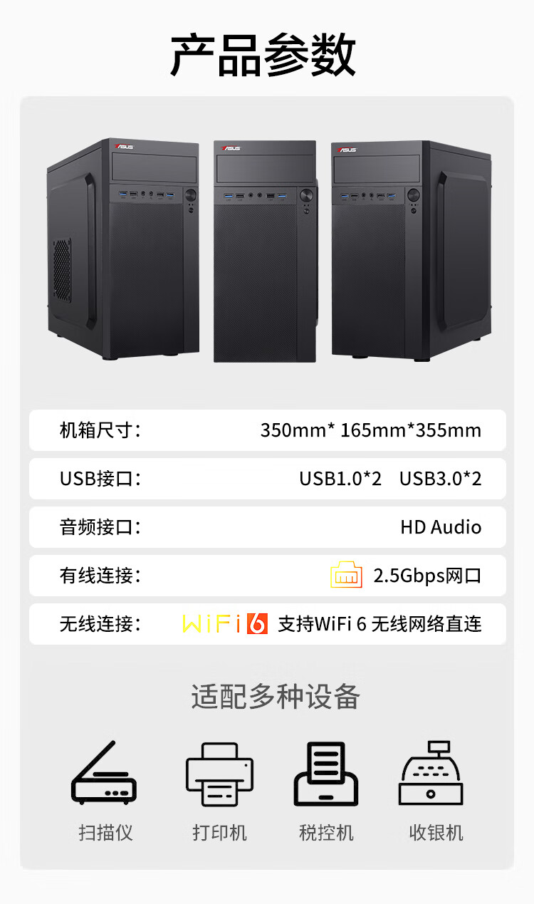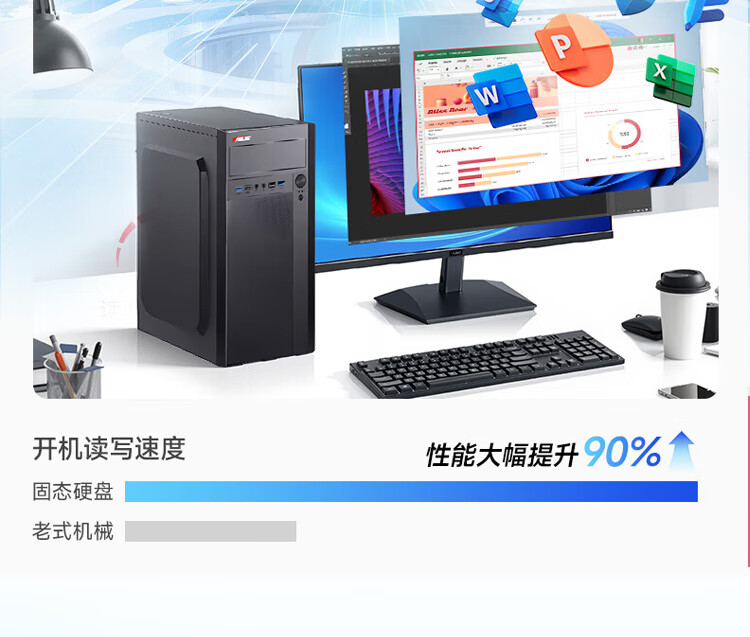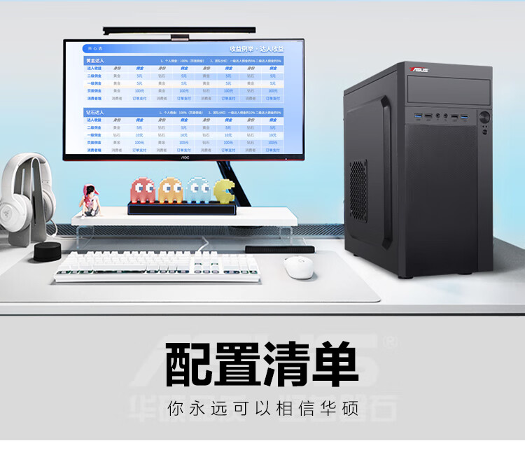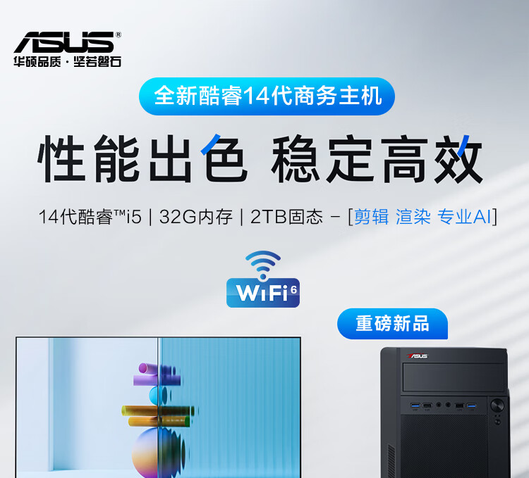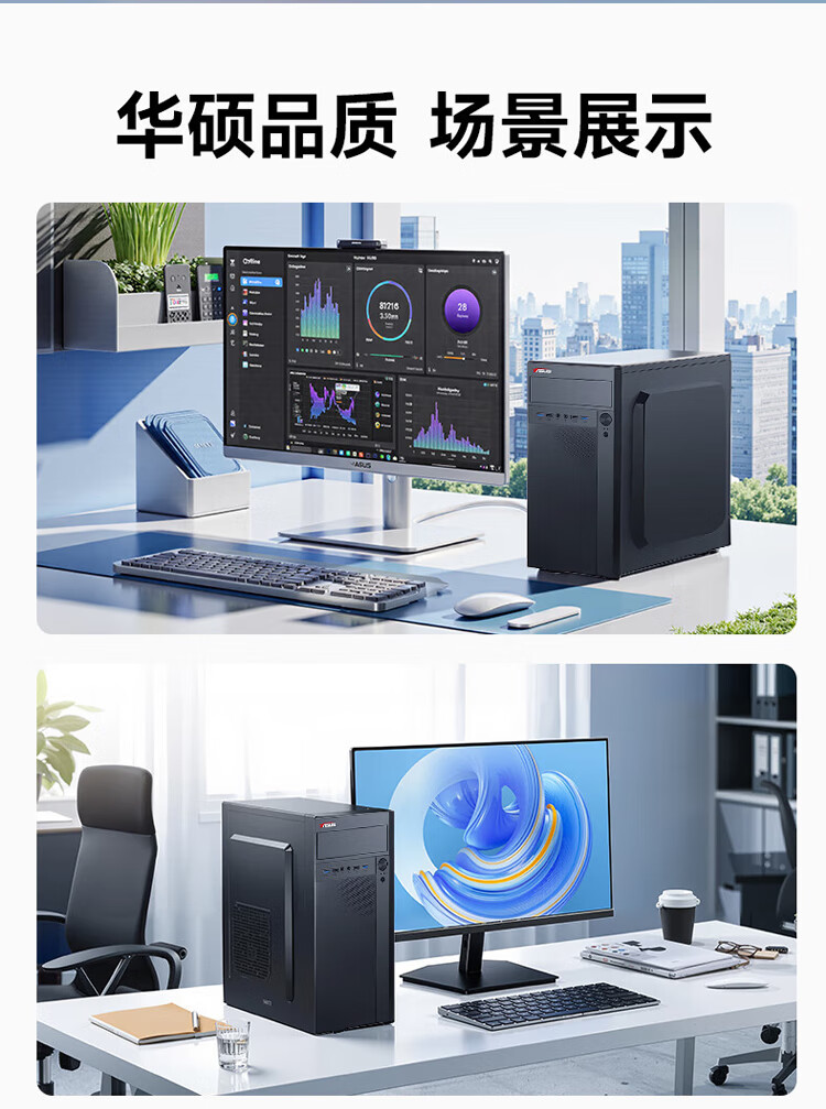 ASUS assembled computer host, Intel 14th generation i3/i5 desktop complete set, commercial enterprise office, design, graphics editor, live broadcast home, entertainment independent display DIY complete machine + 24-inch monitor, free keyboard and mouse + extra large mouse pad, with three 13th generation i5 32G 1T solid state WIFi independent display