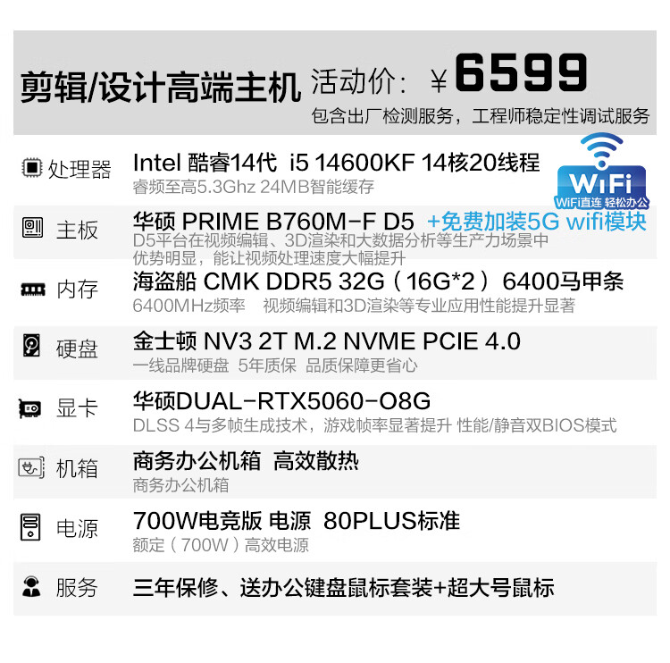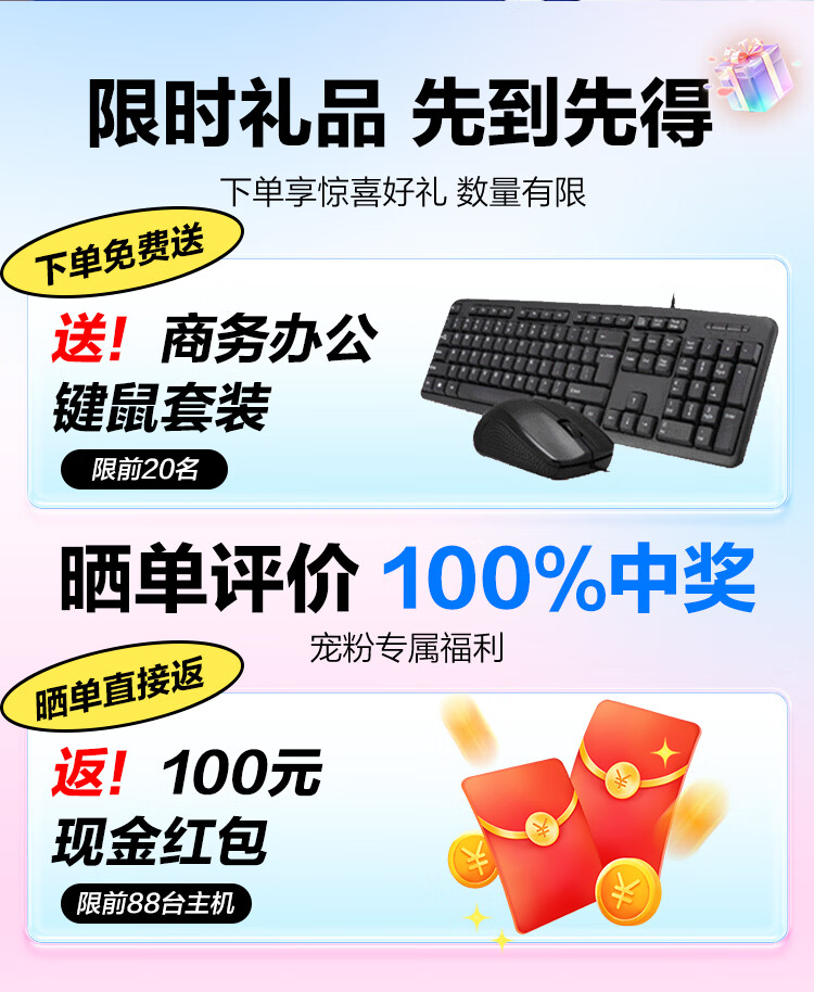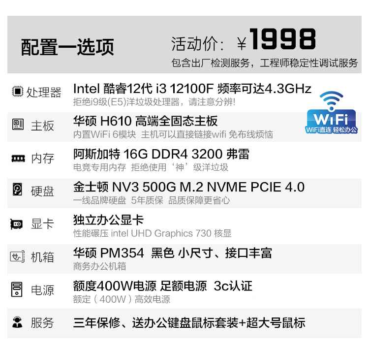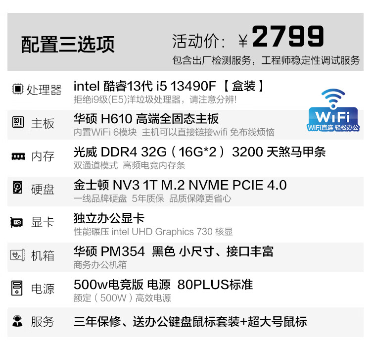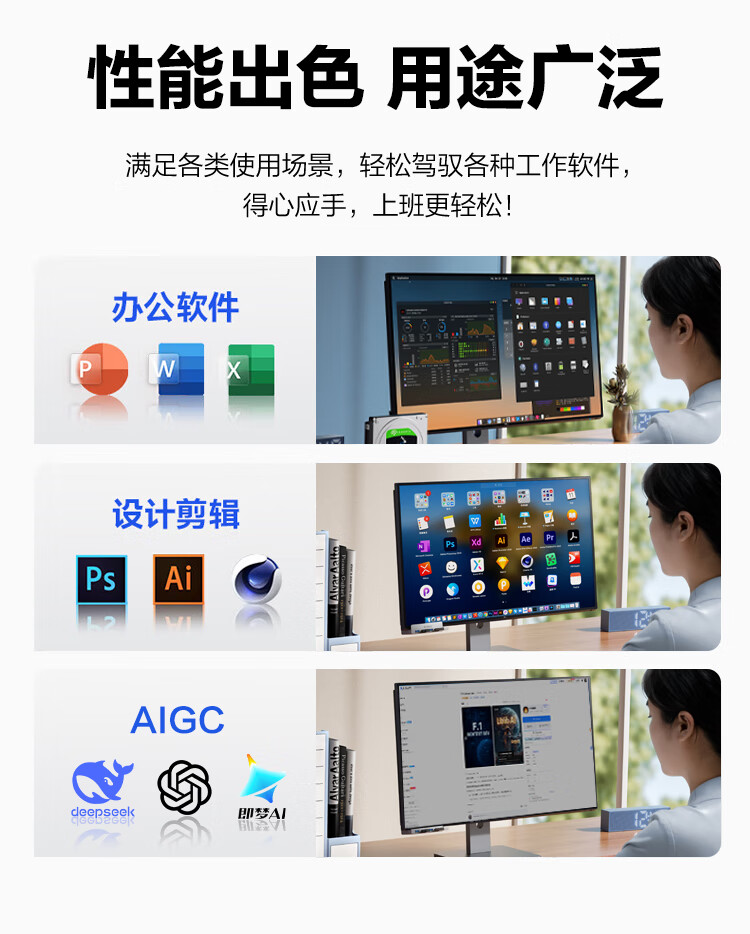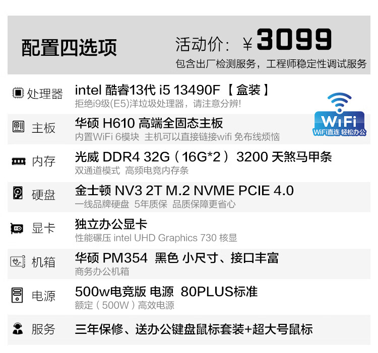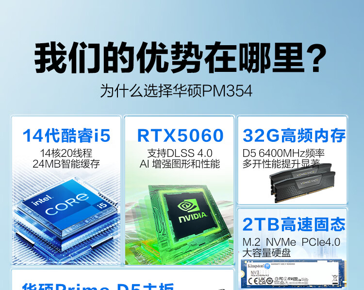 ASUS assembled computer host, Intel 14th generation i3/i5 desktop complete set, commercial enterprise office, design, graphics editor, live broadcast home, entertainment independent display DIY complete machine + 24-inch monitor, free keyboard and mouse + extra large mouse pad, with three 13th generation i5 32G 1T solid state WIFi independent display