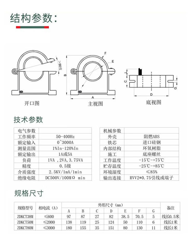 Current mutual inductance transmitter open-type device KCT38 three-phase electricity meter high-precision micro-small AC snap-on device DRKCT-80 800/5A