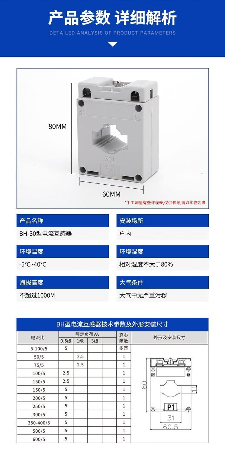 Current mutual inductance transmitter AC BH-0.66-0.5 level III type three-phase square 150/300/500/5A high precision BH-0.66 aperture 120 type III 4000/5A