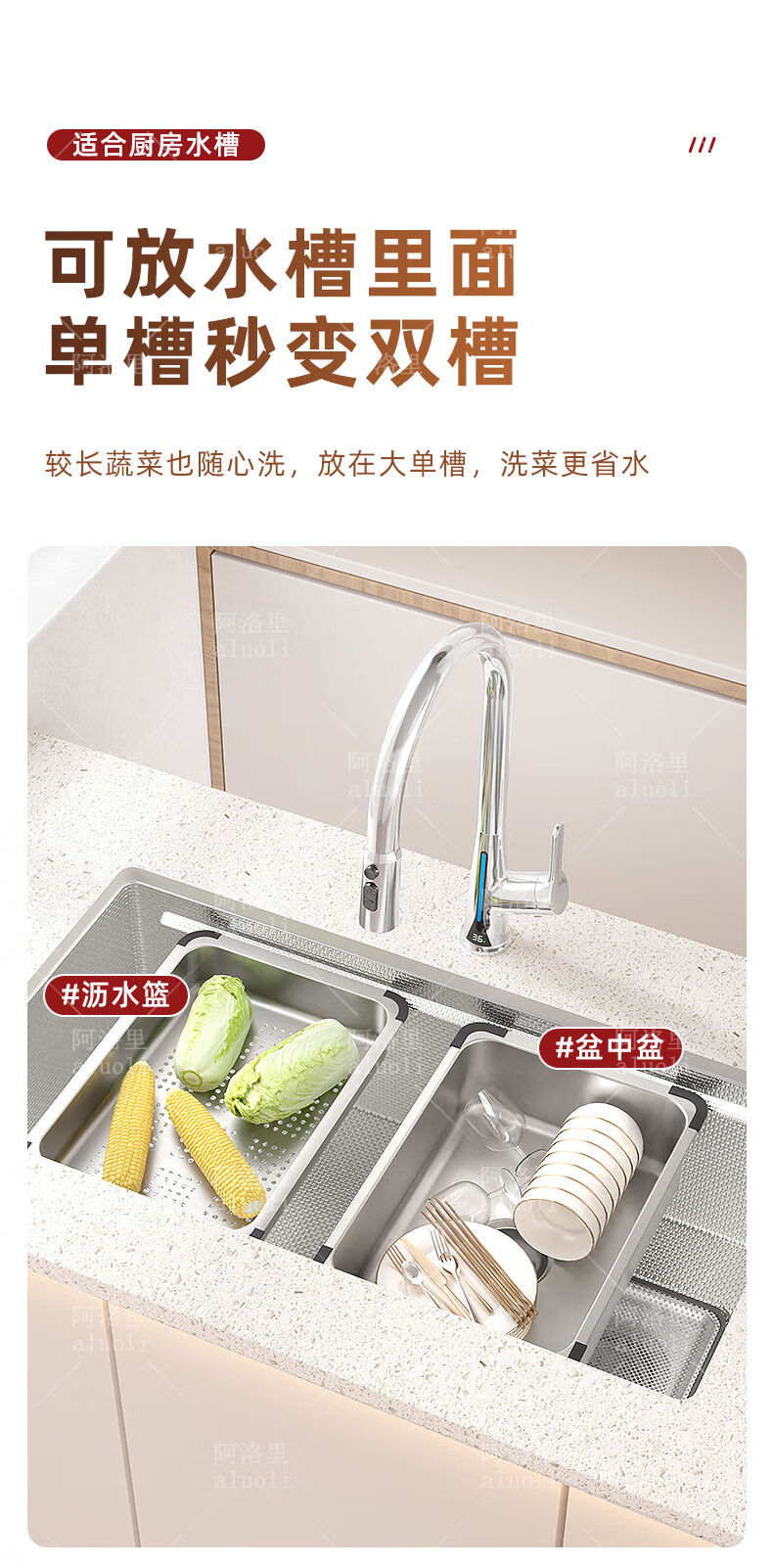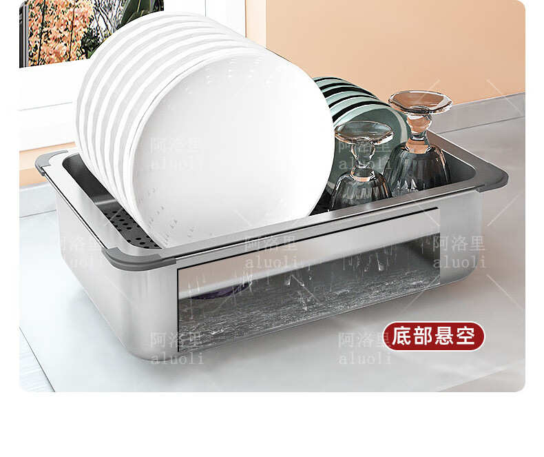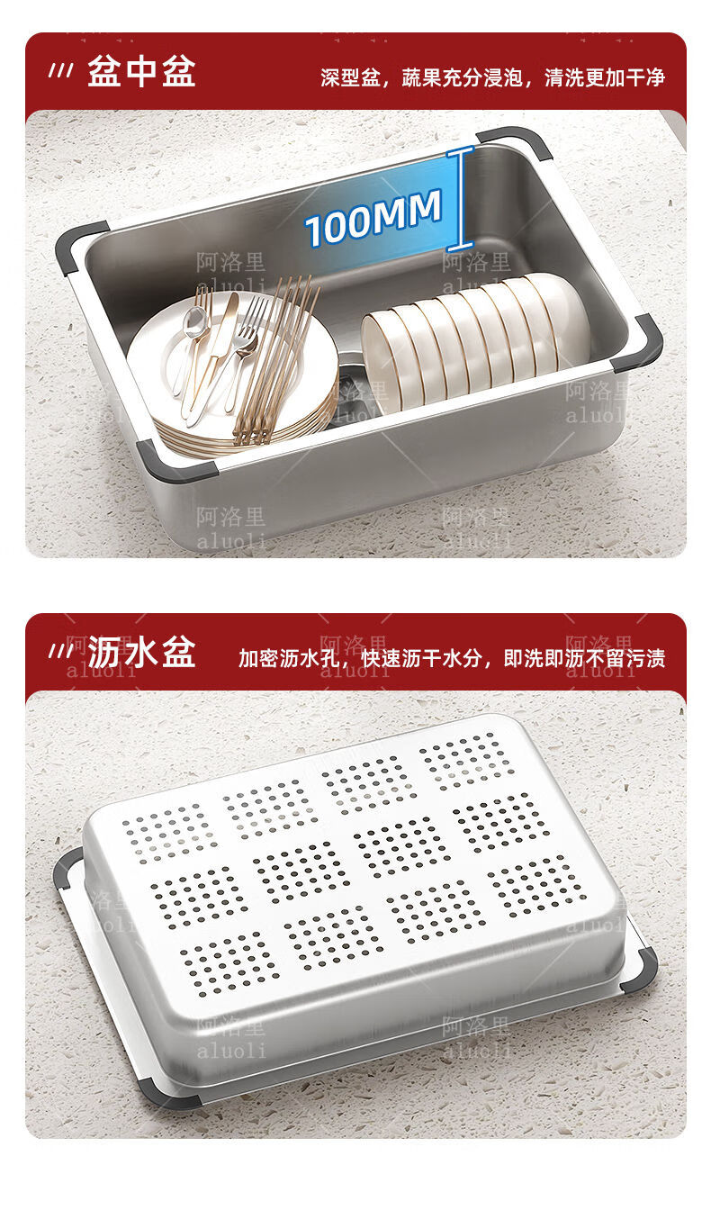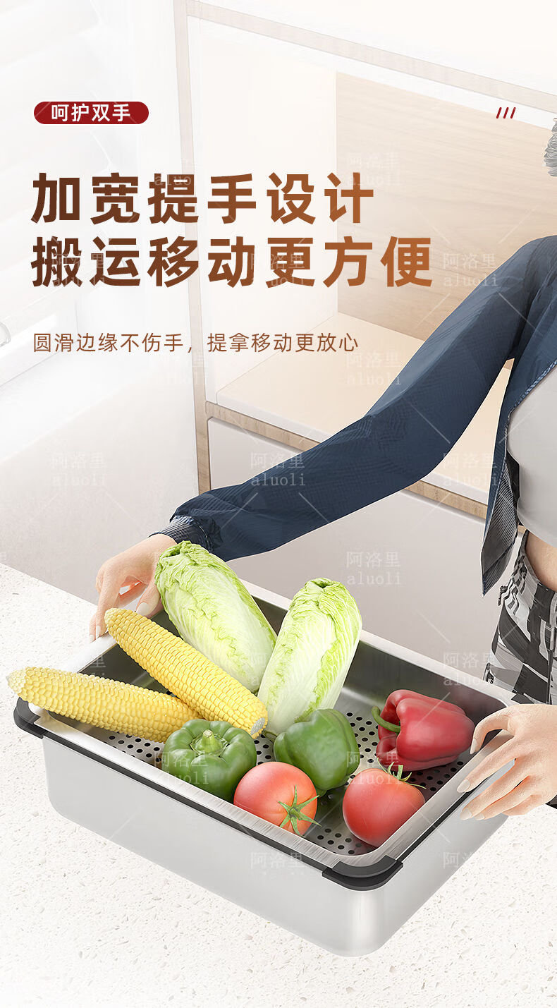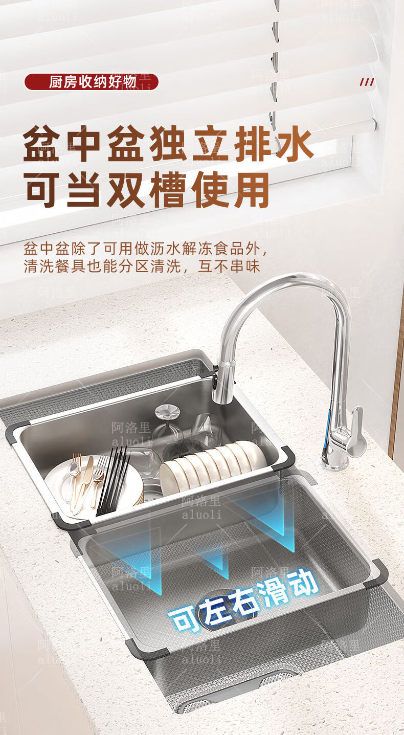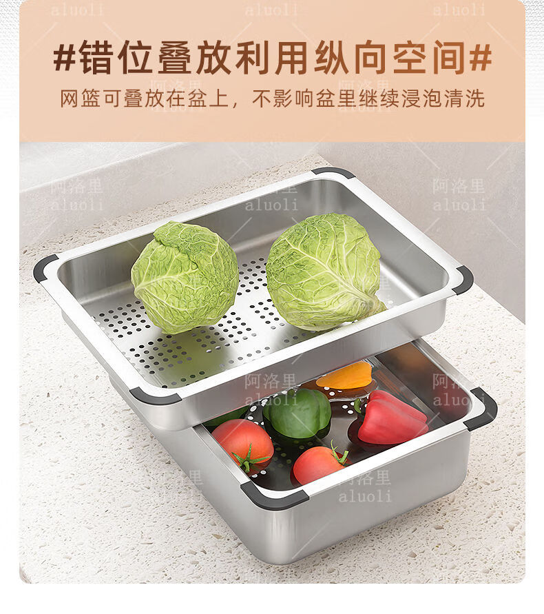 MOZHOU German quality stainless steel multifunctional double-layer drain basket new kitchen sink dishwasher basin dish strainer stainless steel brushed basin middle basin + drain cover outer_6
