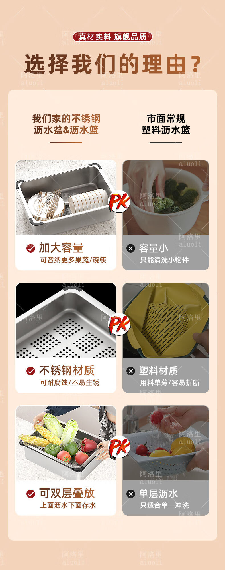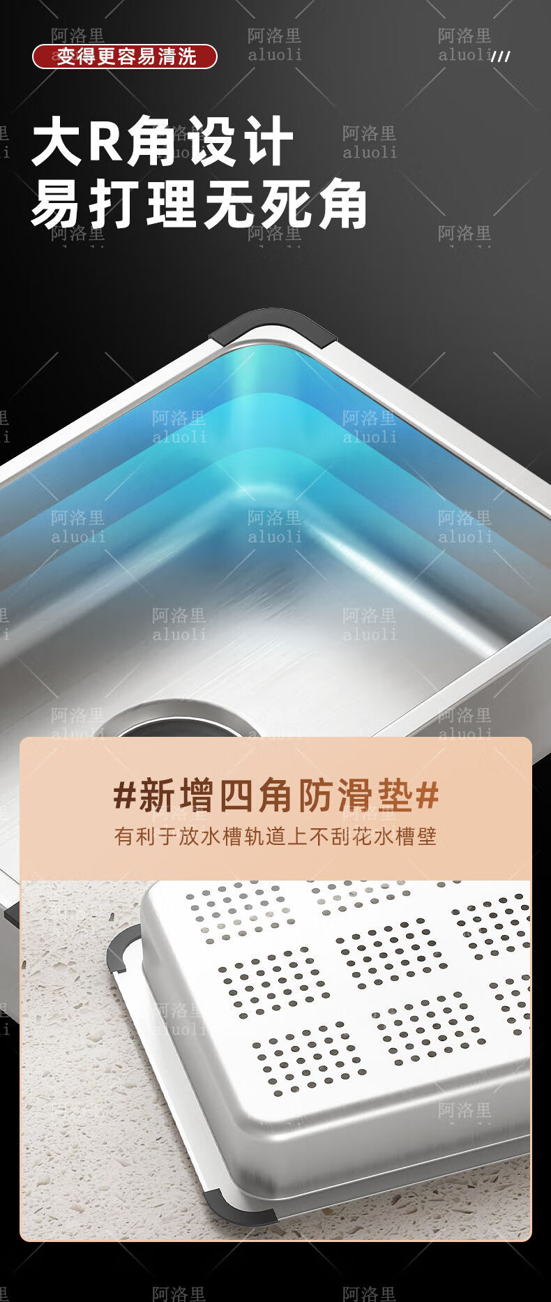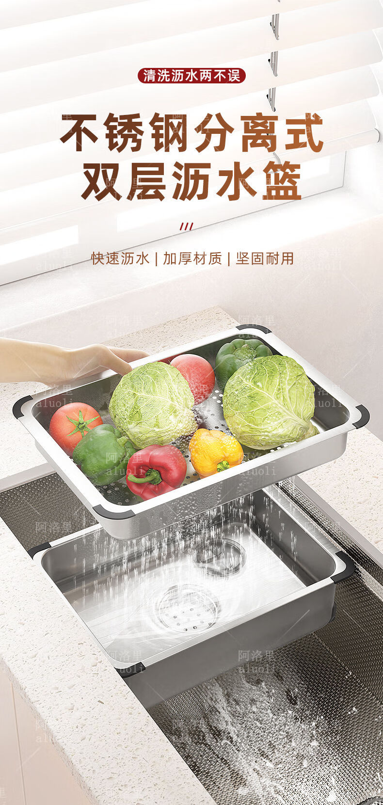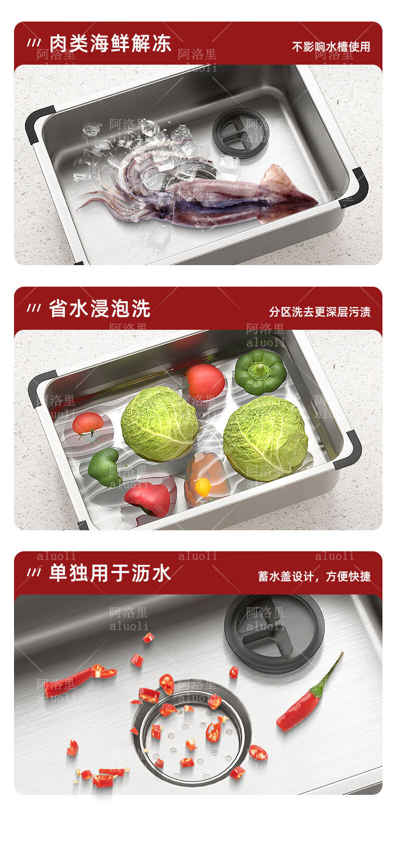 MOZHOU German quality stainless steel multifunctional double-layer drain basket new kitchen sink dishwasher basin dish strainer stainless steel brushed basin middle basin + drain cover outer_6