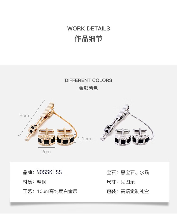 NOSSKISS original imported cufflinks for men, light luxury custom fashion French shirt sleeve nails, advanced birthday gift box, silver cufflinks