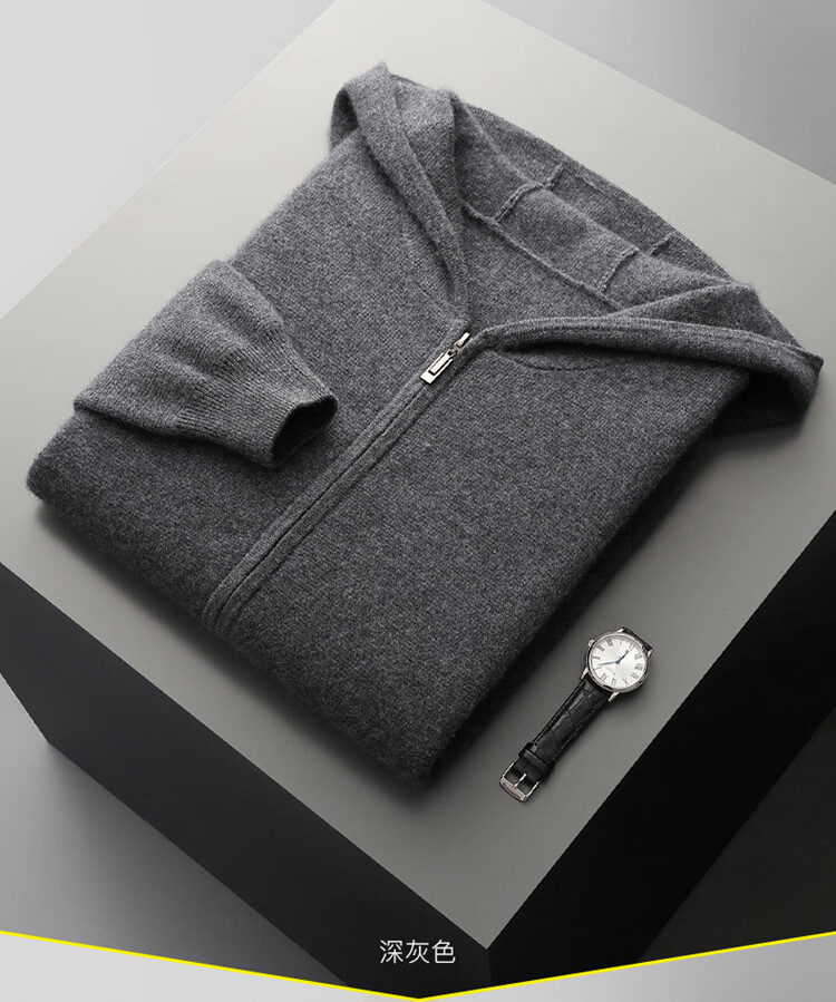 Hengyuanxiang high-end autumn and winter woolen sweater men's hooded cardigan sweatshirt thickened woolen sweater men's jacket men's top beige hooded cardigan thickened S 95-120Jin Jin equals 0.5kg Add to favorites to buy clothes drying blue