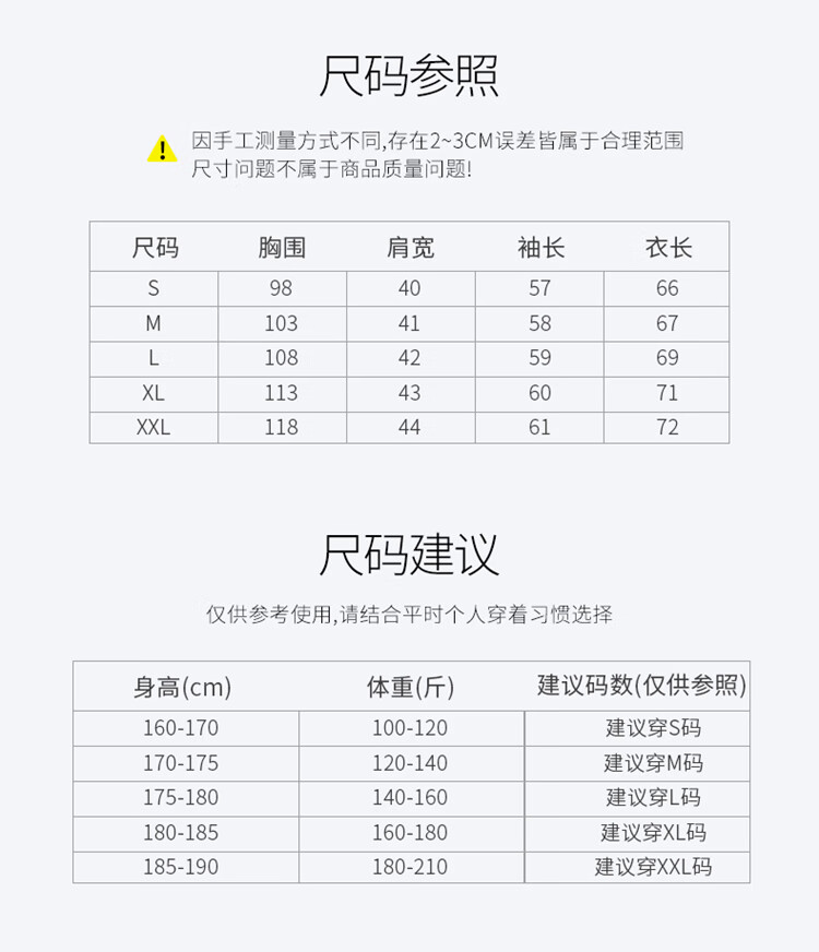 China (cm) 165 / 88-90 170 / 96-98 175 / 108-110 180 / 118-122 185 / 126-130