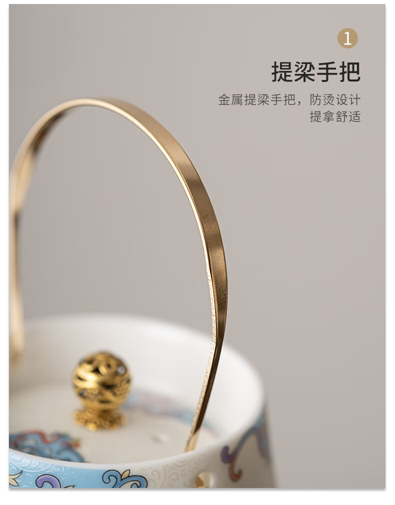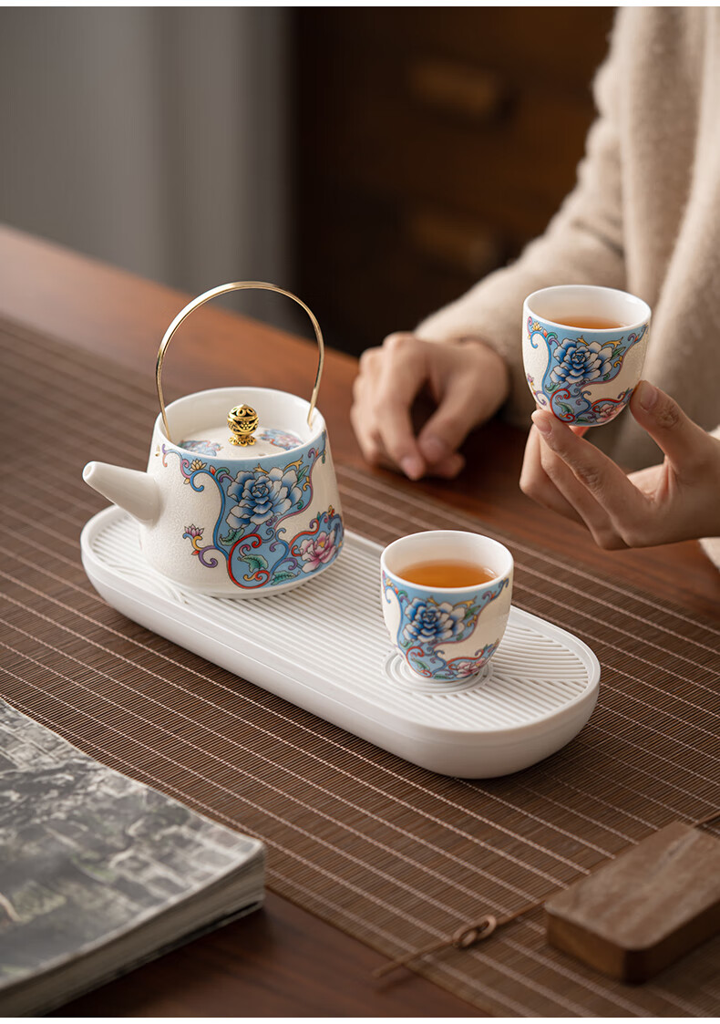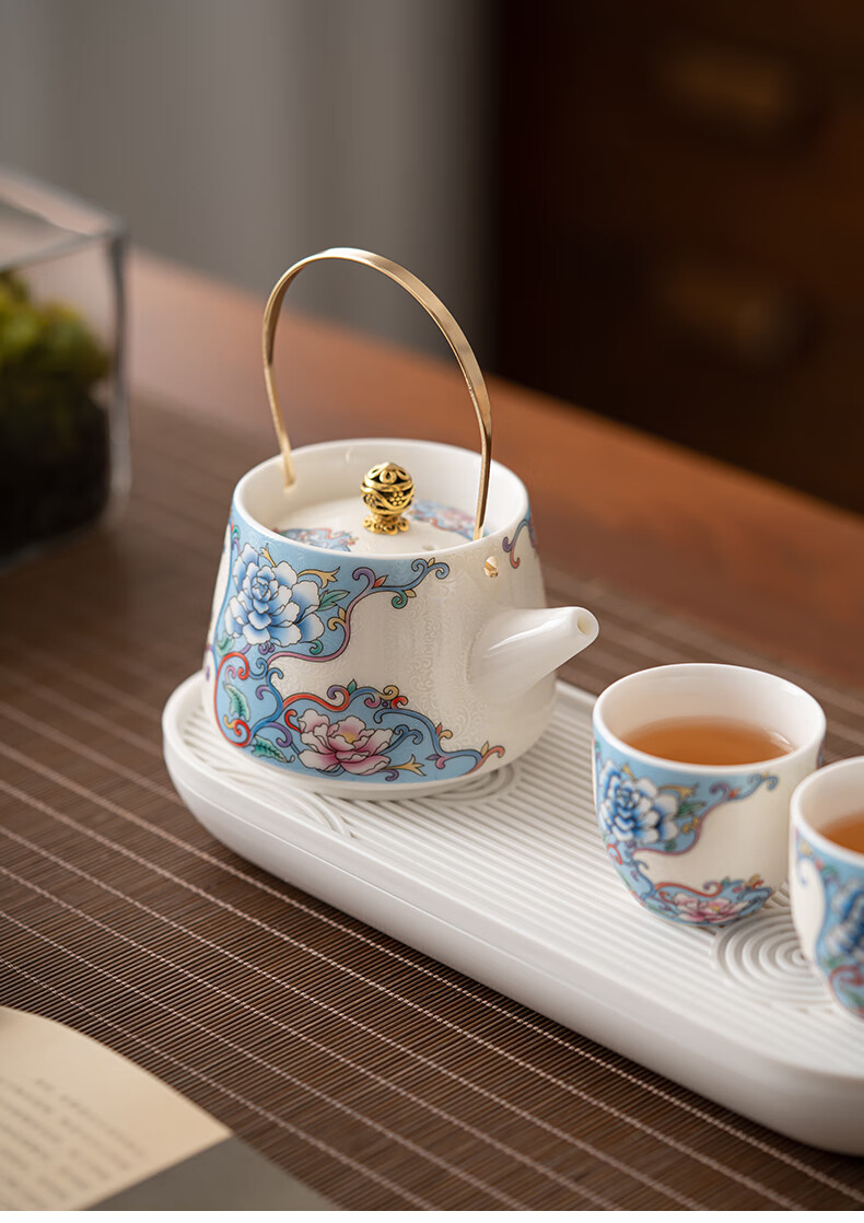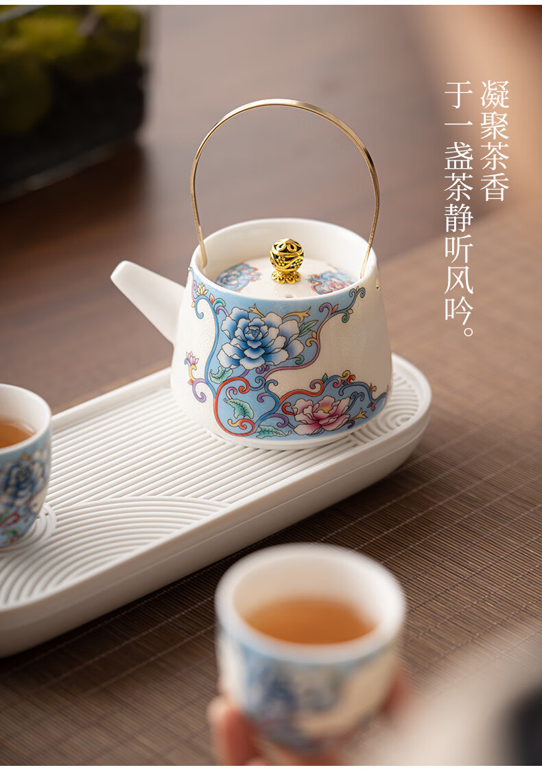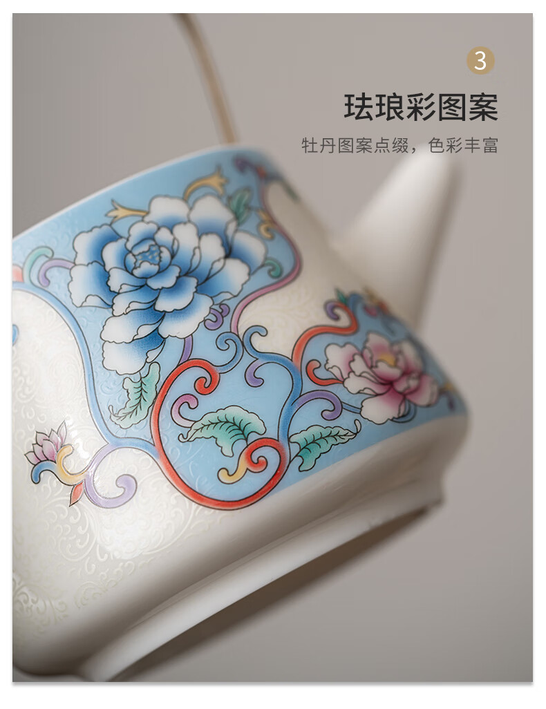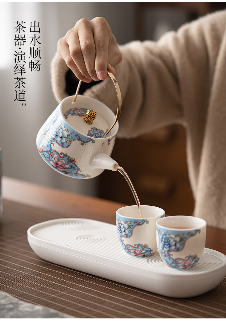 Pupan three-piece tea making set enamel colored filigree silver household tea set household one pot two cups dry tea tray small filigree silver peony - handle teapot small set one pot two