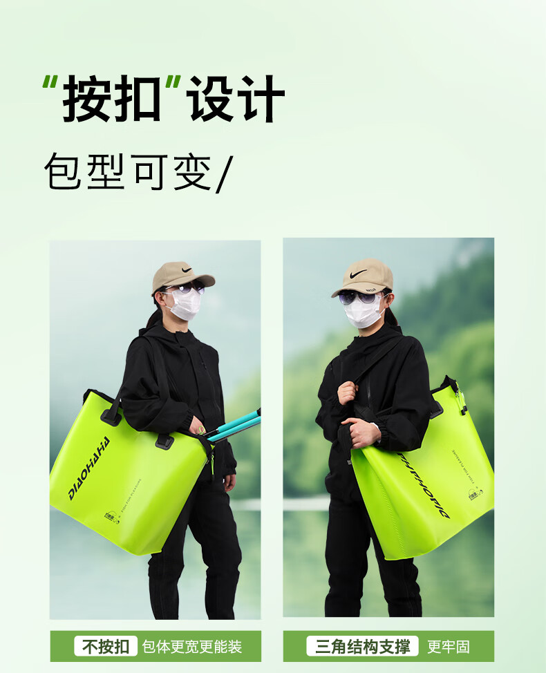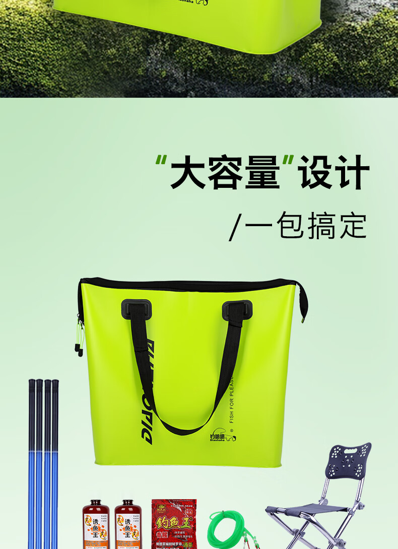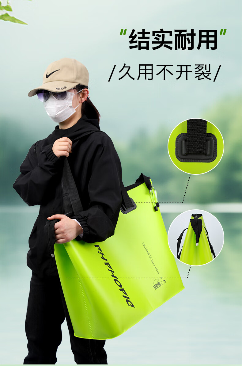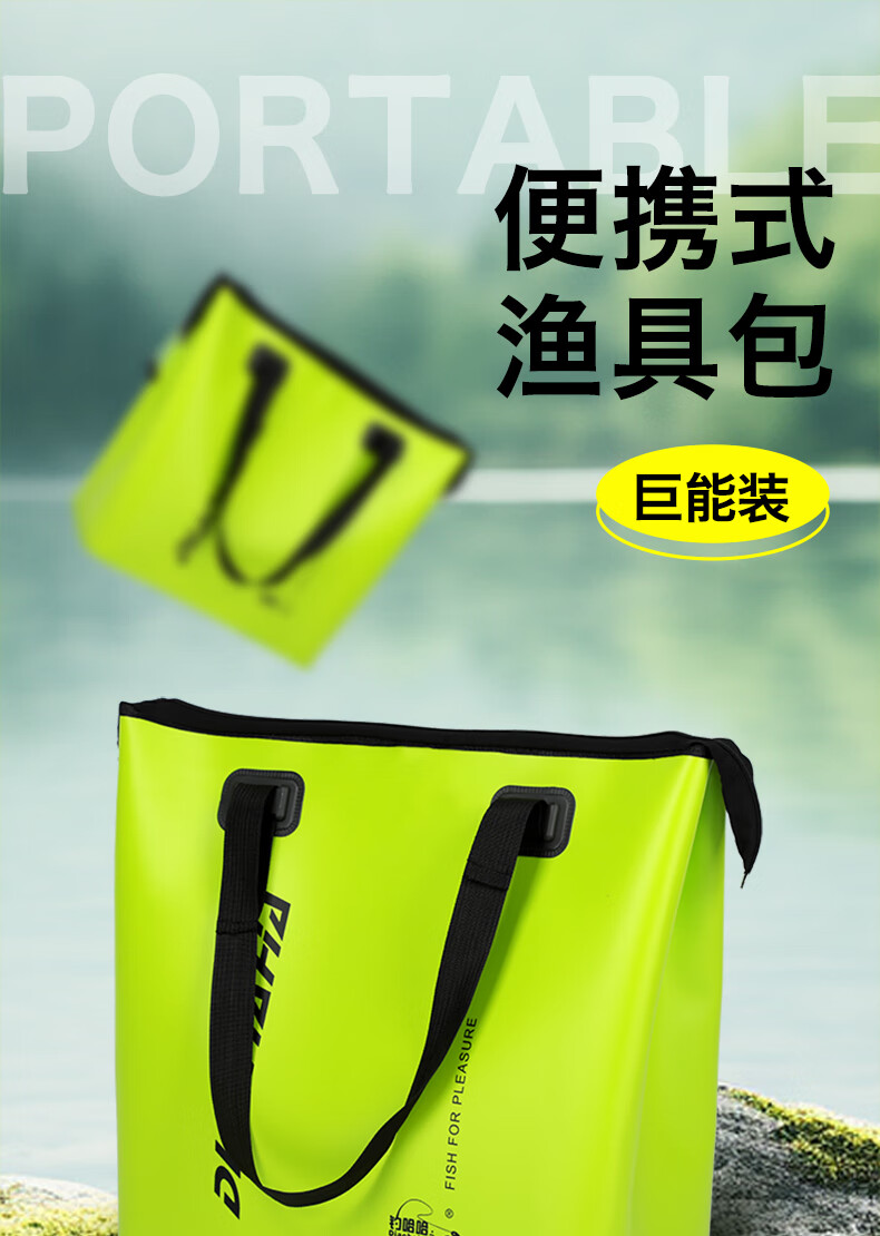 Portable fishing gear bag fish protective bag extra large capacity fishing gear storage waterproof fishing bag portable fishing gear bag fluorescent green