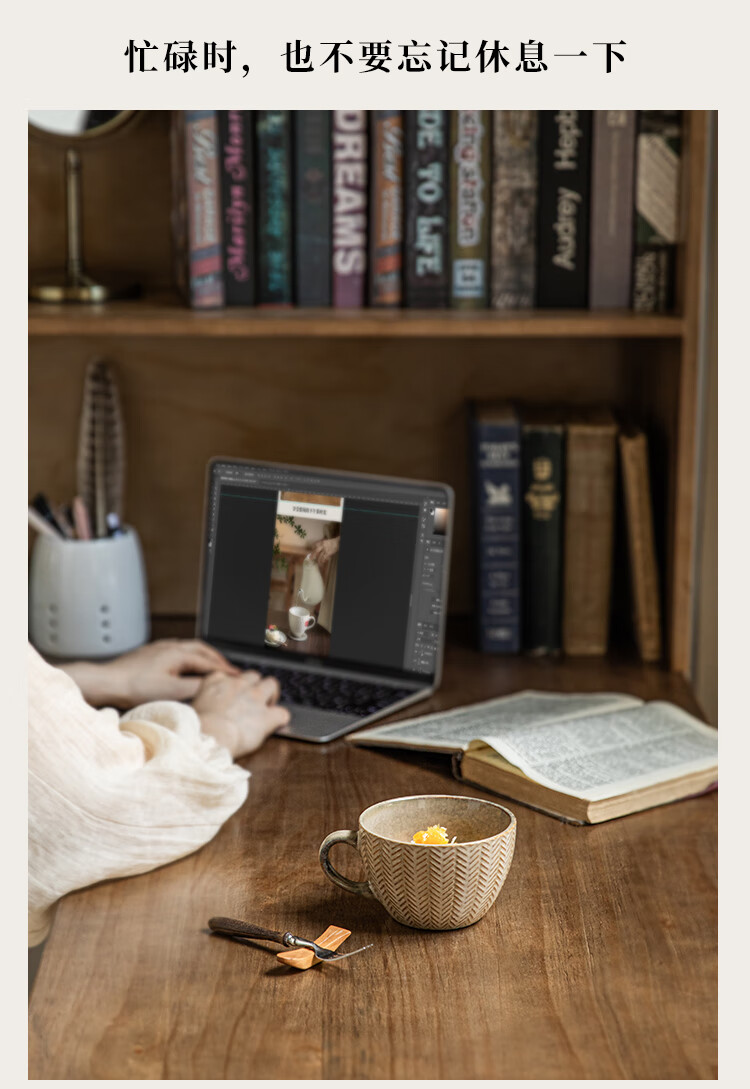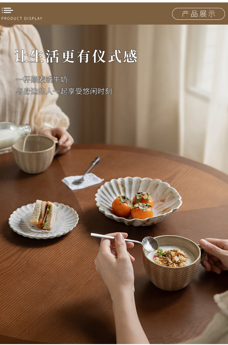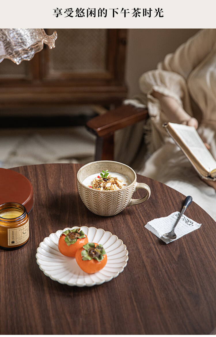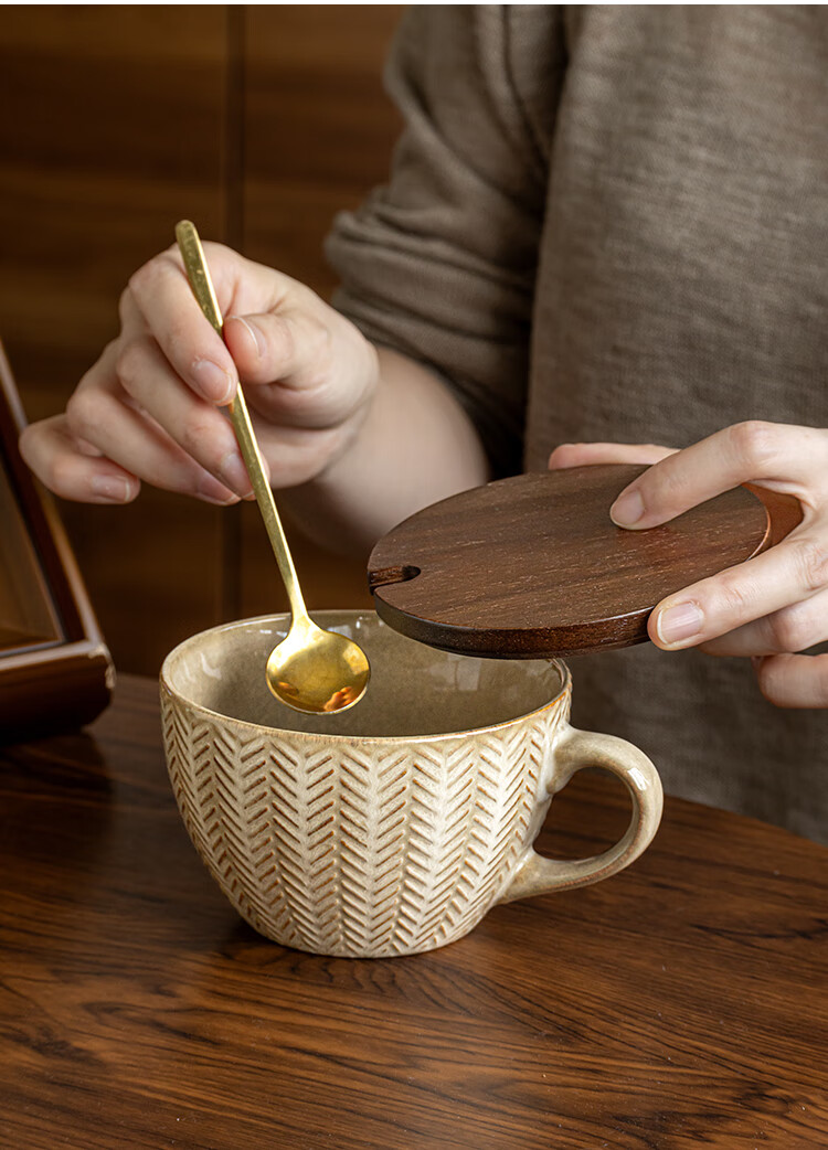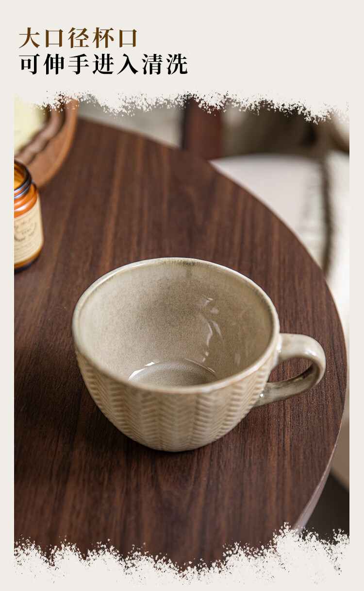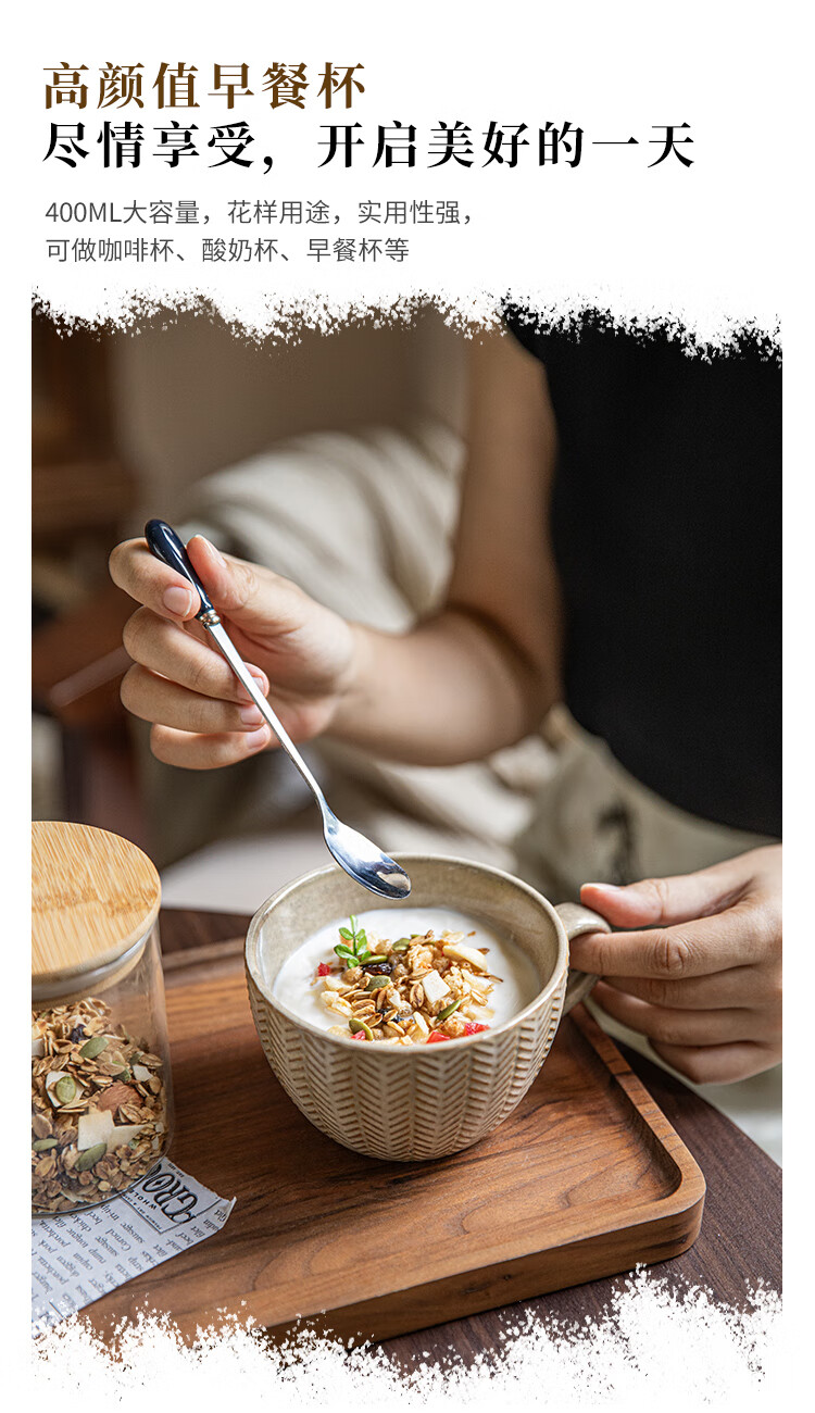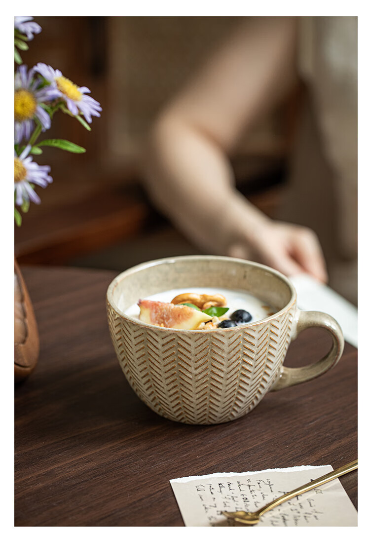 Youcci high-looking embossed ceramic cup oatmeal cup personalized kiln-turned mug retro cup coffee cup household water cup embossed breakfast cup - wheat ear yellow covered spoon