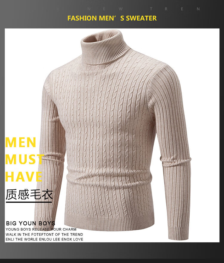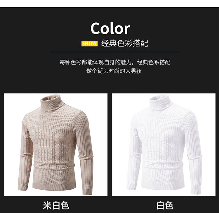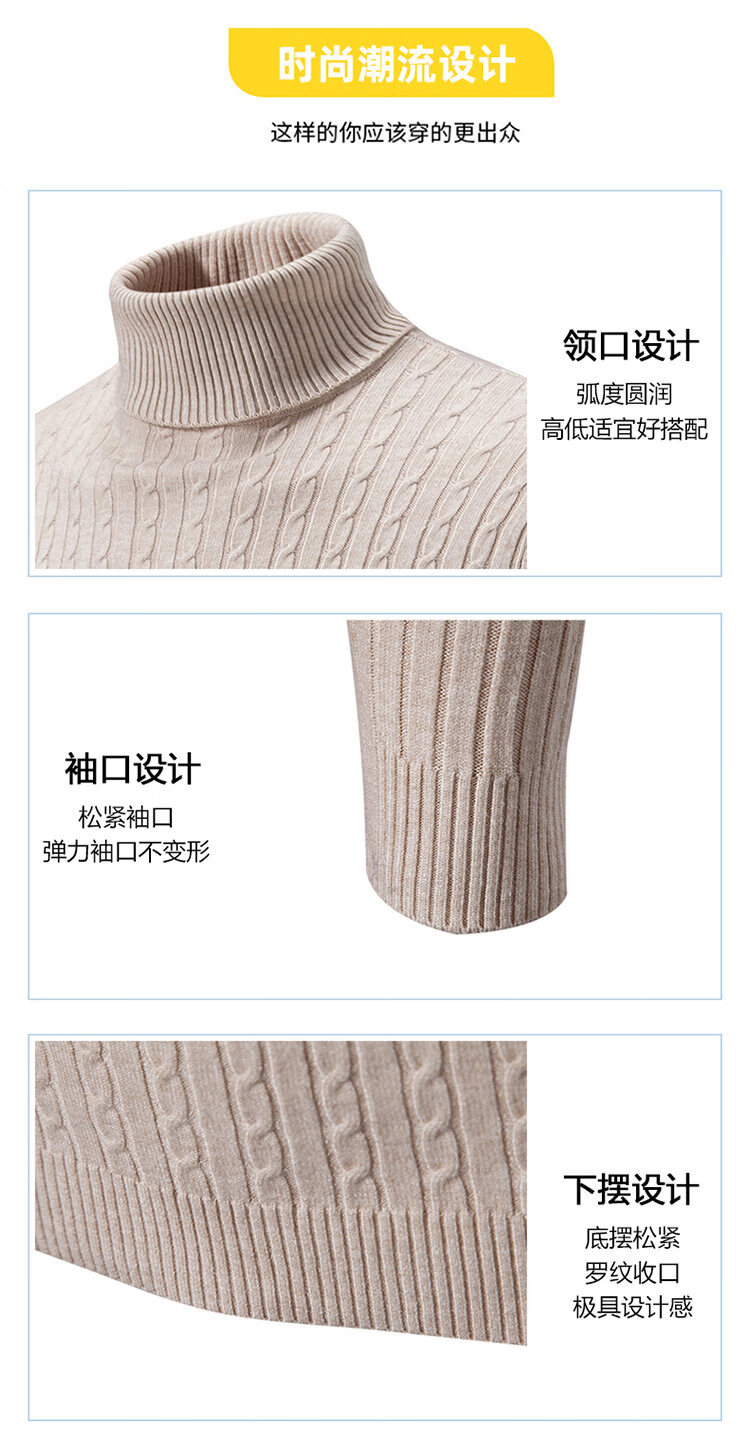 Turtleneck men's sweater autumn and winter Korean version slim fit thickened warm sweater long collar knitted bottoming shirt trendy black XL
