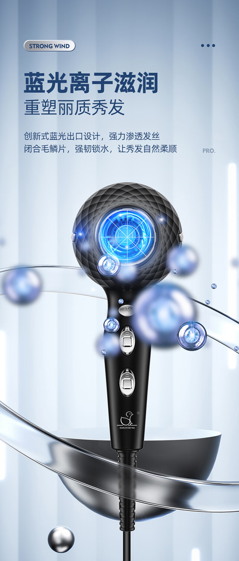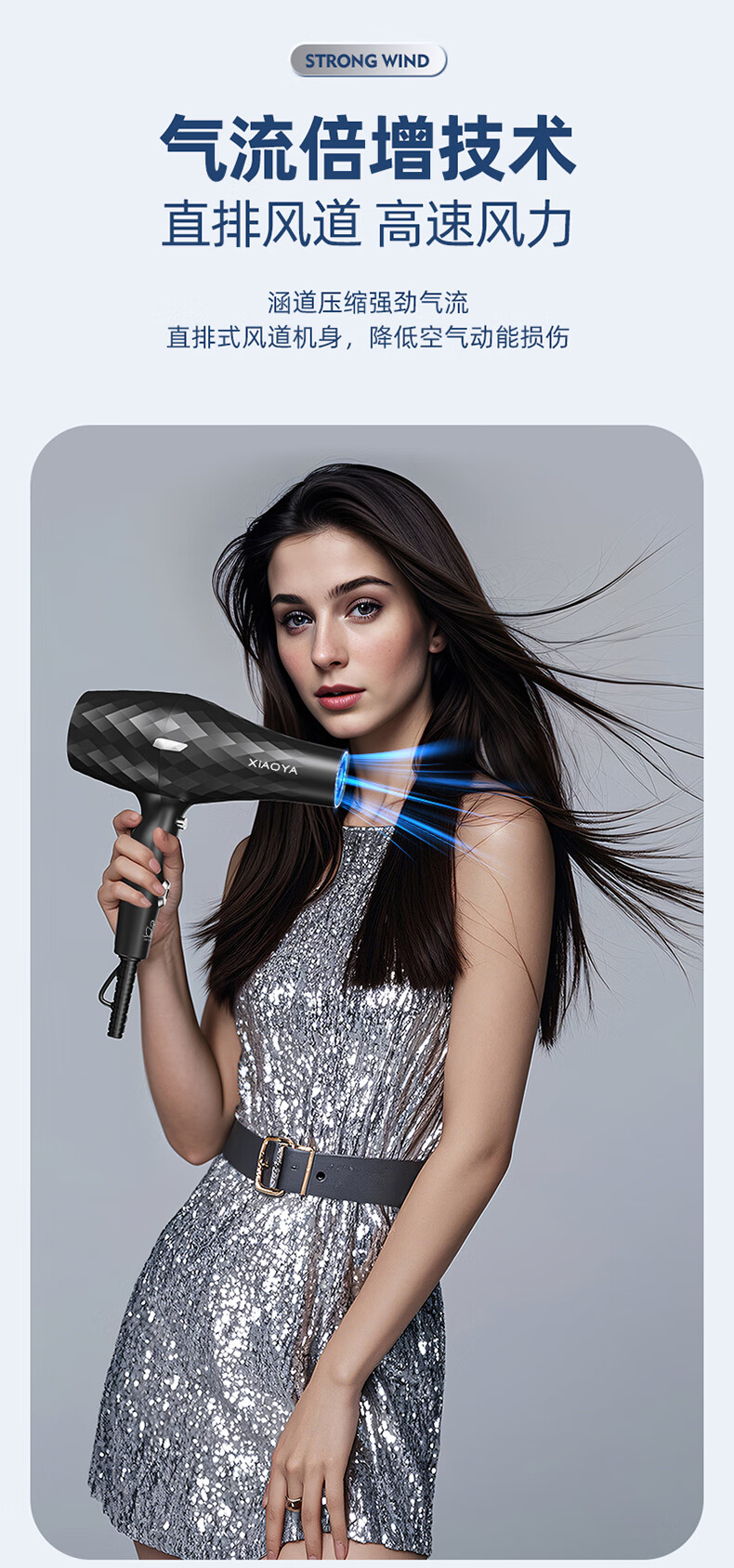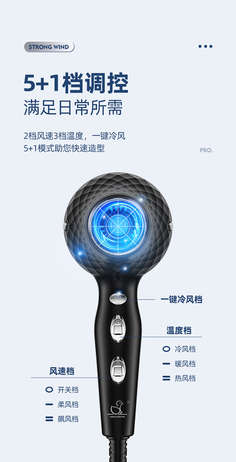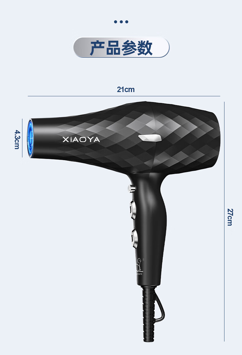 Xiaoya brand hair dryer household strong wind negative ion silent hot and cold wind hair care blue light hair salon large hair dryer diamond-shaped big blast 6 speed + rapid cooling switch + 1.5 billion ion hair care